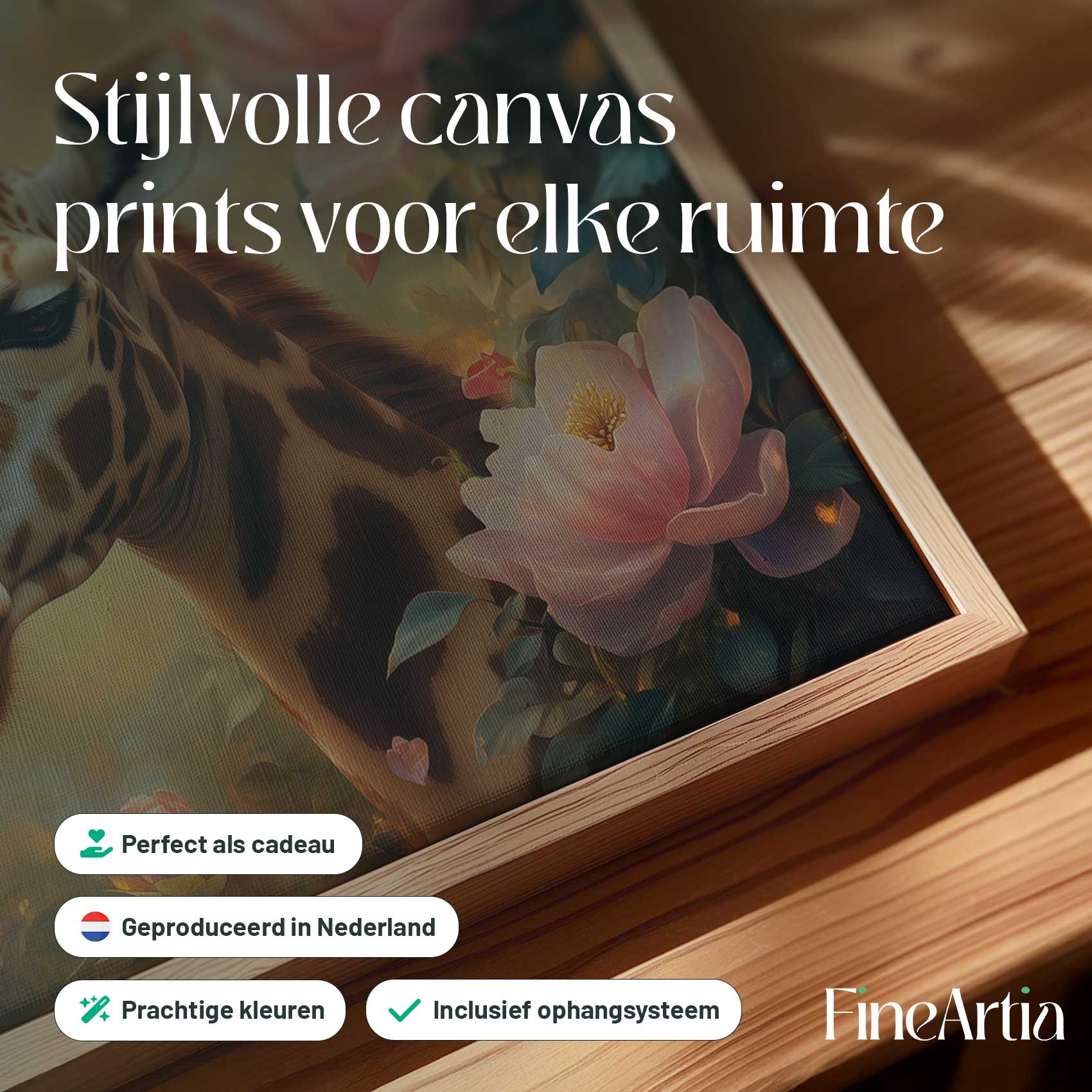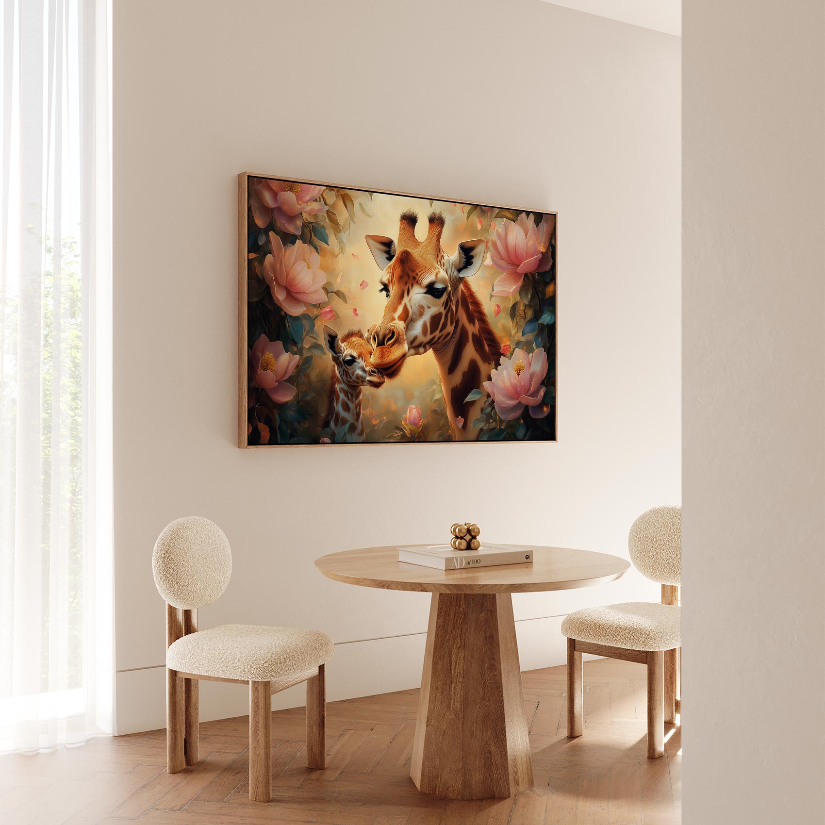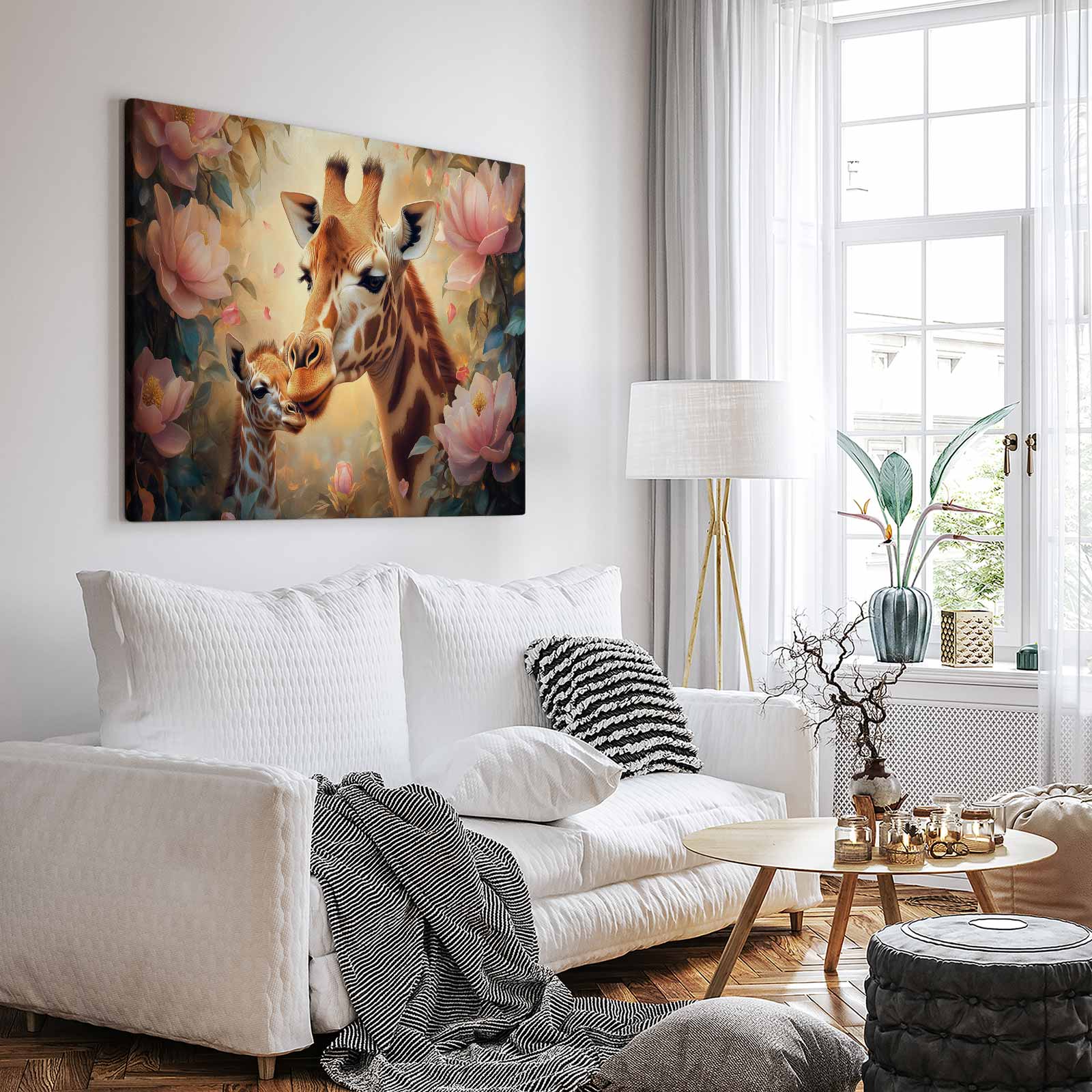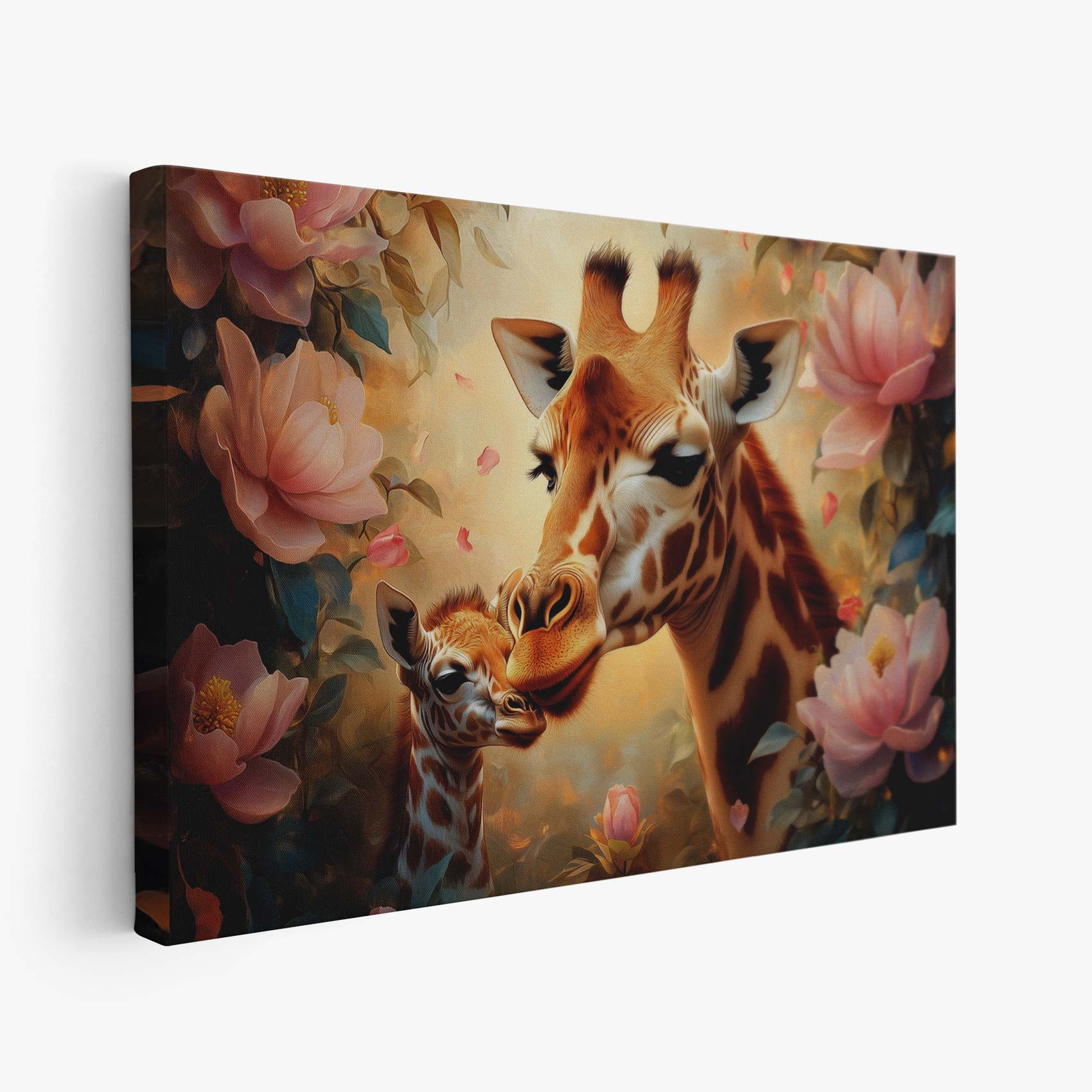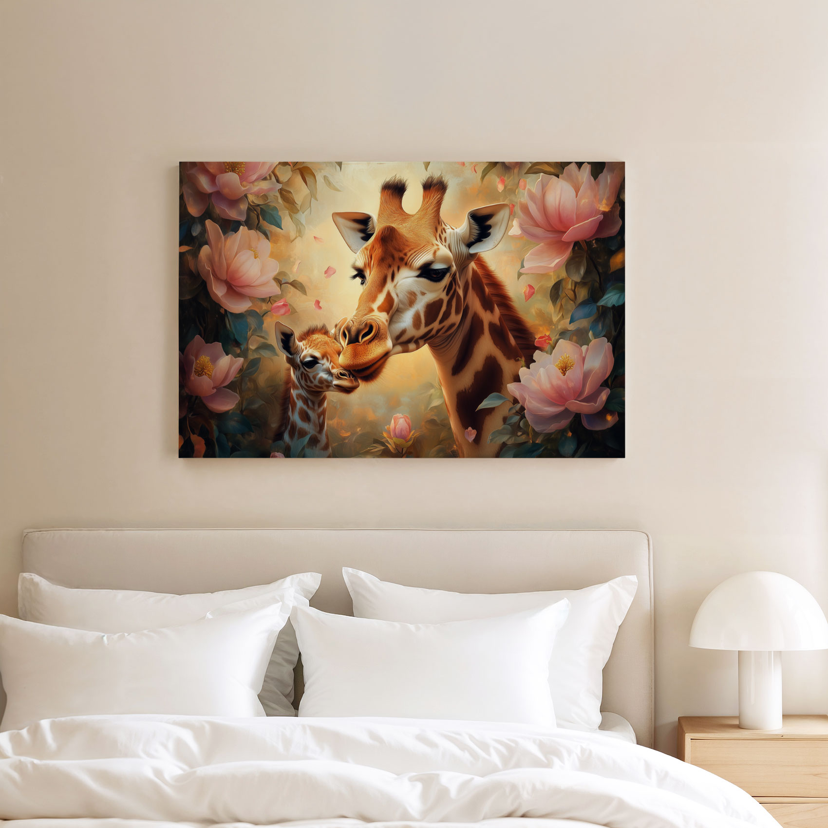 Terug naar collectie Canvas Moeder-giraf en baby kunstwerk