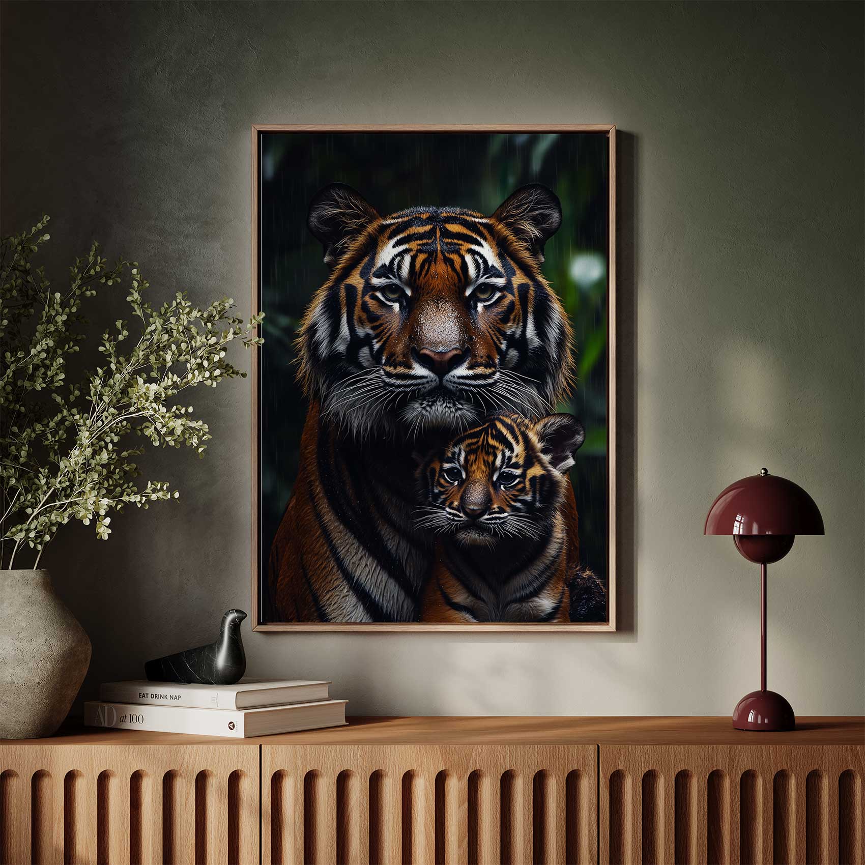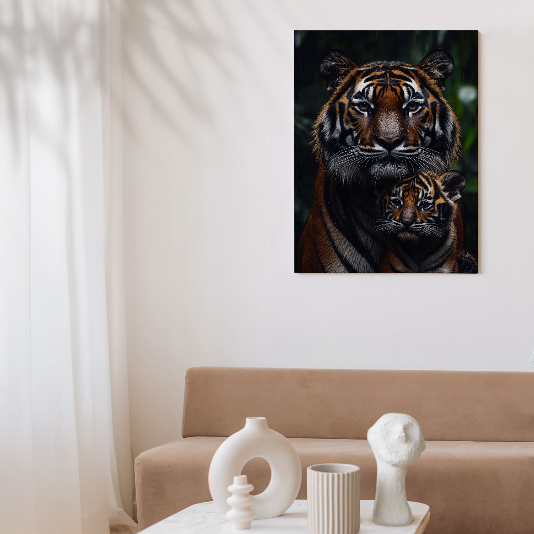 Moeder tijger beschermt welp
