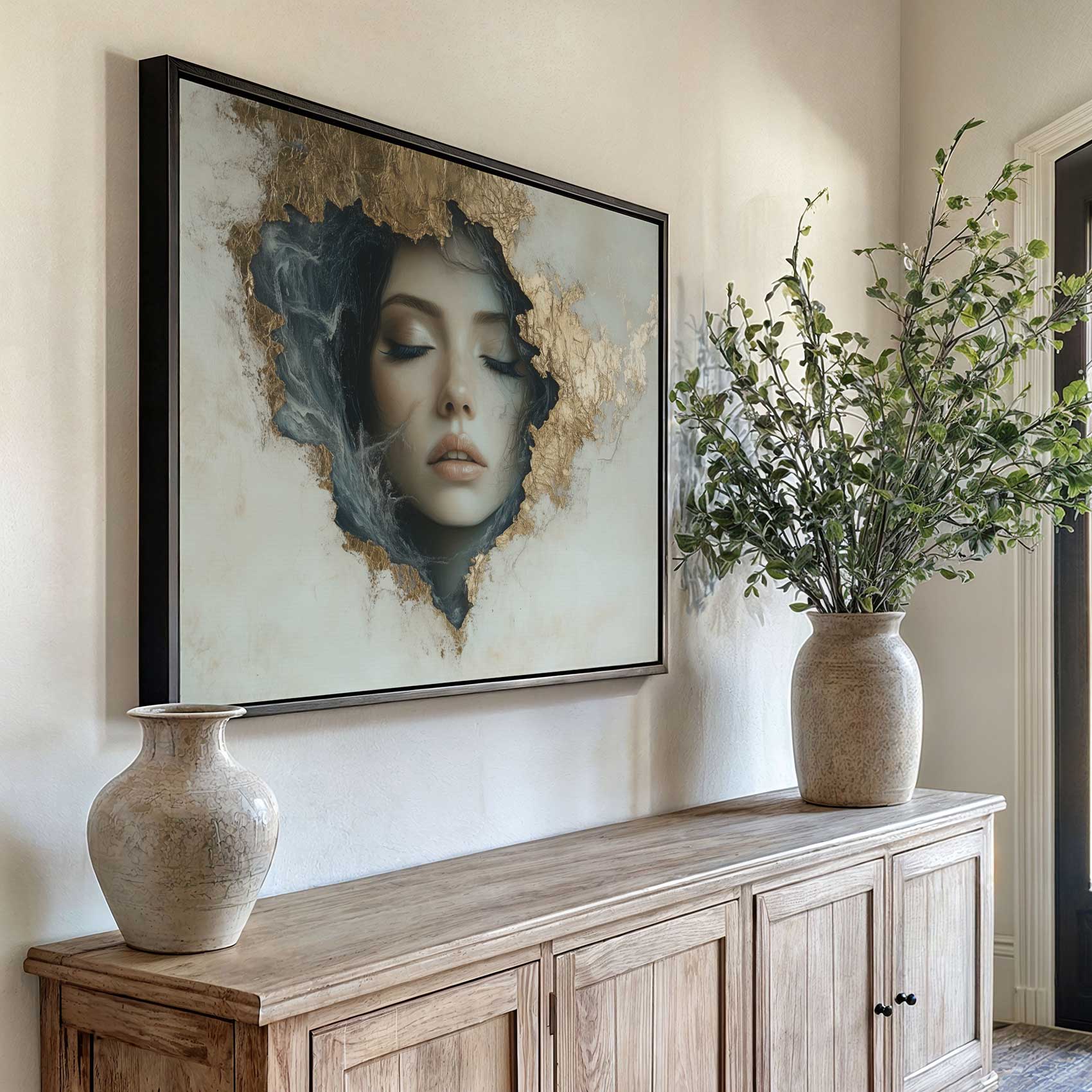 Terug naar collectie Canvas Mysterieuze vrouw in gouden muur