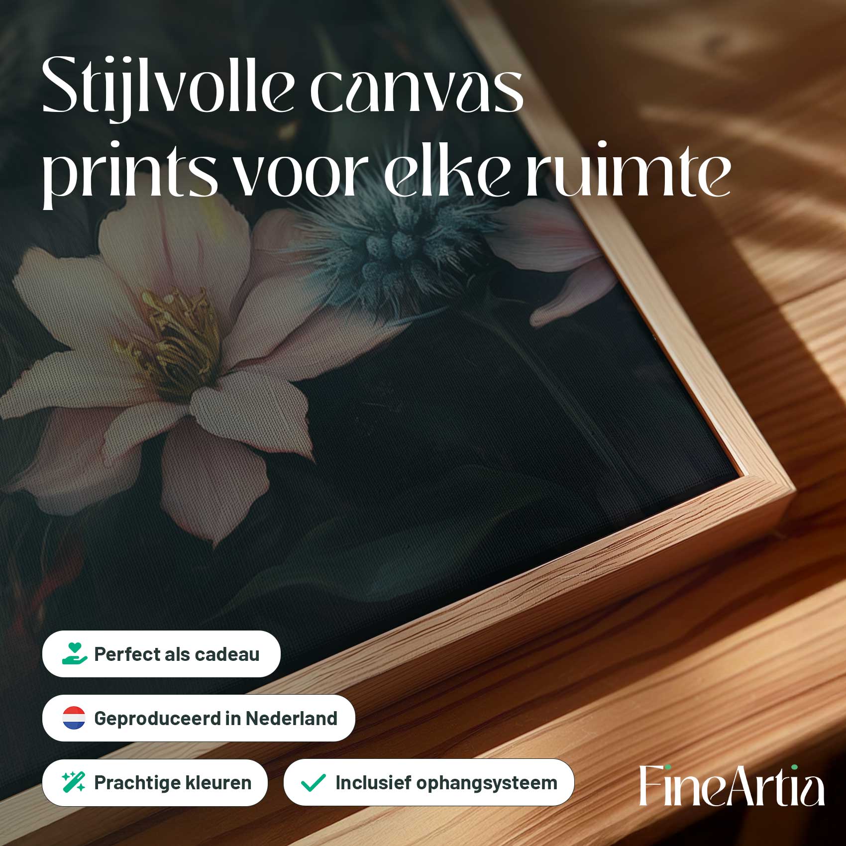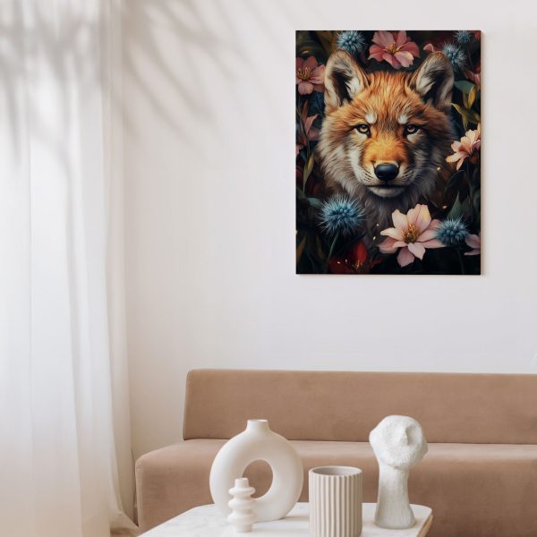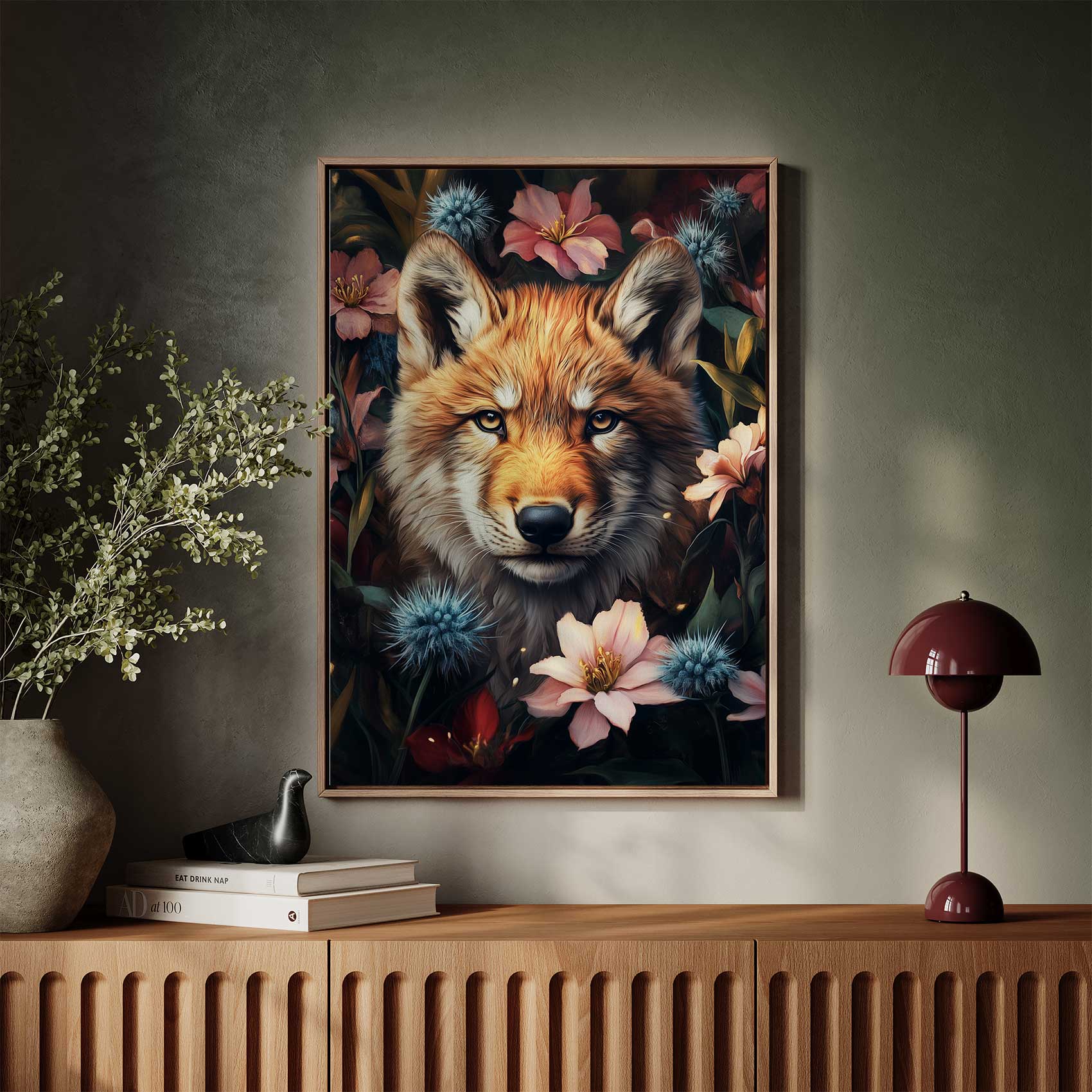 Terug naar collectie Canvas Mystieke wolf in bloemenpracht