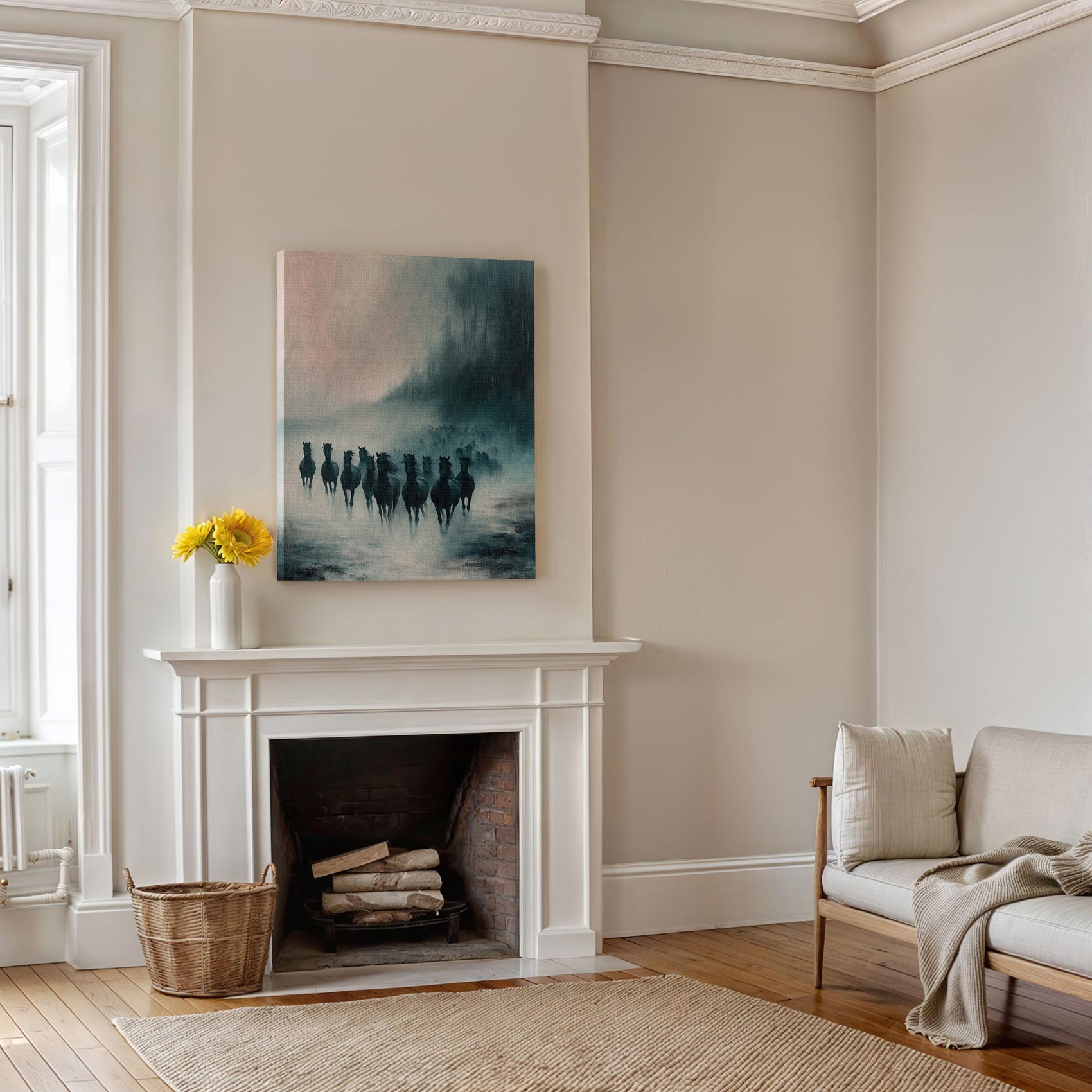 Terug naar collectie Canvas Nevelige galop van paarden