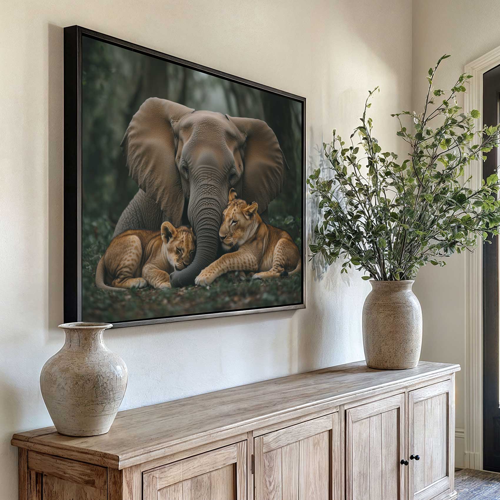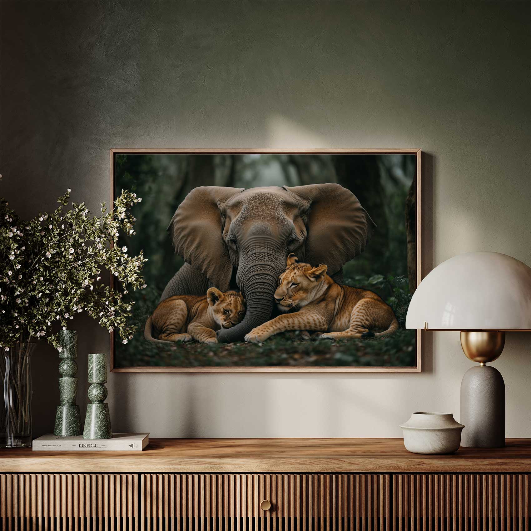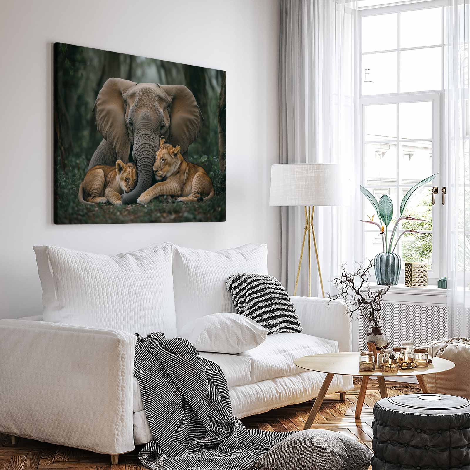 Olifant en leeuwen in jungle