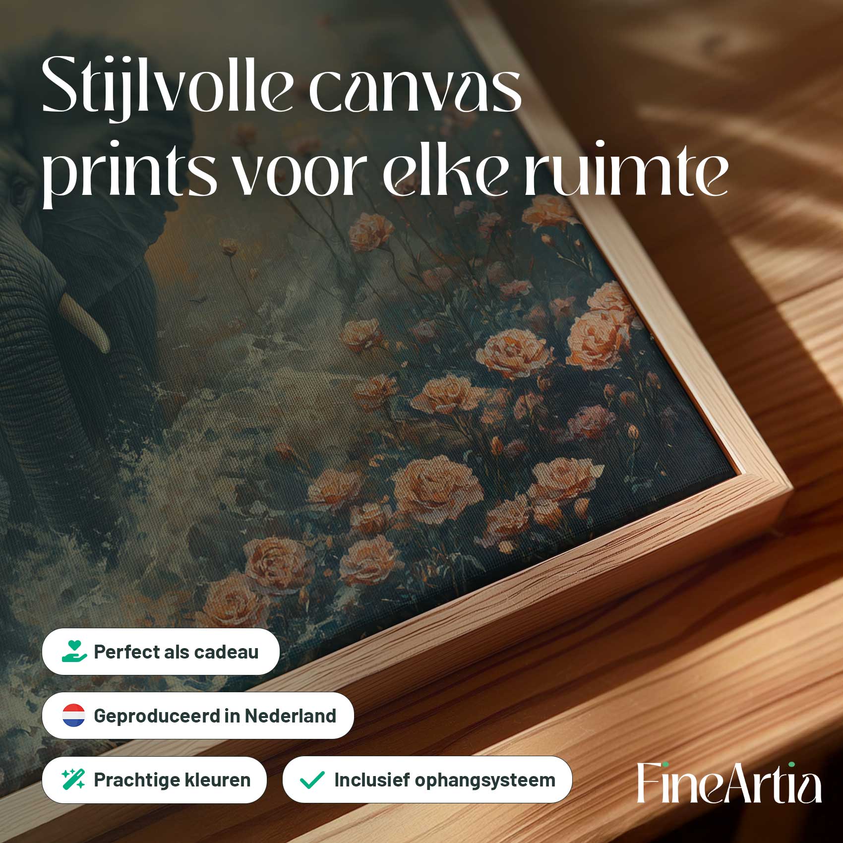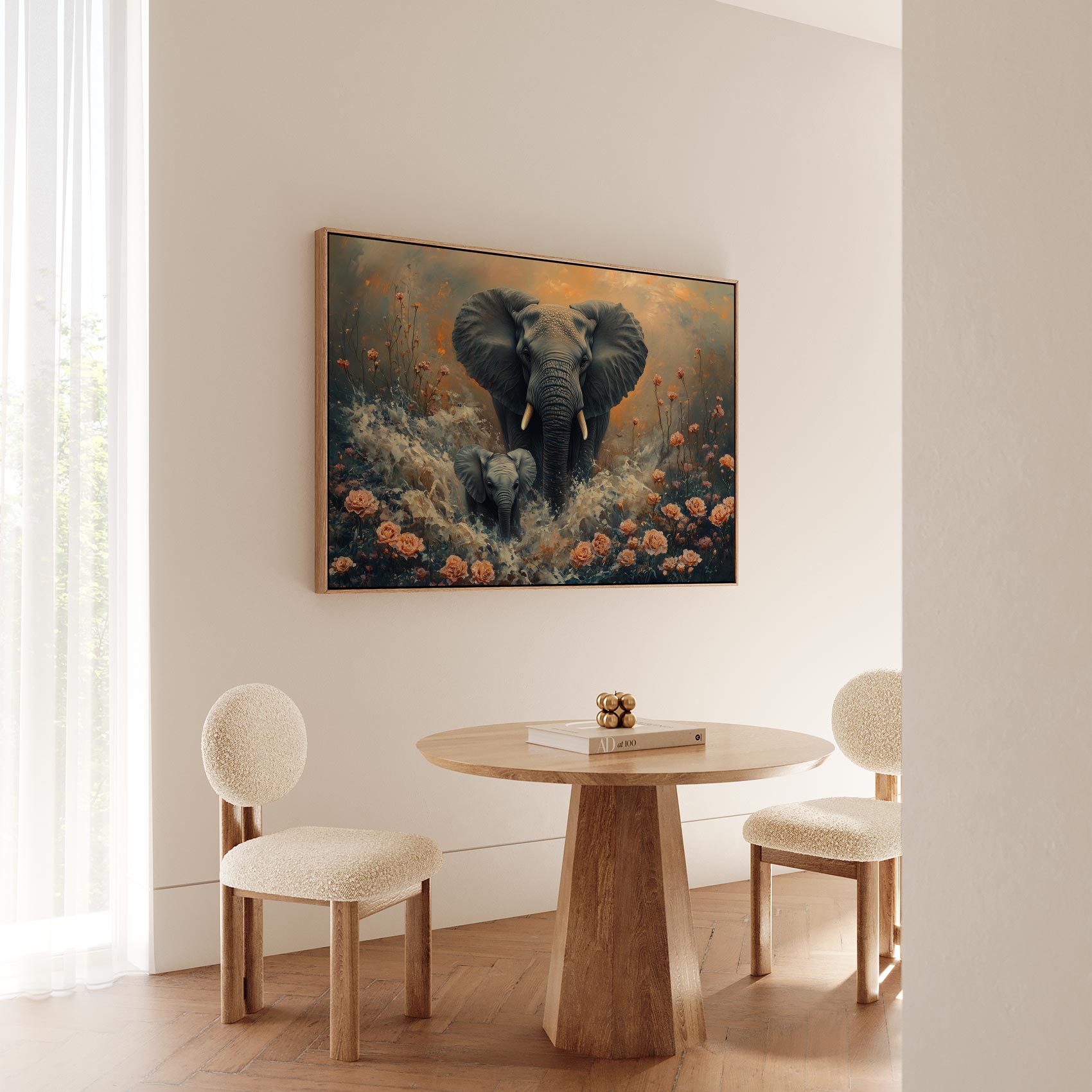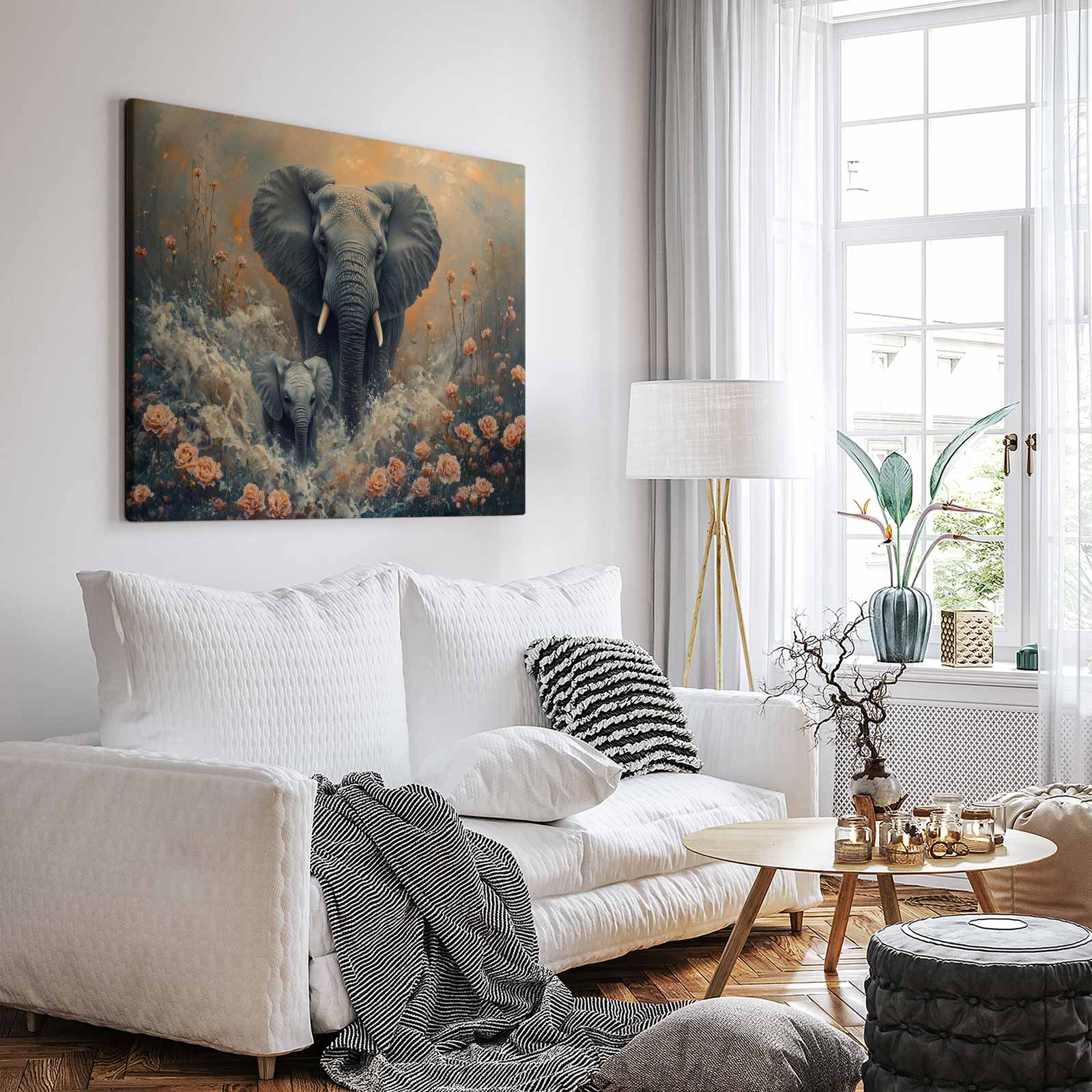 Terug naar collectie Canvas Olifanten in bloemenveld