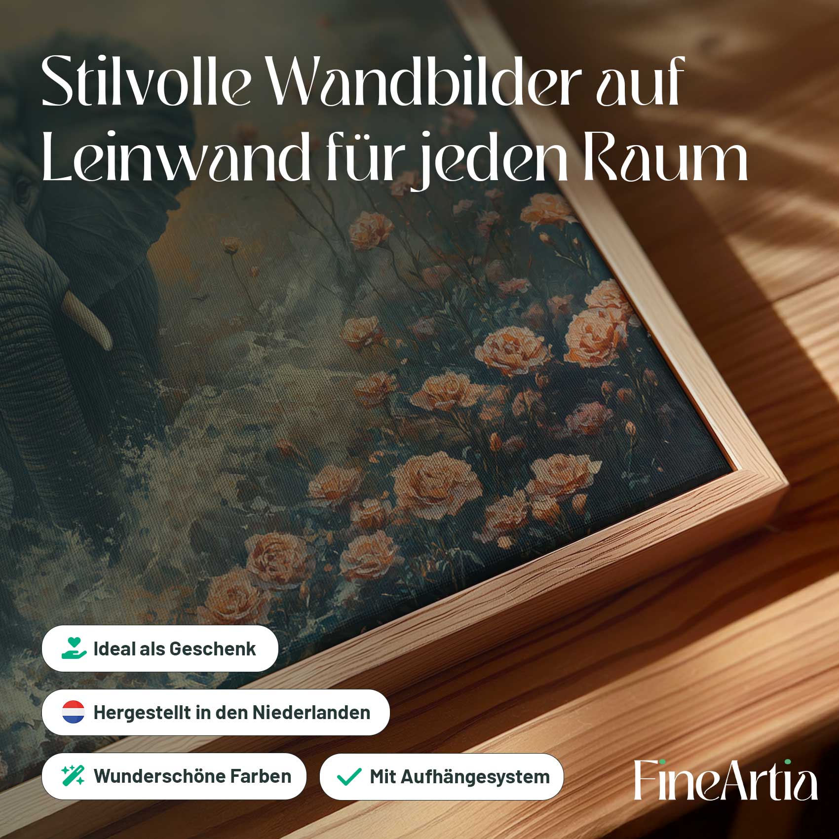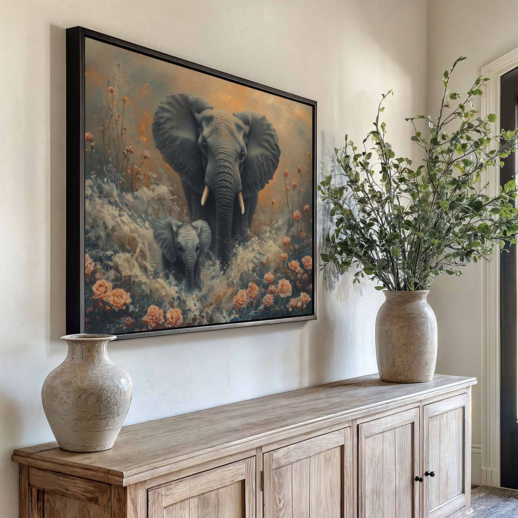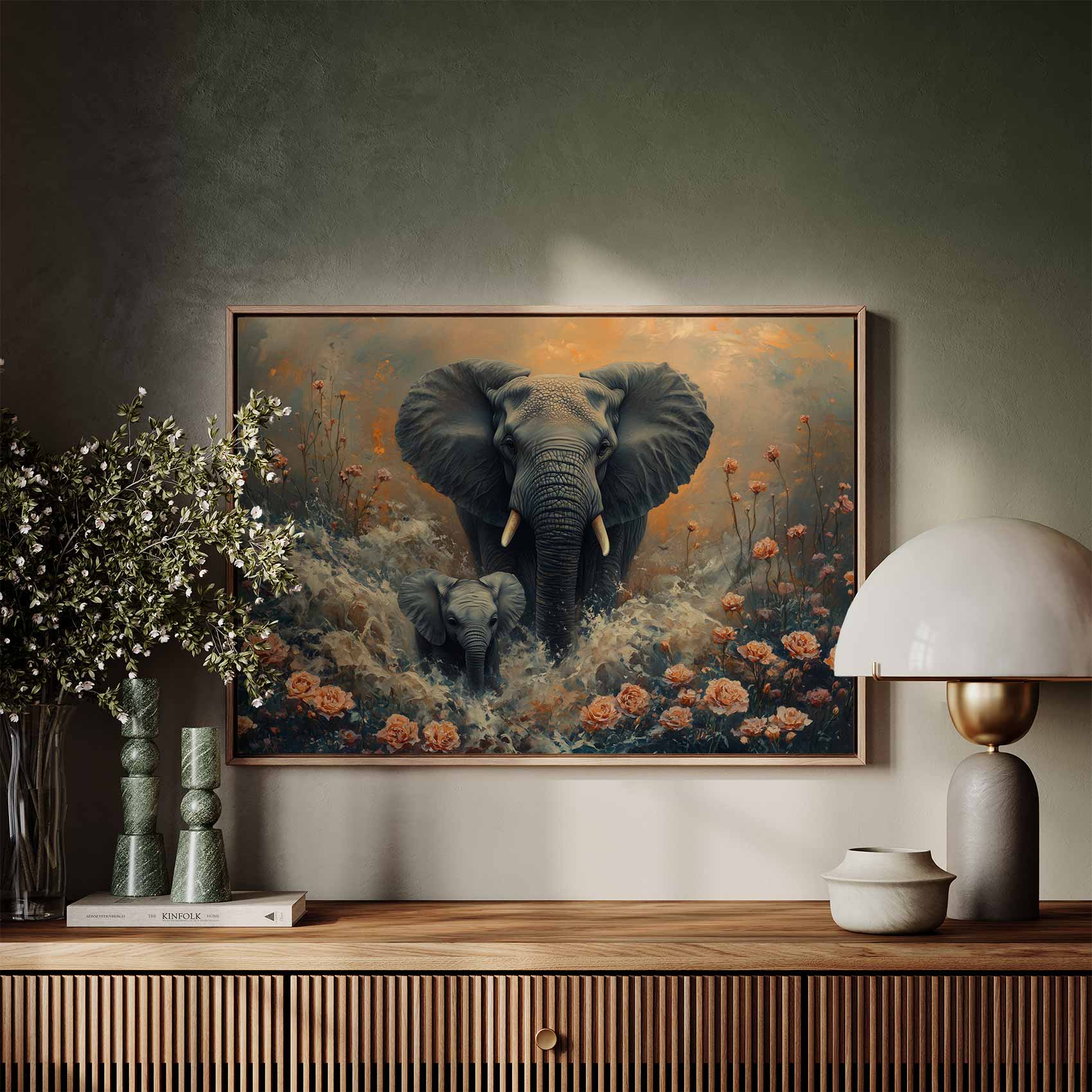 Terug naar collectie Canvas Olifanten in bloemenveld