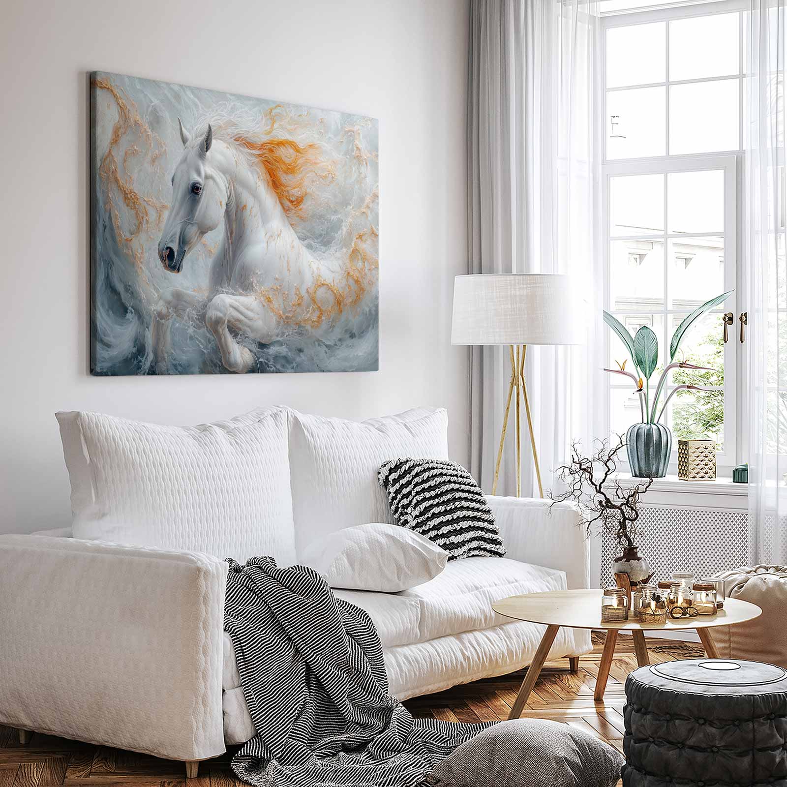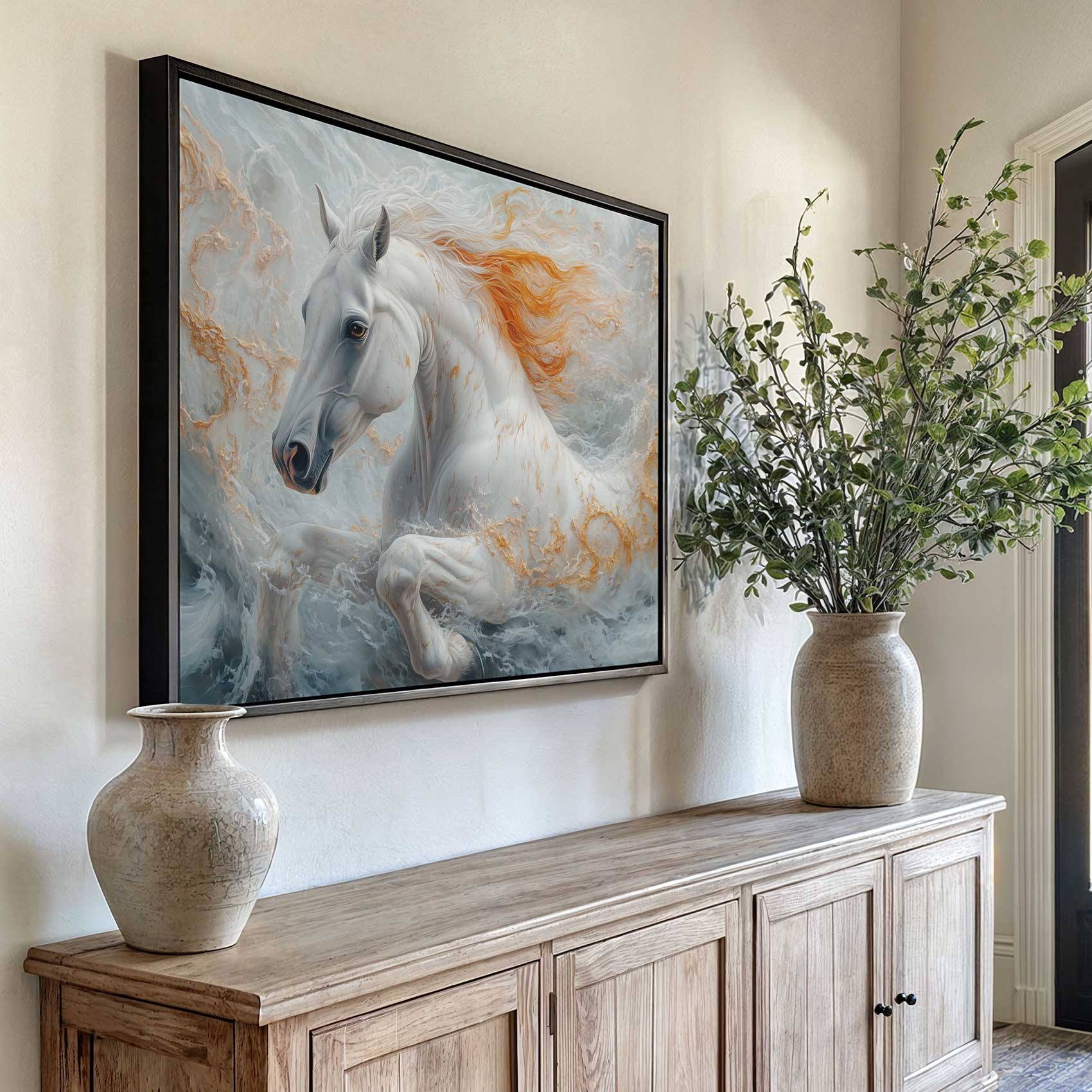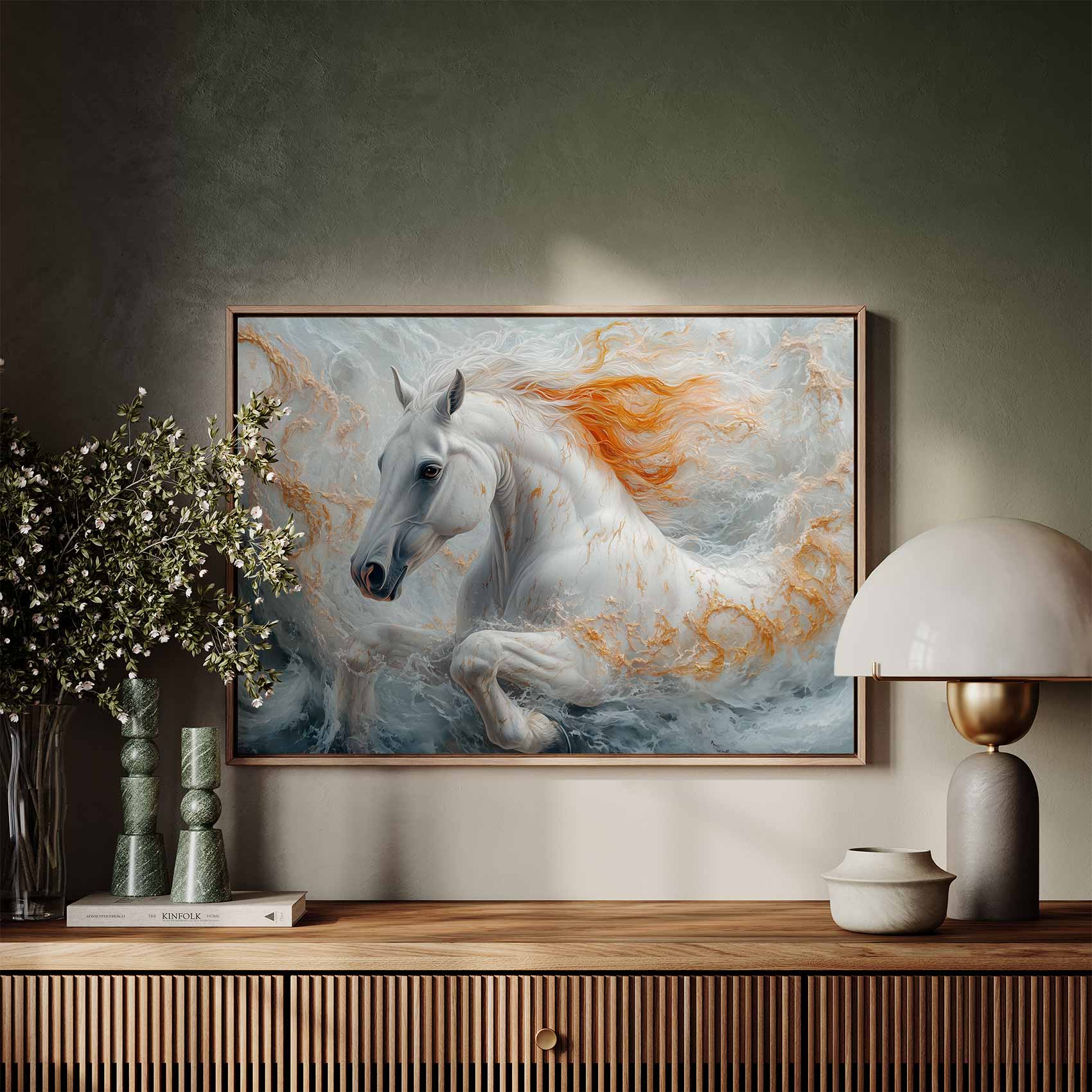 Oranje golvend galopperend paard