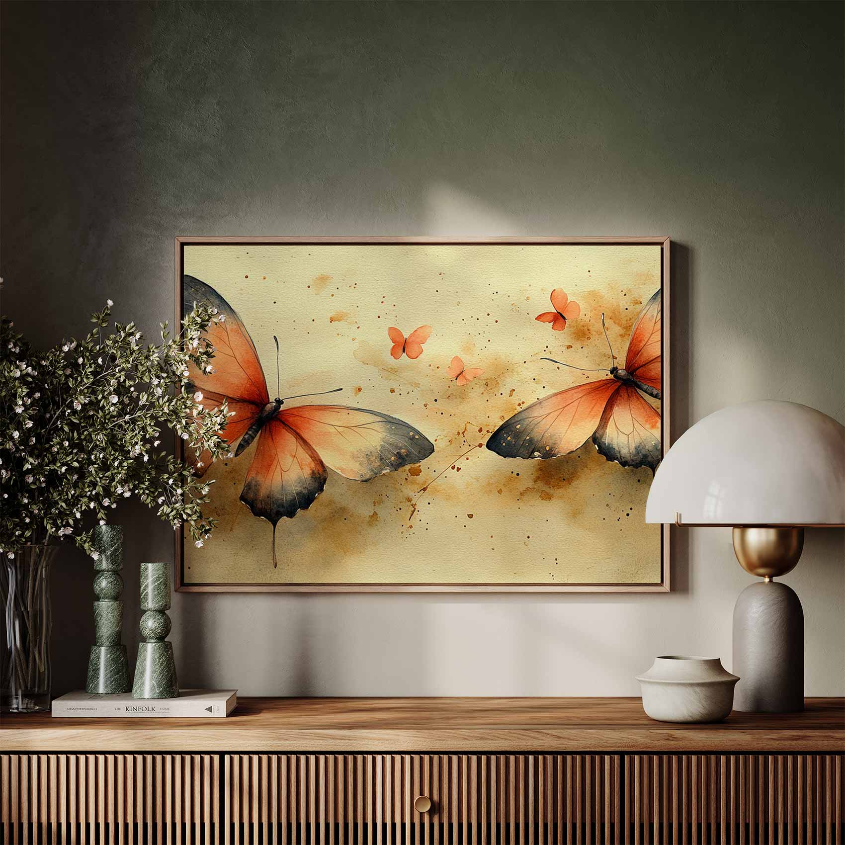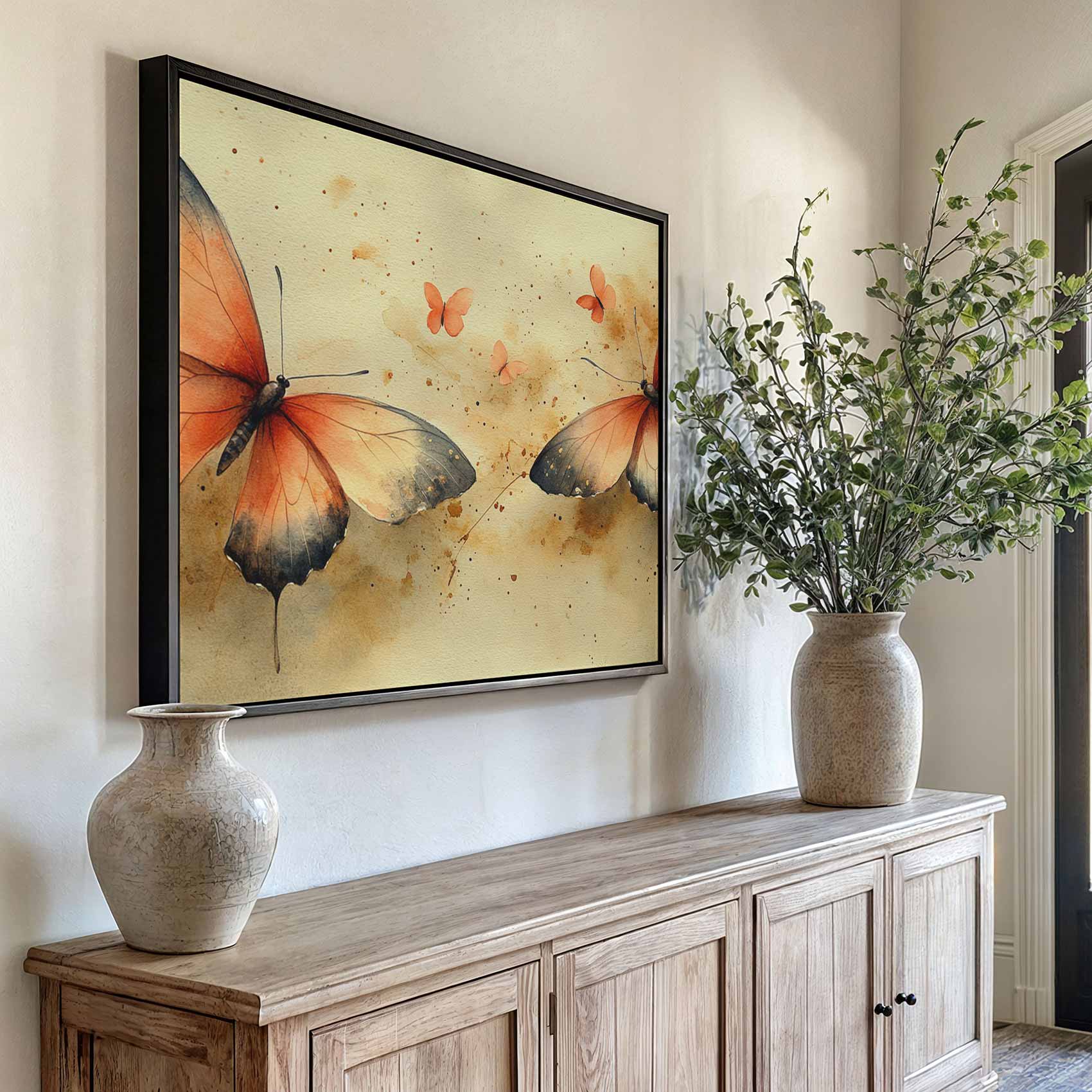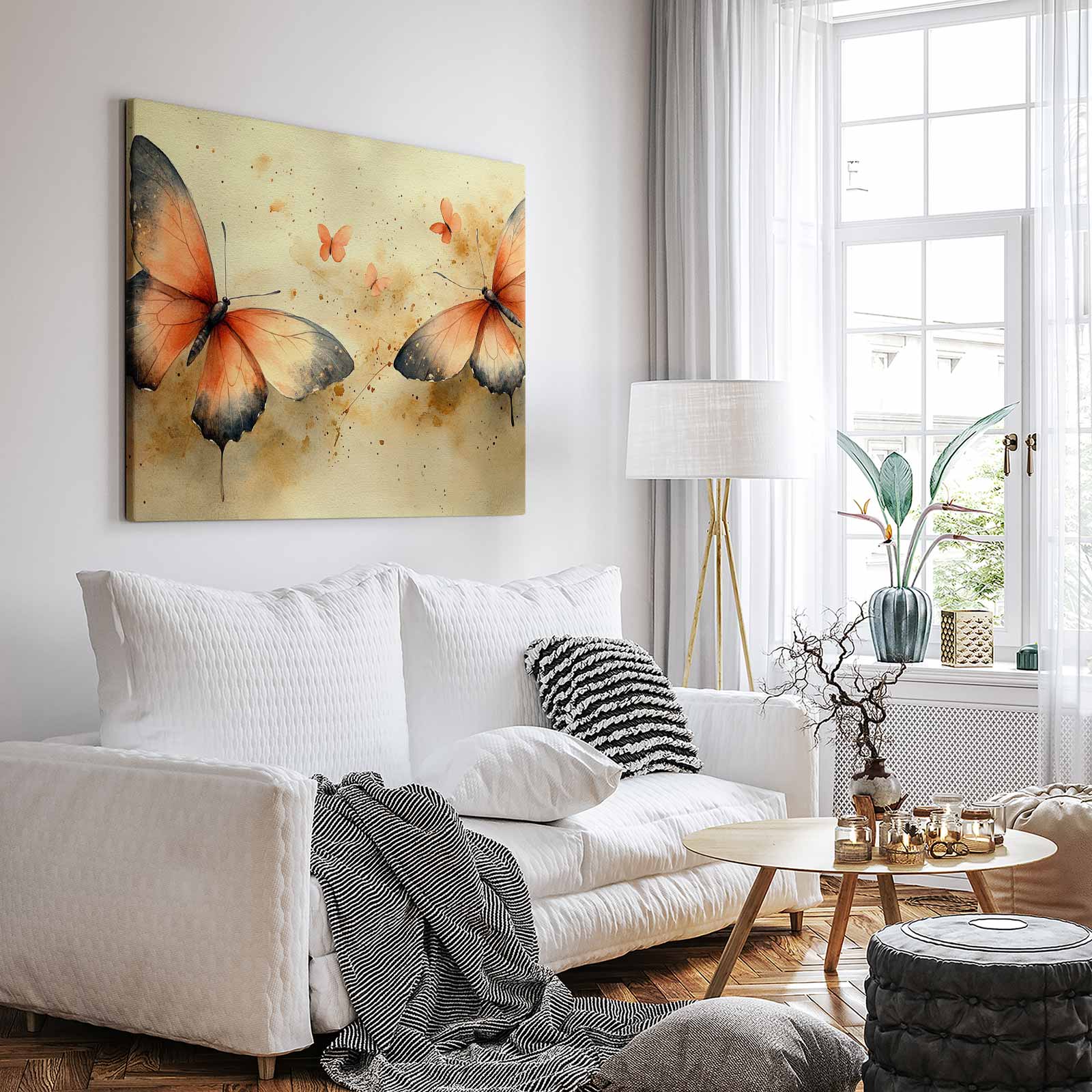 Terug naar collectie Canvas Oranje vlinders waterverfschilderij