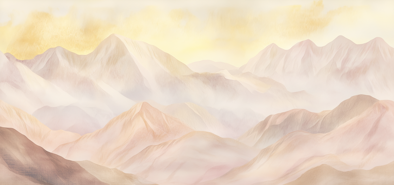 Pastel Berglandschap – Dromerig Waterverfschilderij