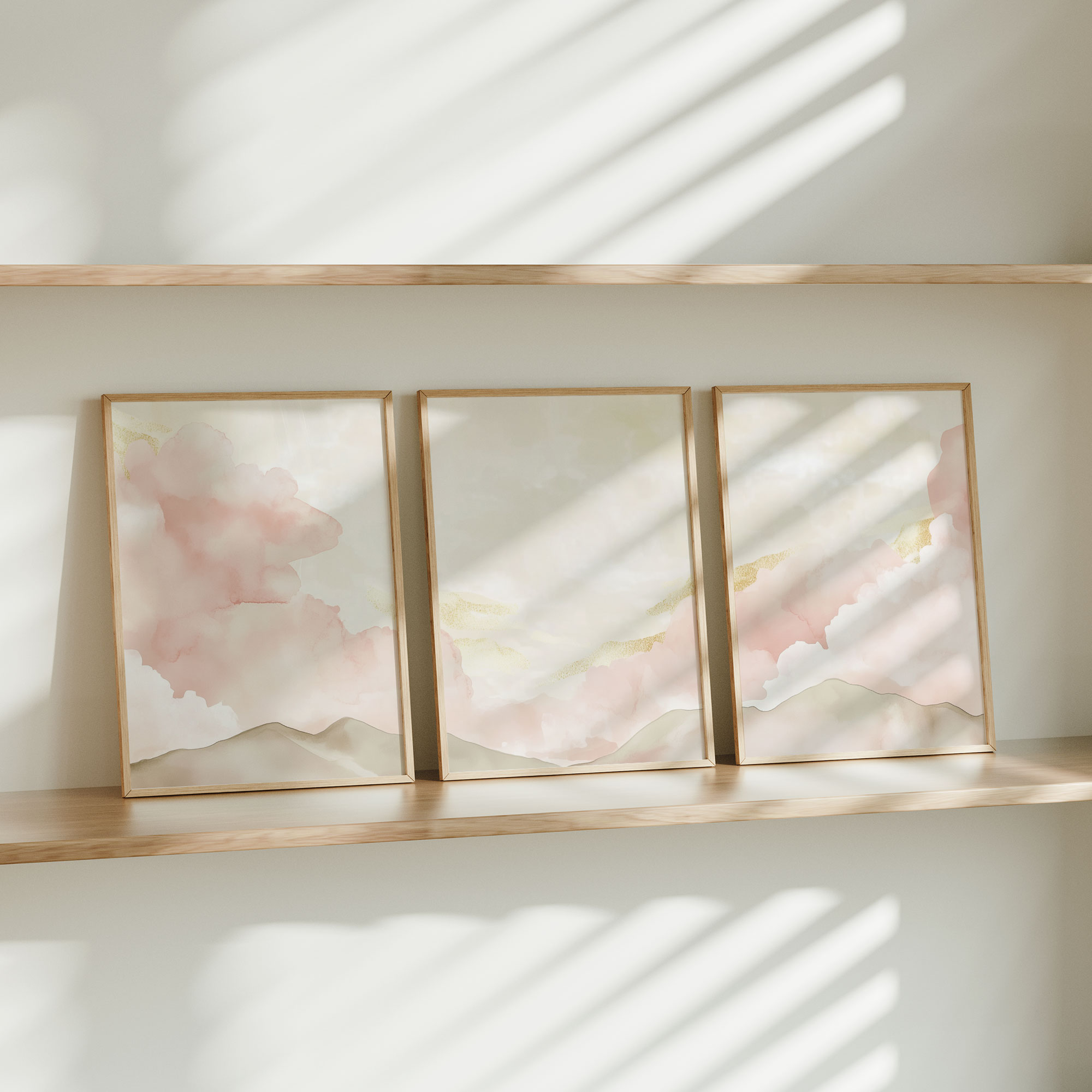 Pastel Berglandschap – Dromerige Wanddecoratie in Zachte Tinten