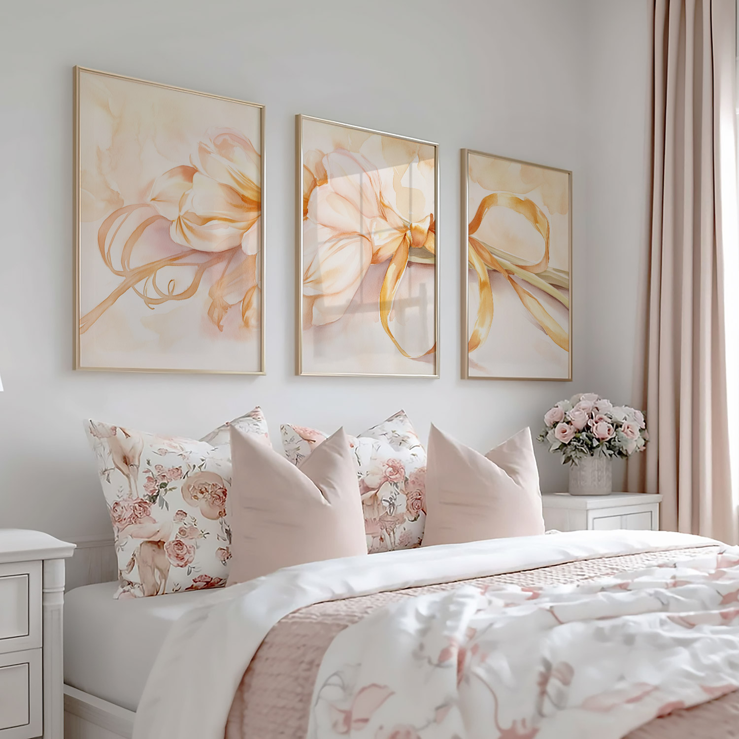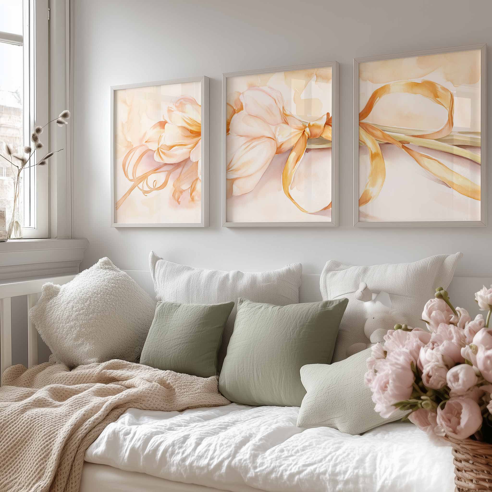 Terug naar collectie Posters Pastel Bloemenboeket met Zijdezachte Linten – Elegante Wanddecoratie
