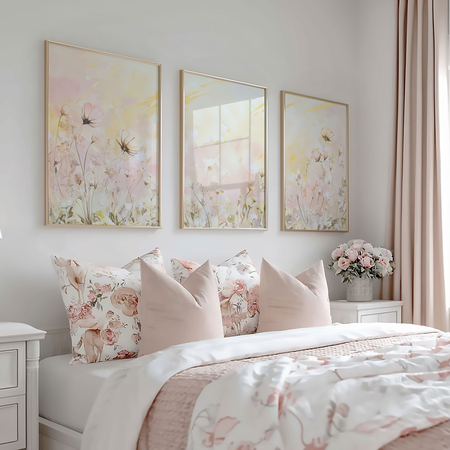 Pastel Bloemenveld: Vrolijke en Stijlvolle Wanddecoratie