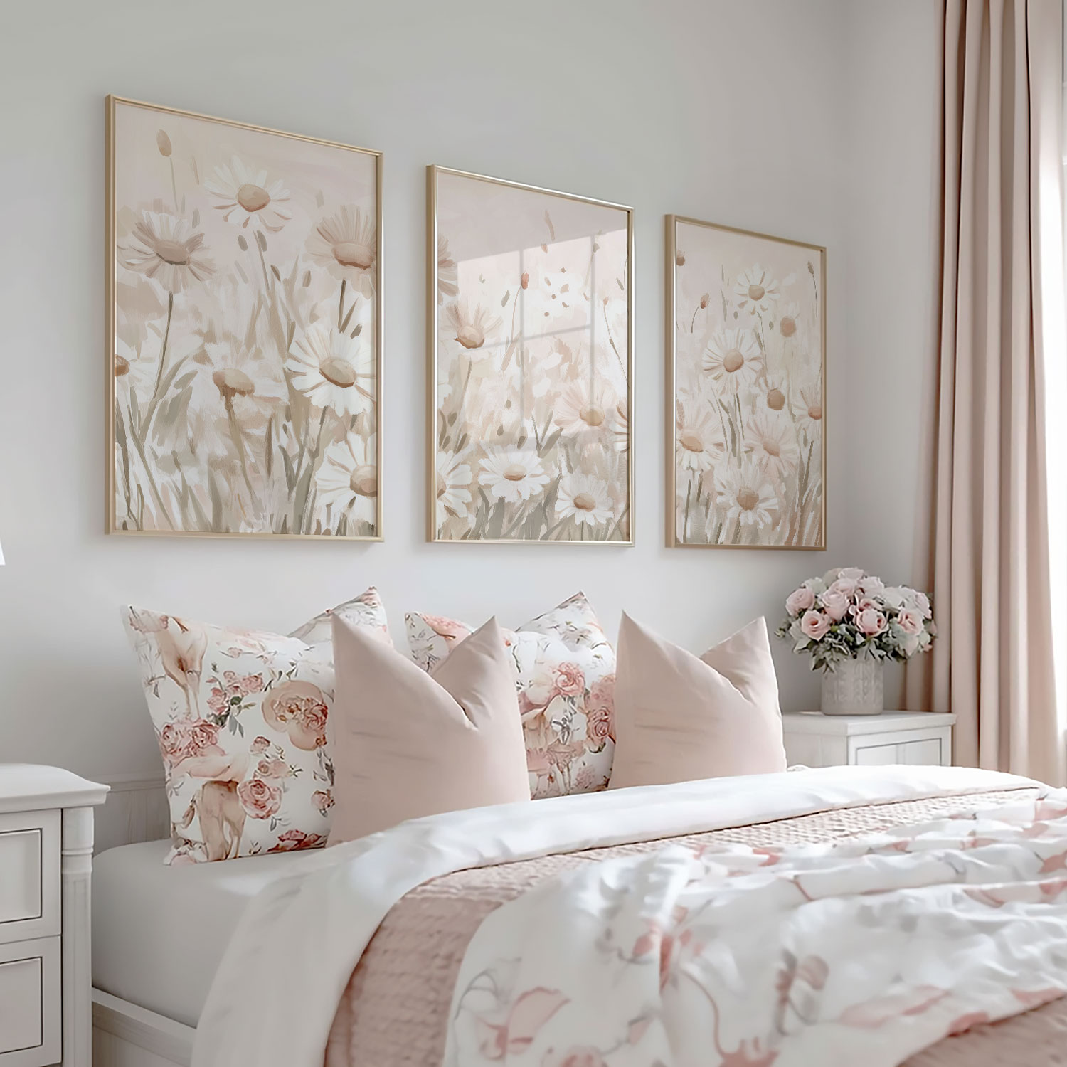 Pastel Daisyveld – Dromerige Wanddecoratie voor Stijlvolle Rust
