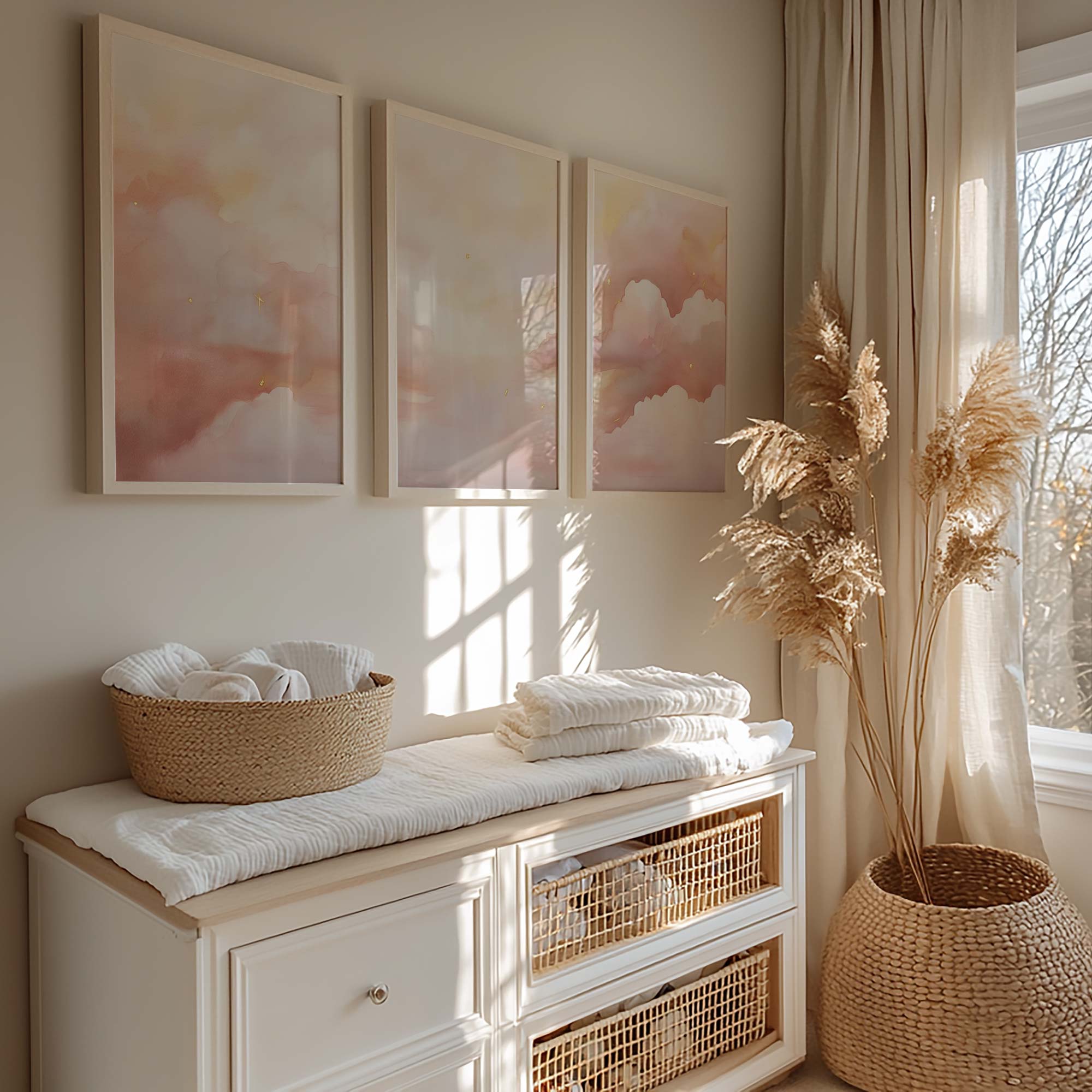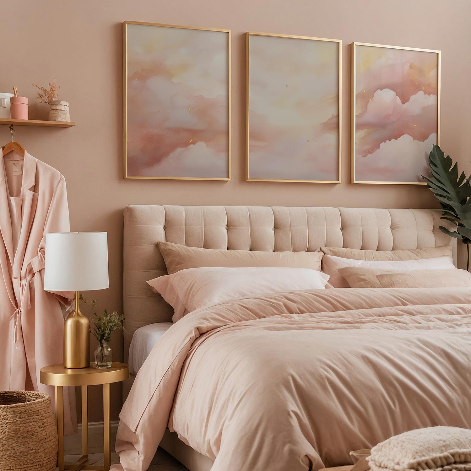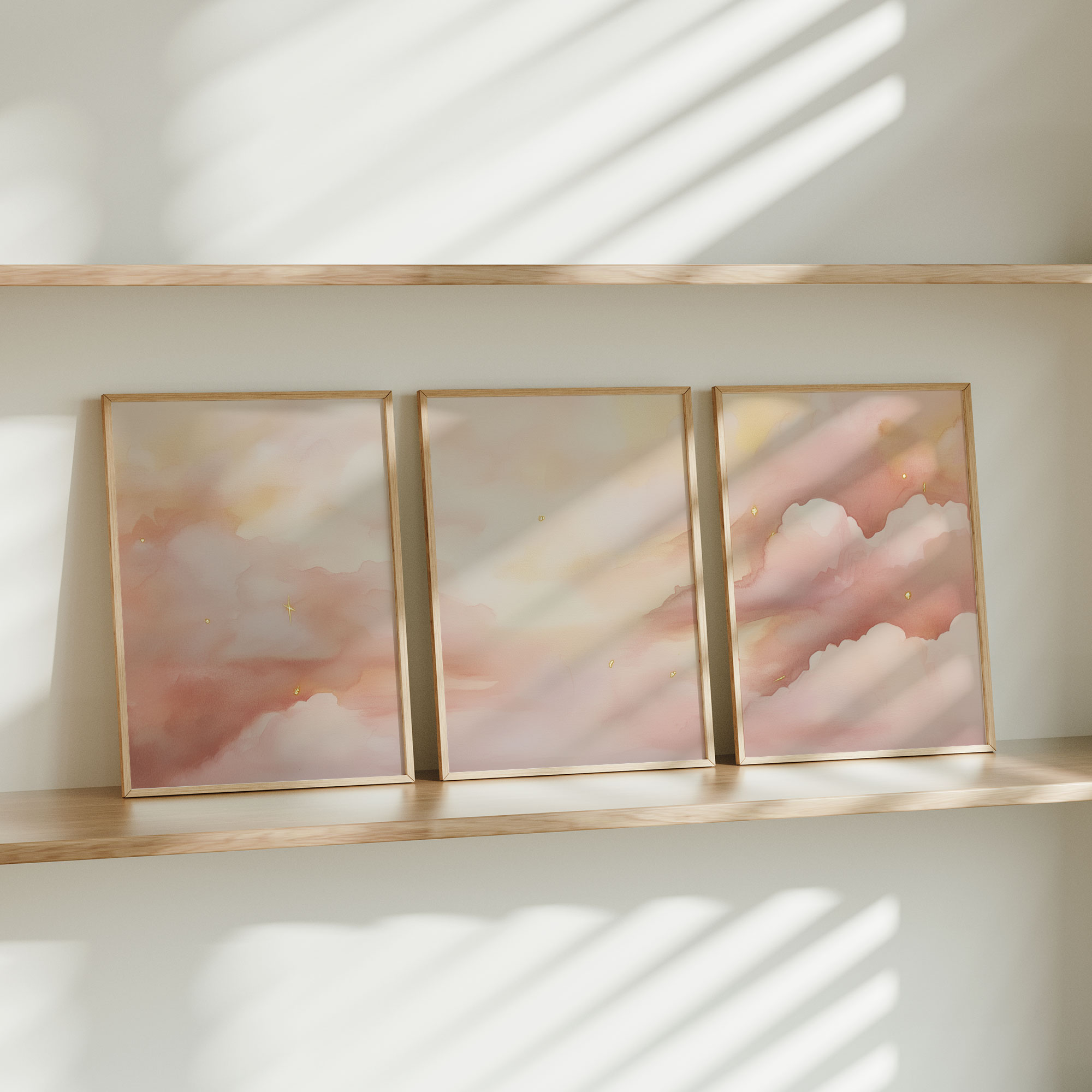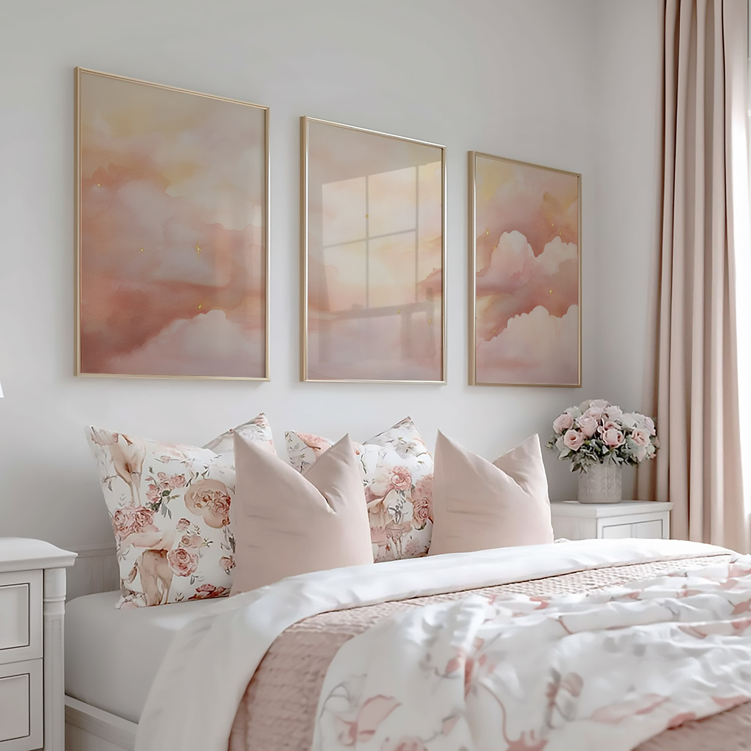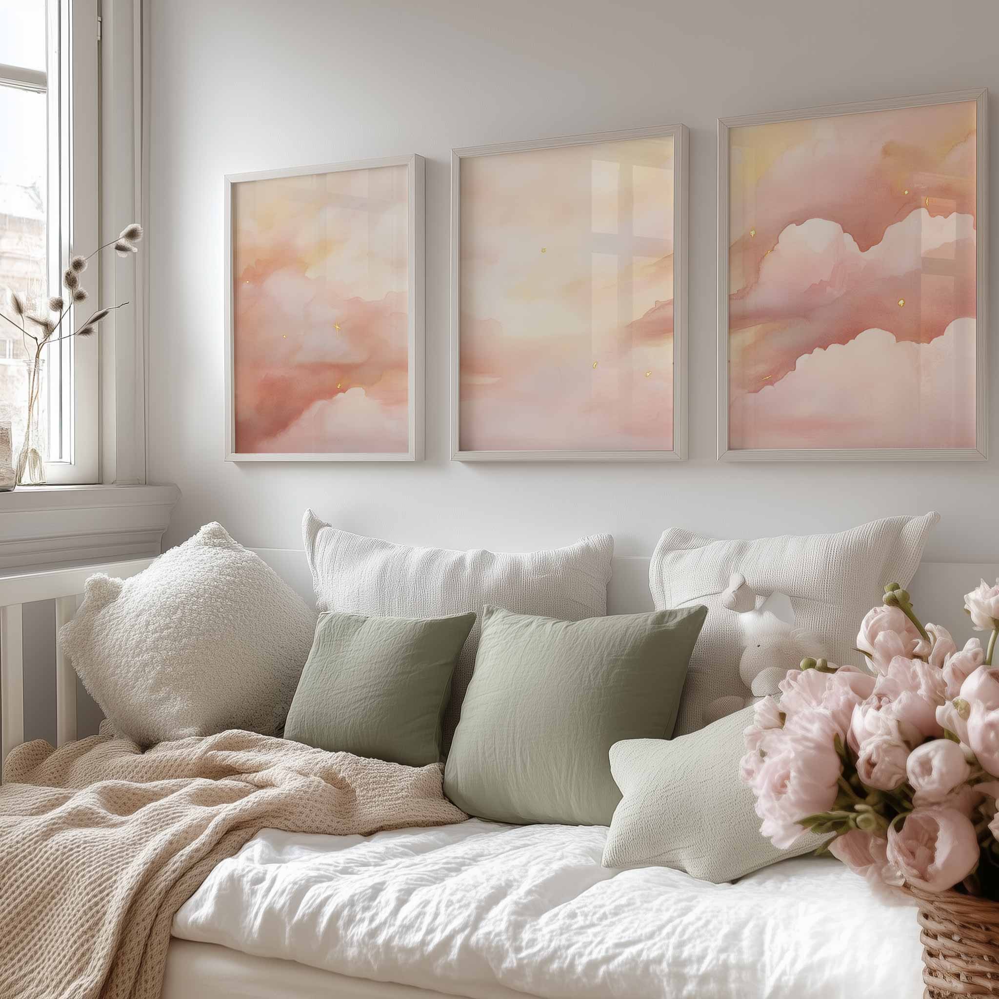 Terug naar collectie Posters Pastel Dromen: Fluwelen Luchten in Roze en Wit