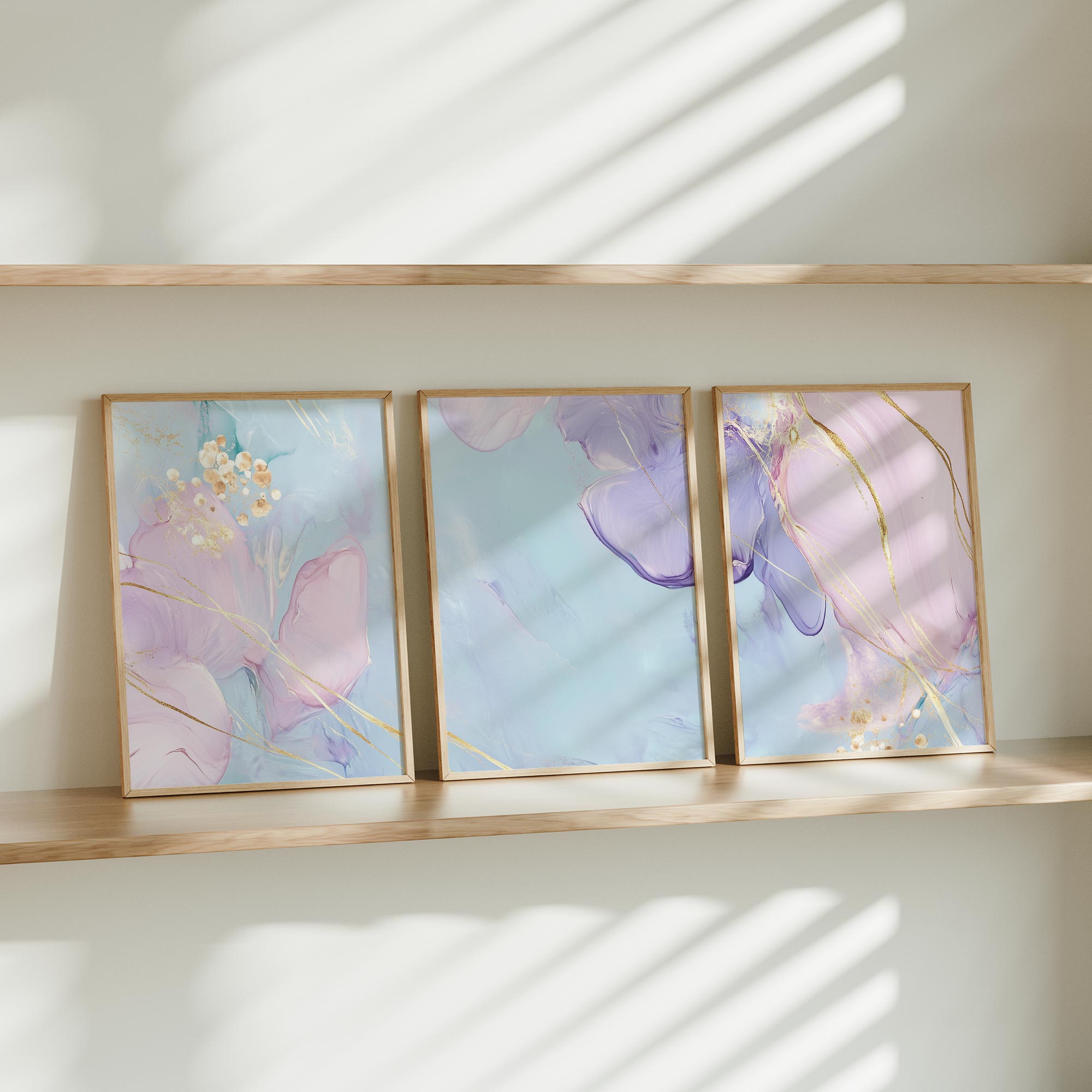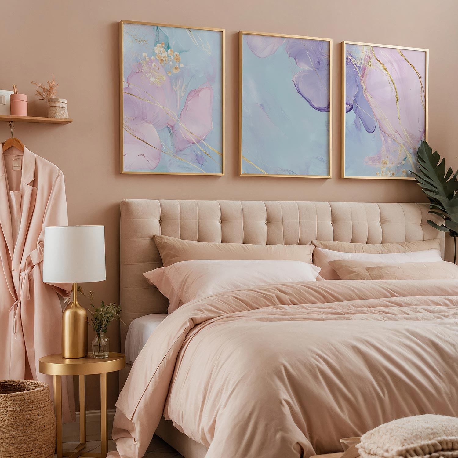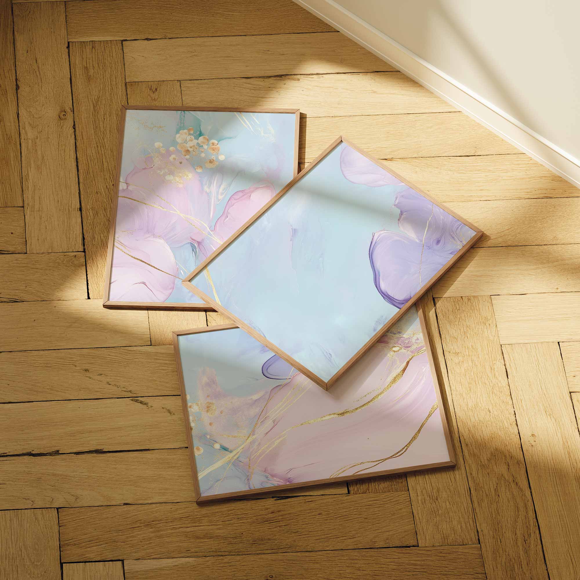Pastel Dromen met Gouden Elegantie – Stijlvolle Wanddecoratie