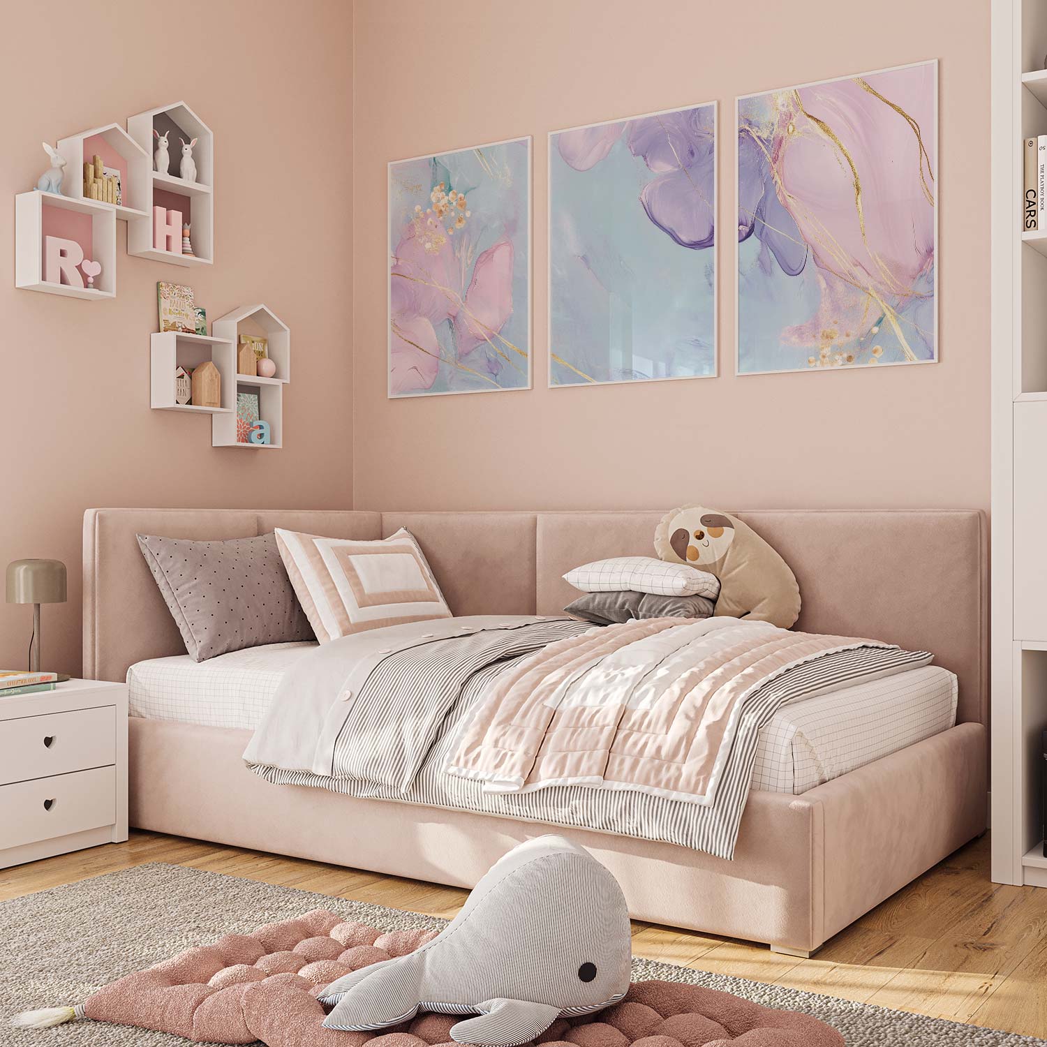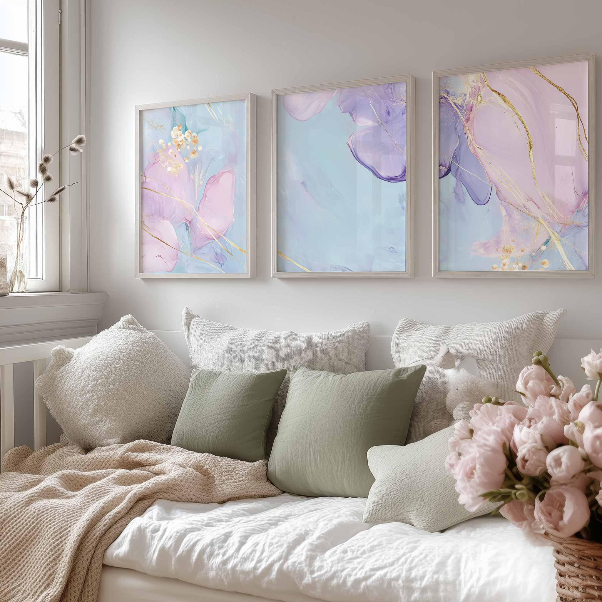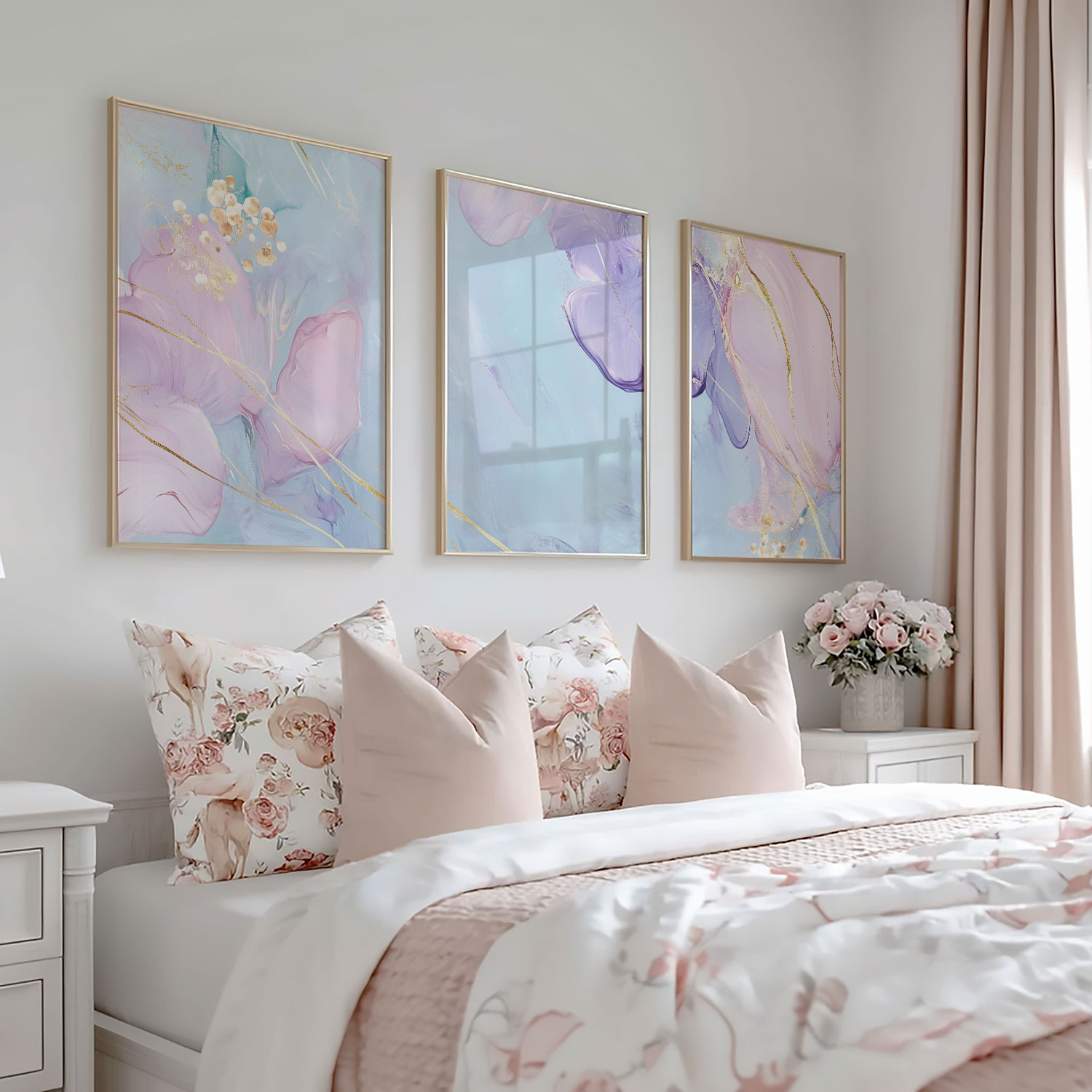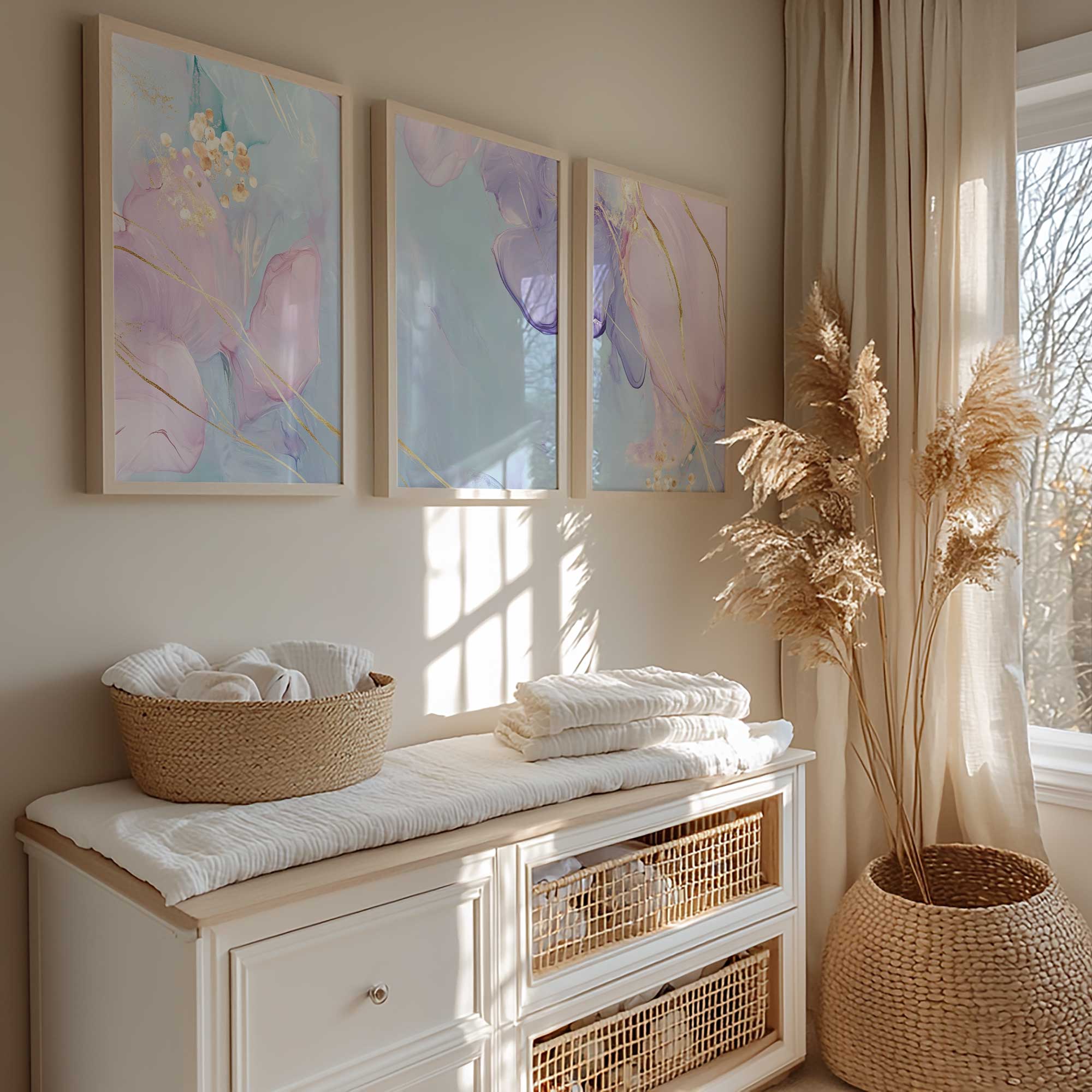 Pastel Dromen met Gouden Elegantie – Stijlvolle Wanddecoratie