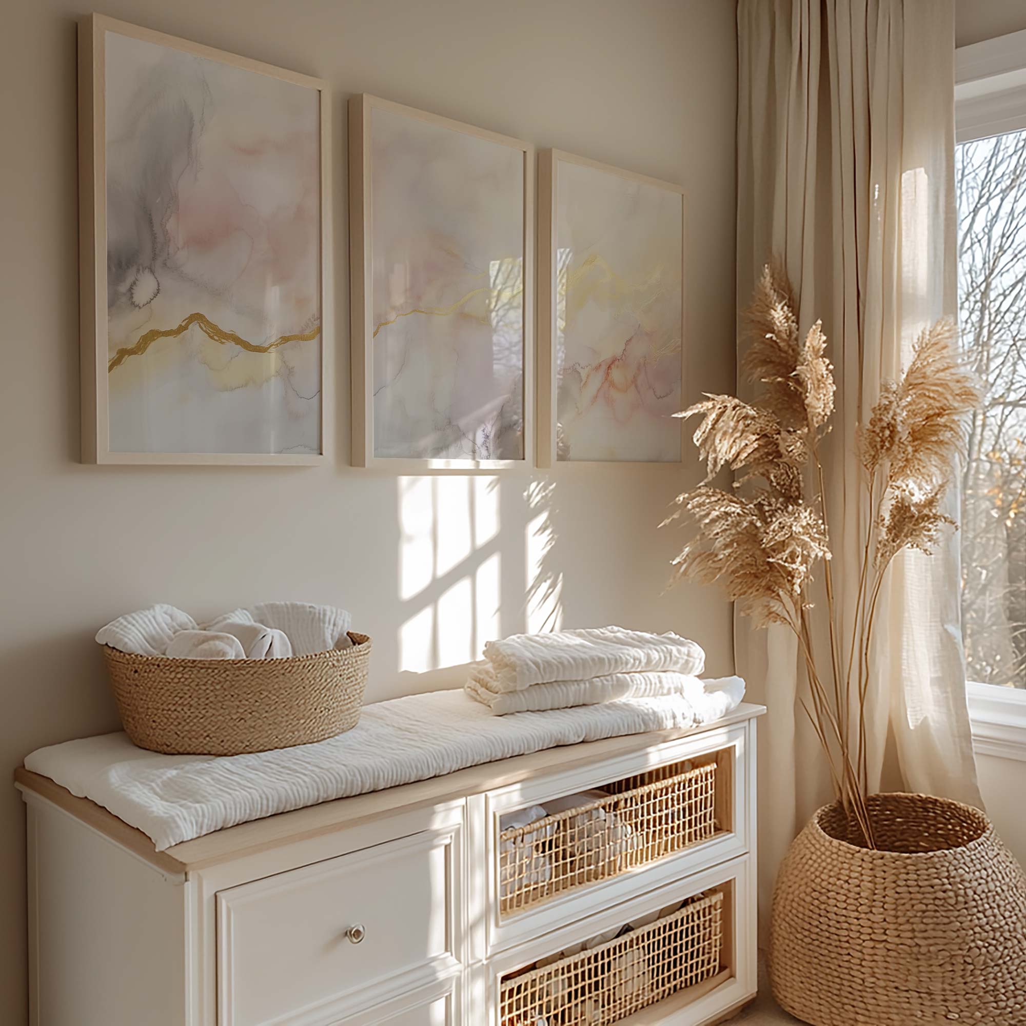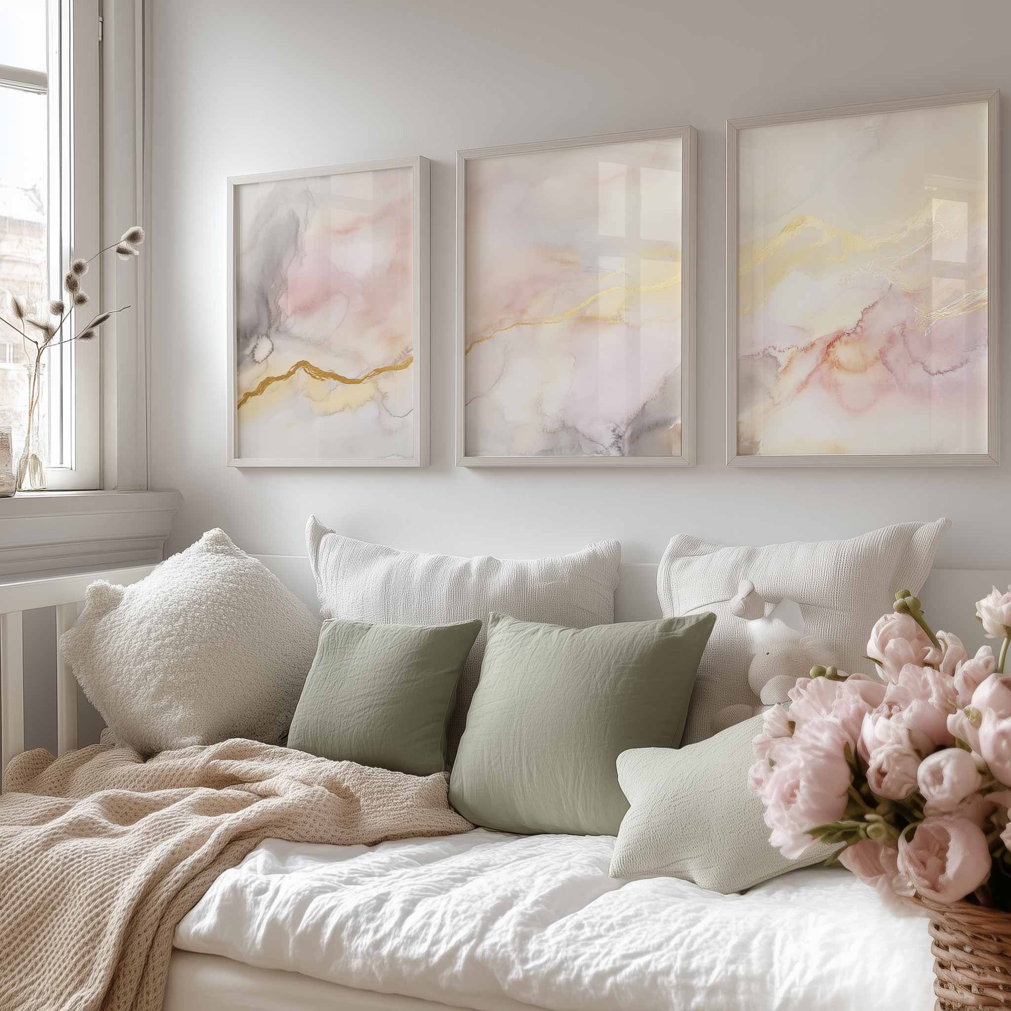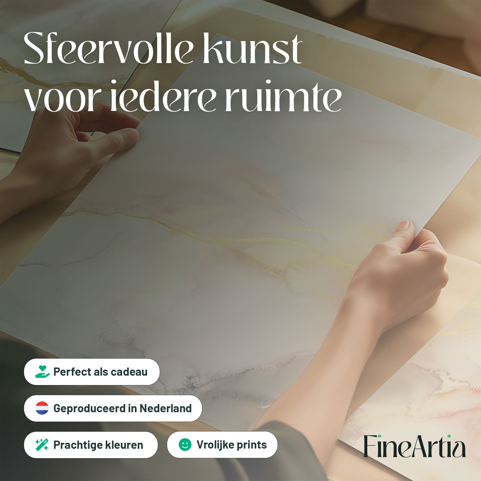 Pastel Dromen: Speelse Abstracte Wanddecoratie in Wit en Goud