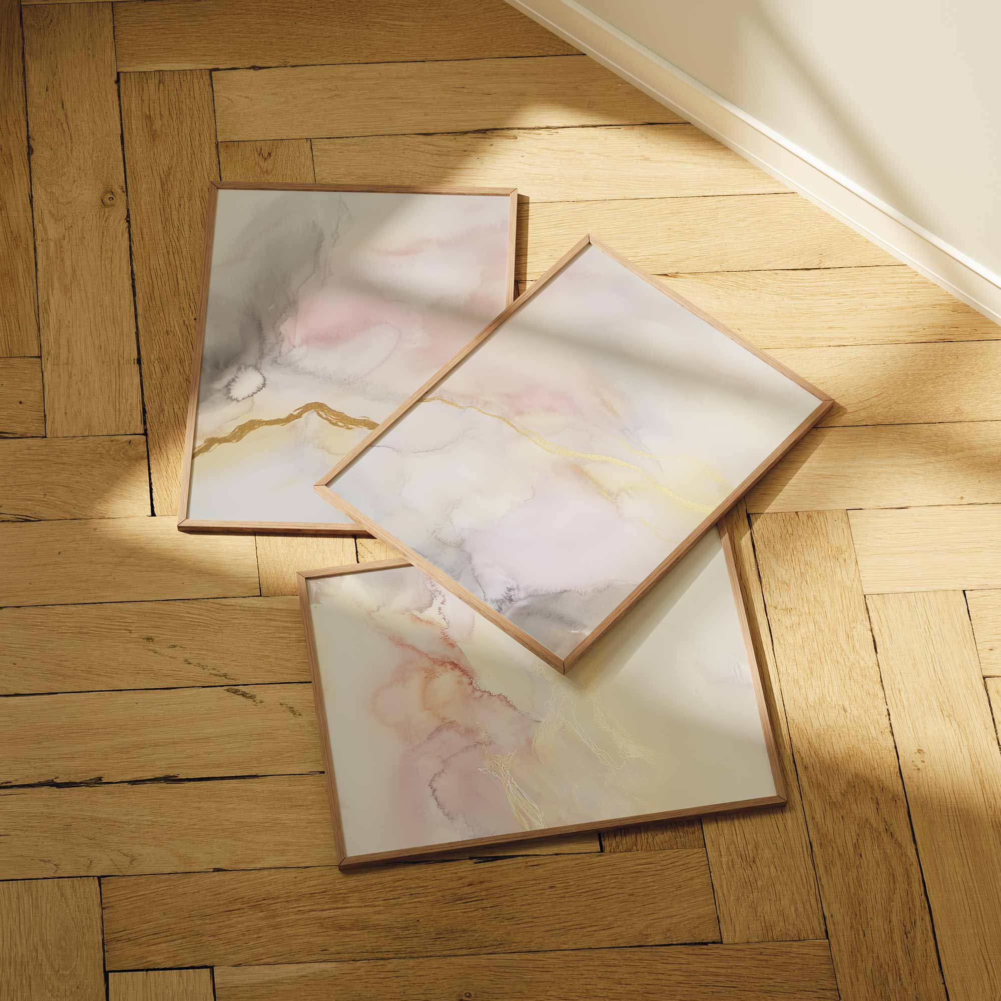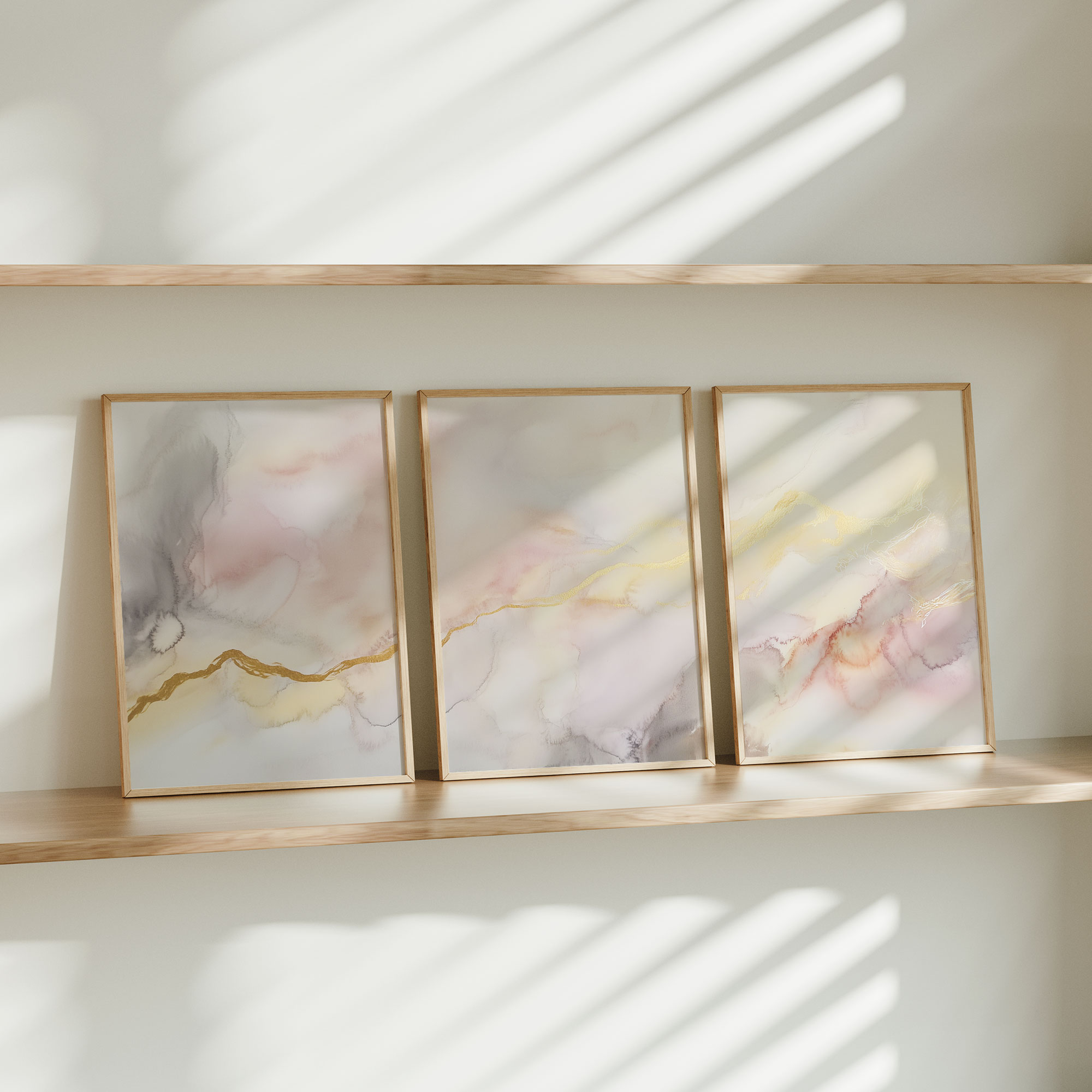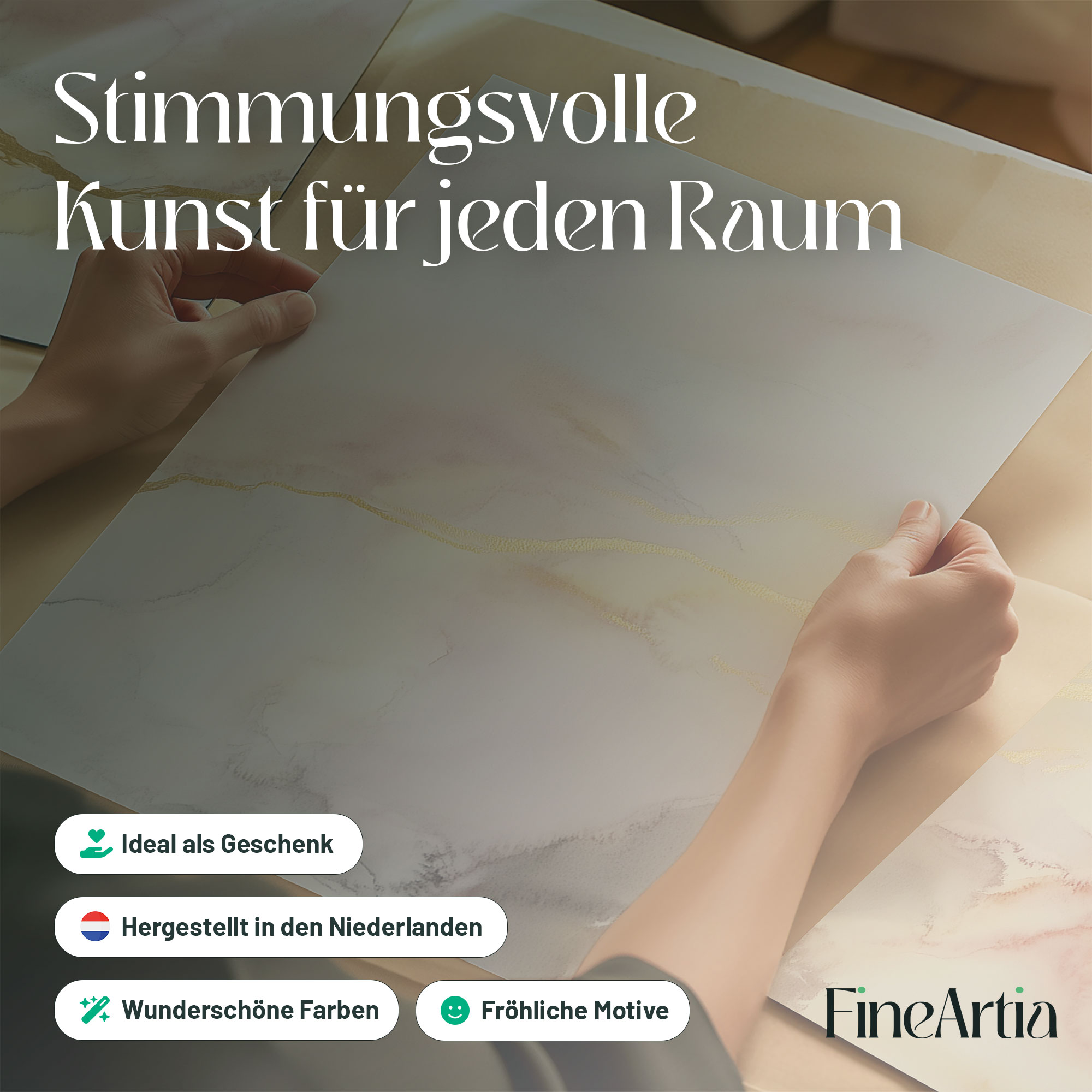 Pastel Dromen: Speelse Abstracte Wanddecoratie in Wit en Goud