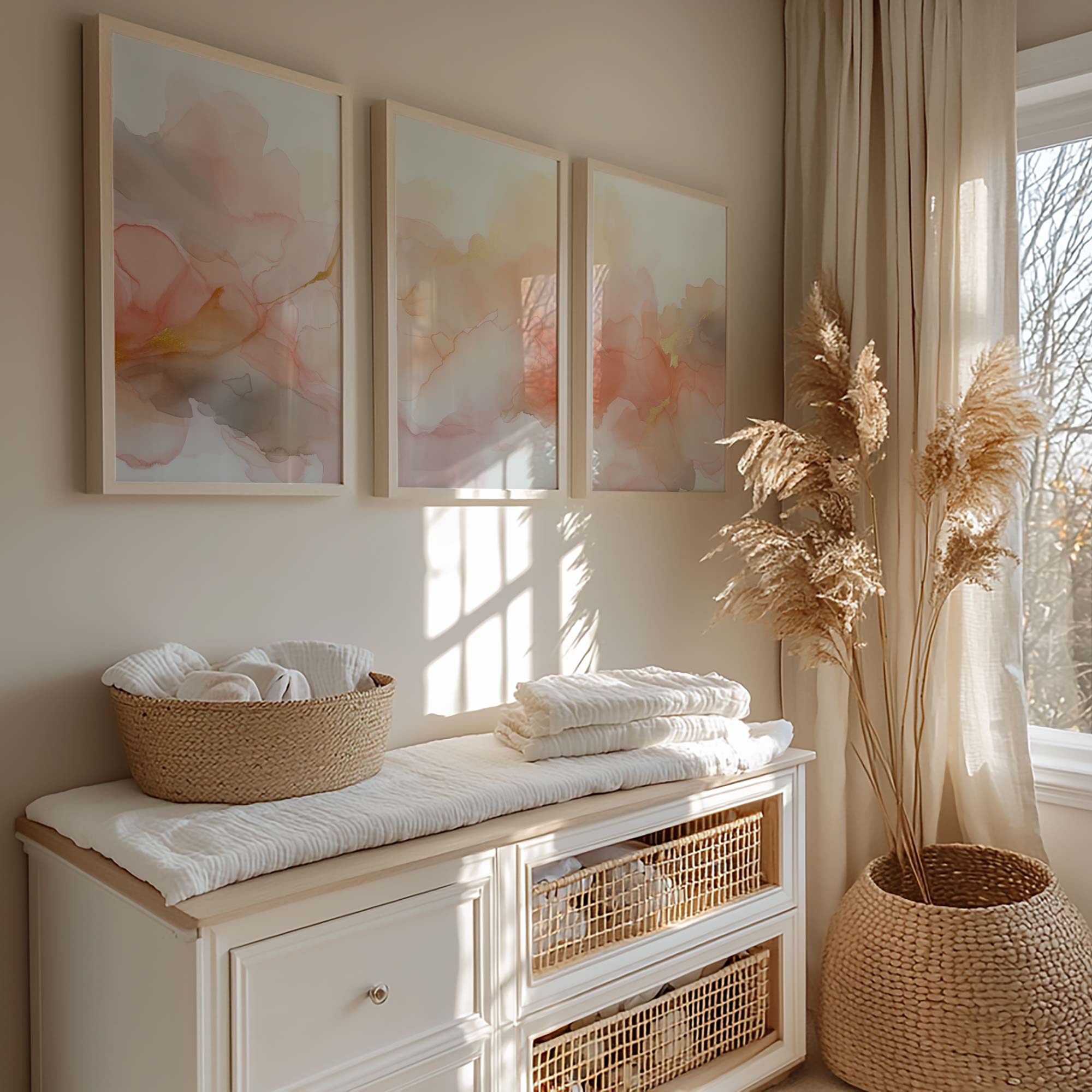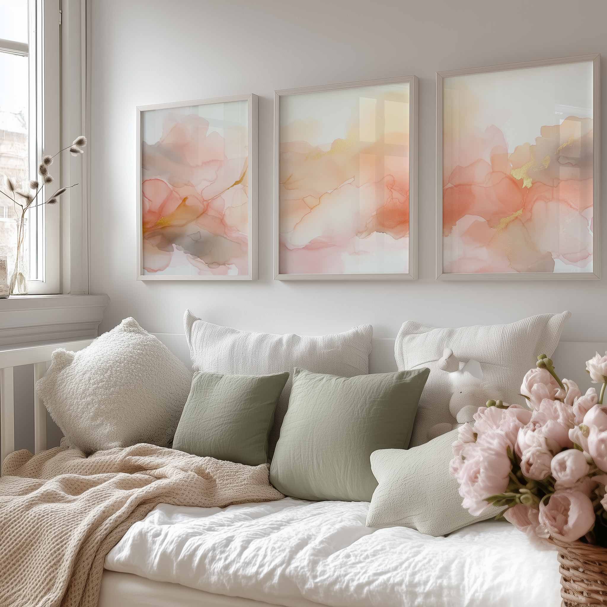 Pastel Dromen: Speelse Abstracte Waterverf in Roze, Oranje & Geel