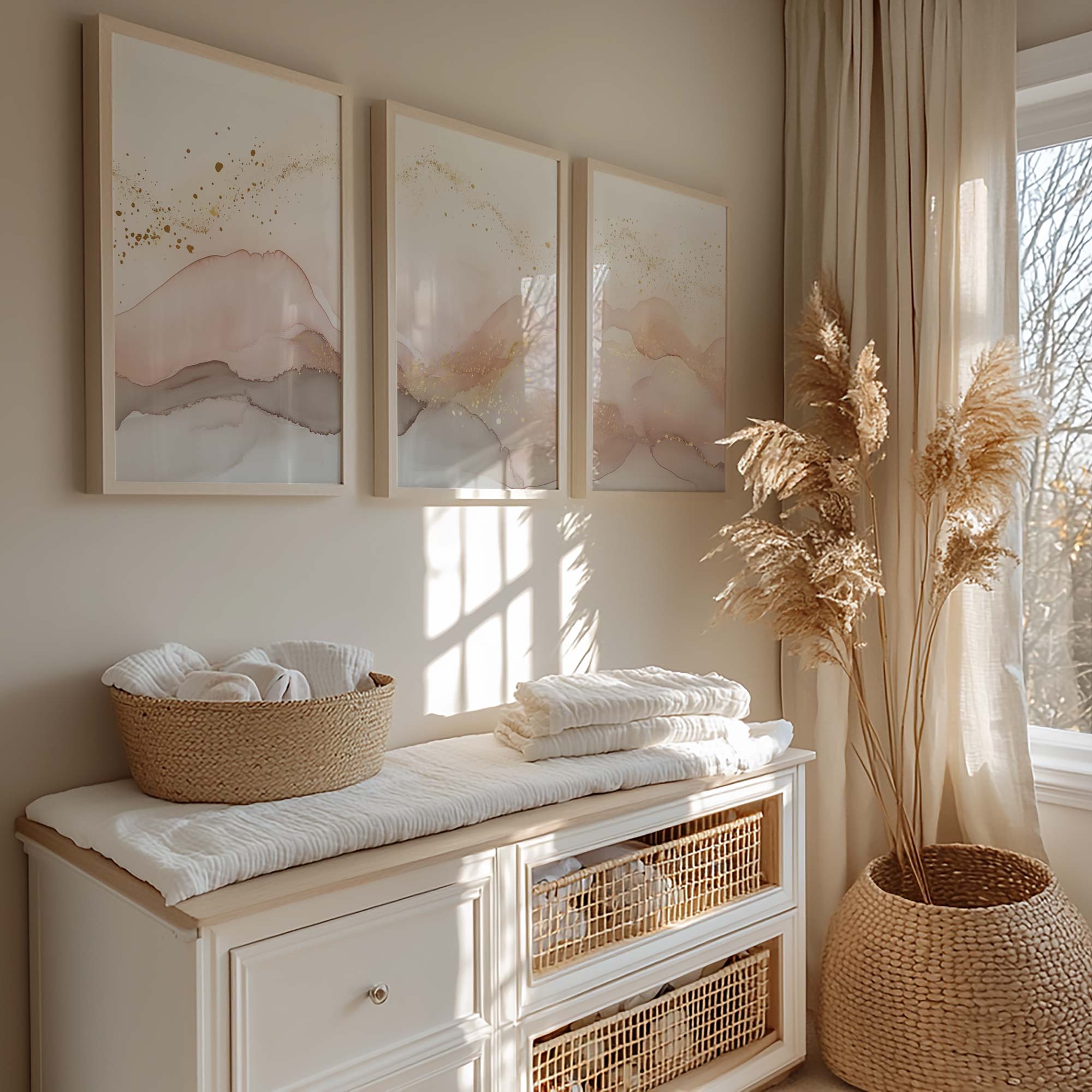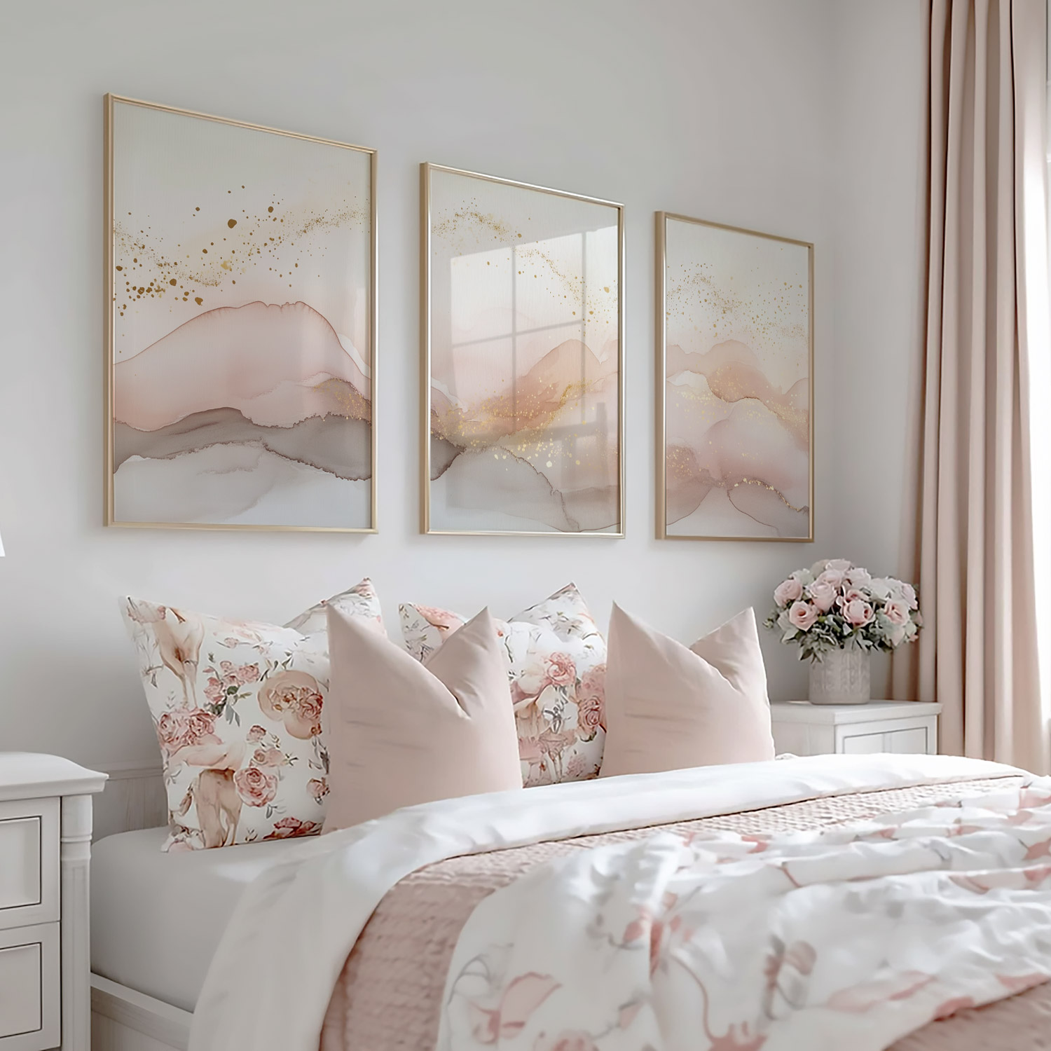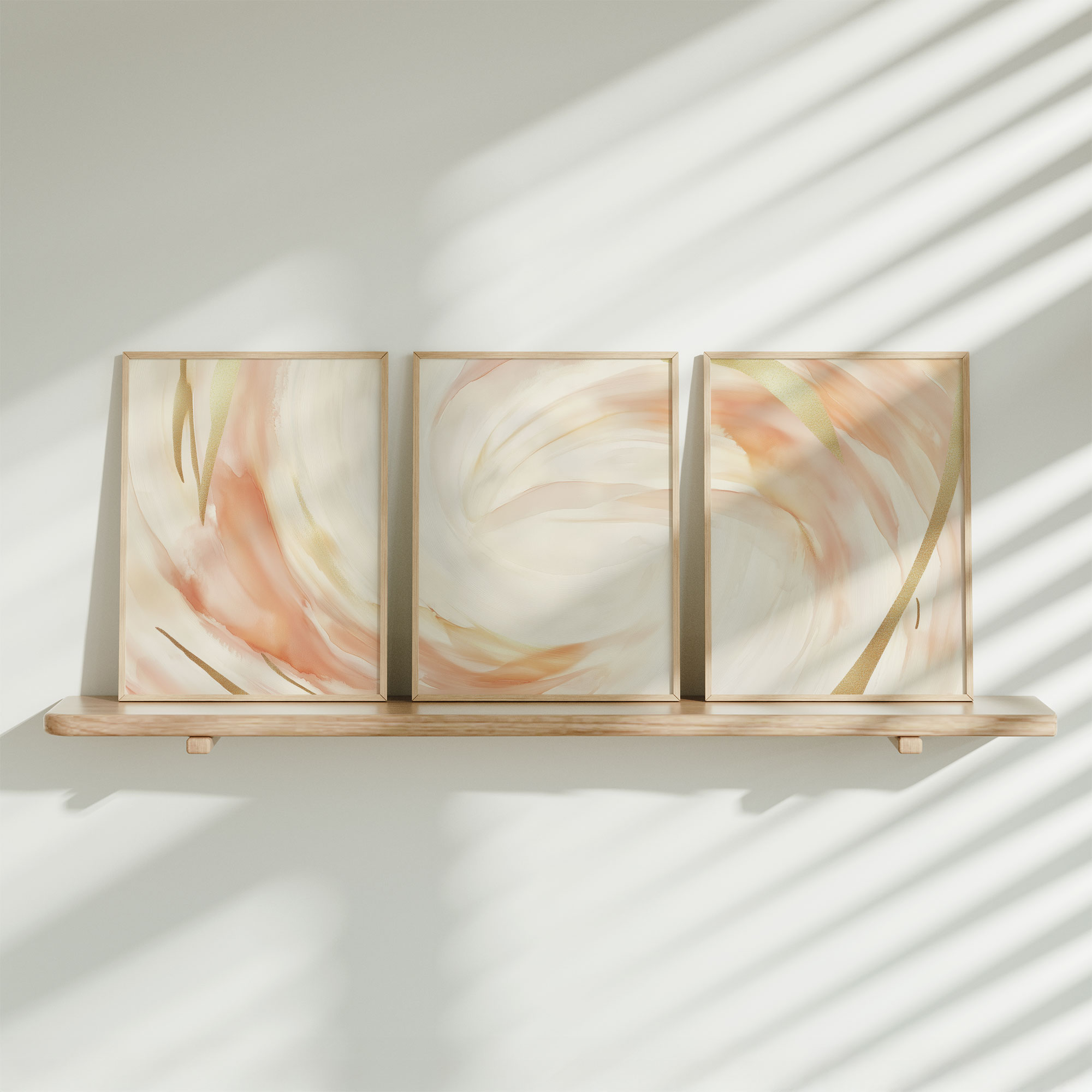 Pastel Dromerigheid met Gouden Glans – Abstracte Sereniteit