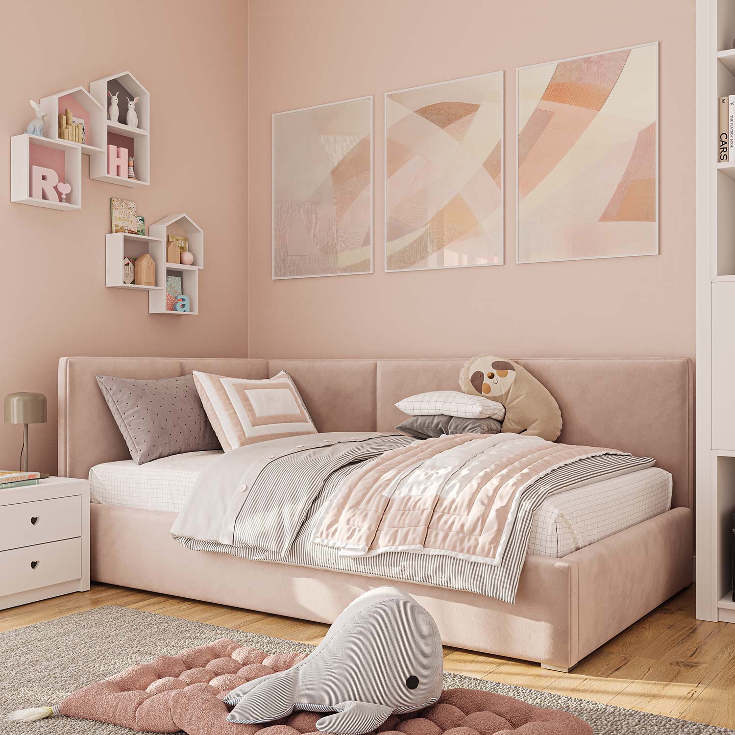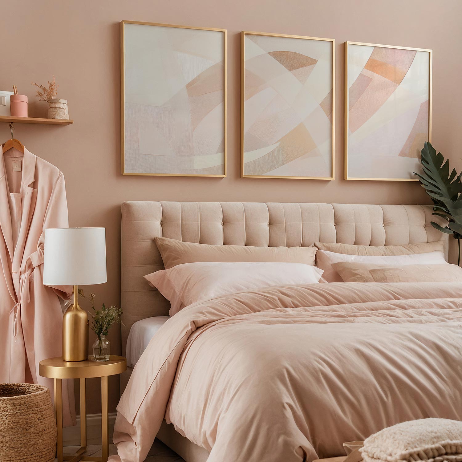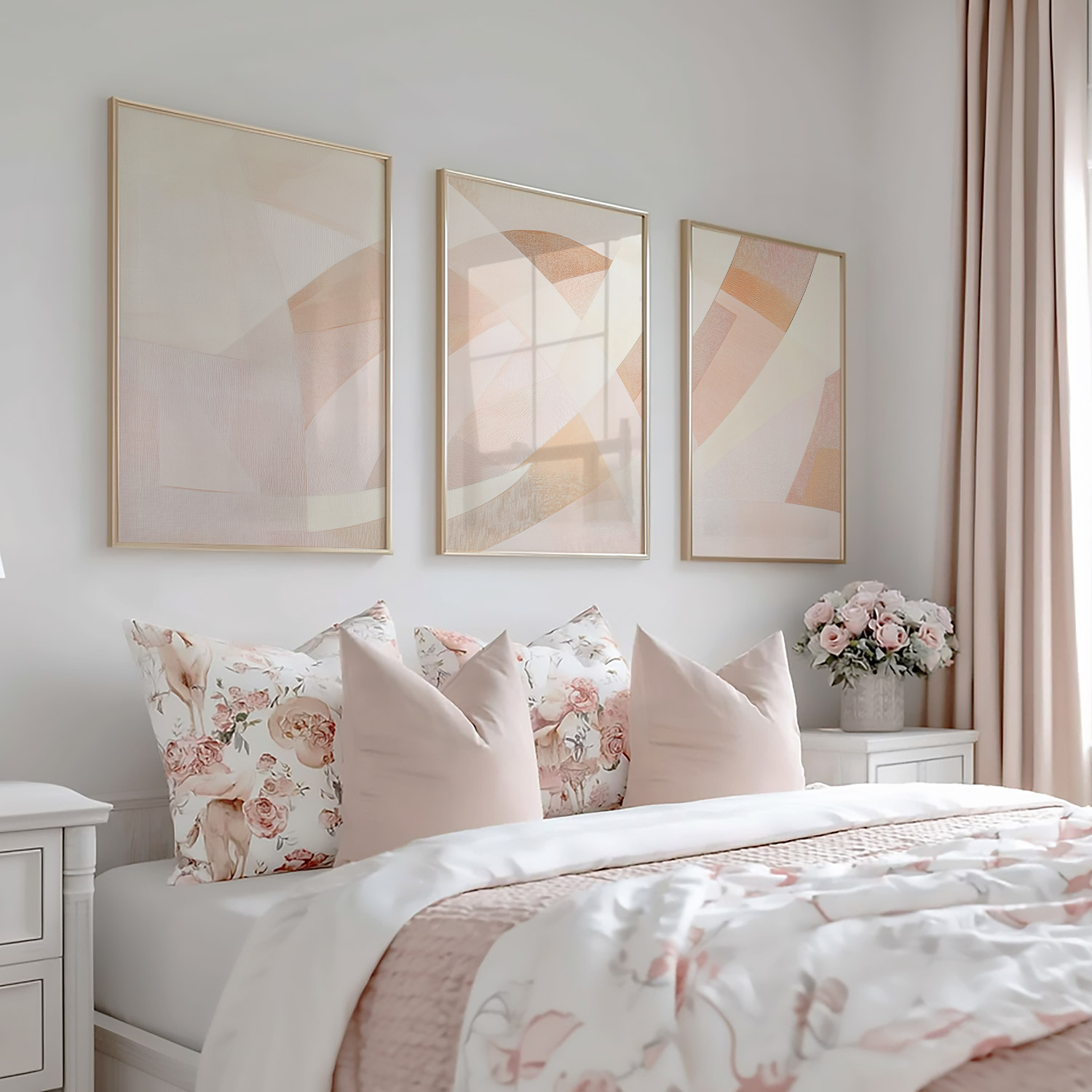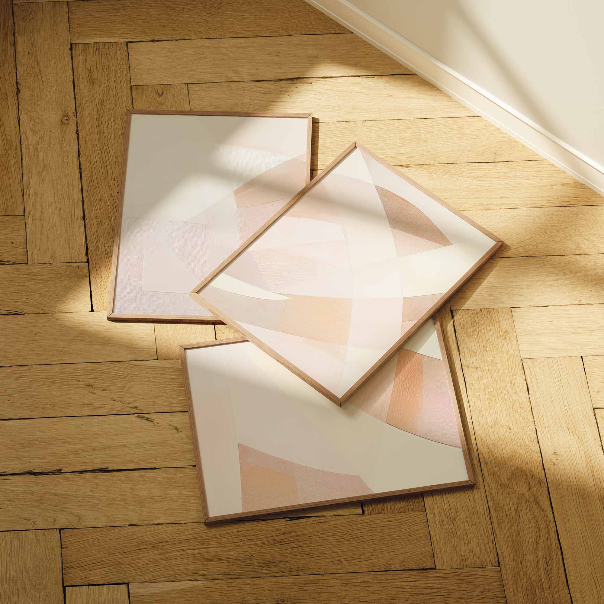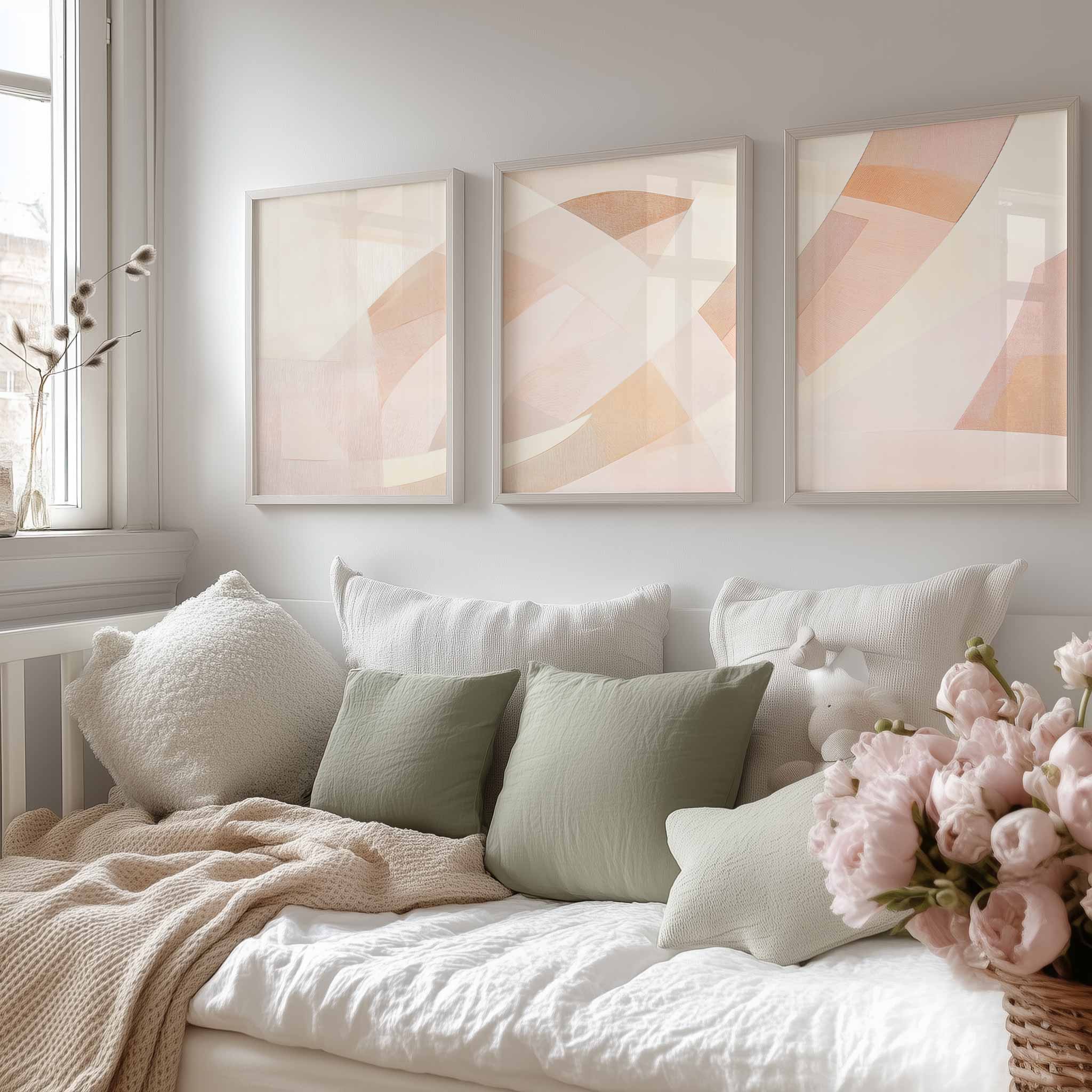 Pastel Droom: Speelse Abstracte Wanddecoratie in Roze Tinten