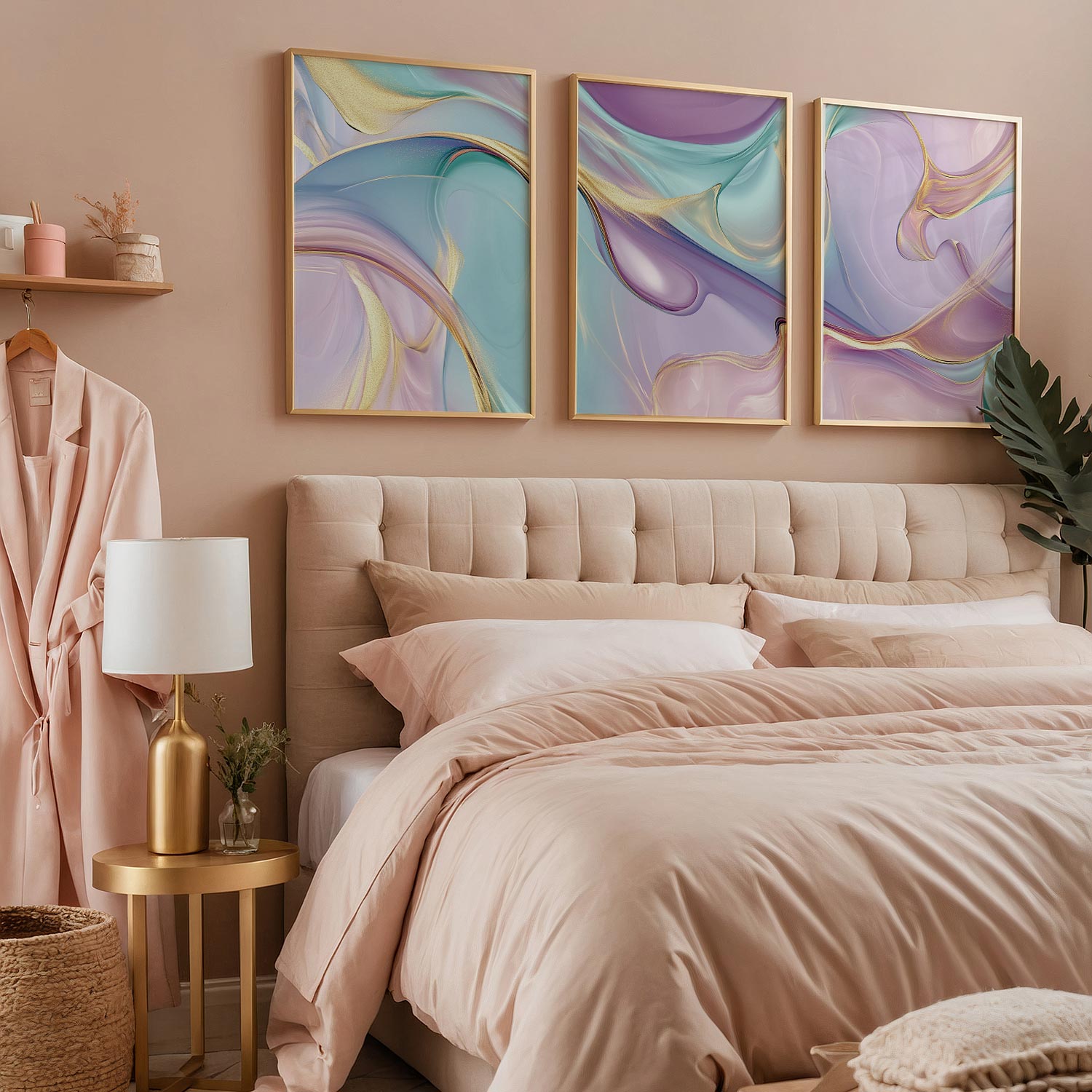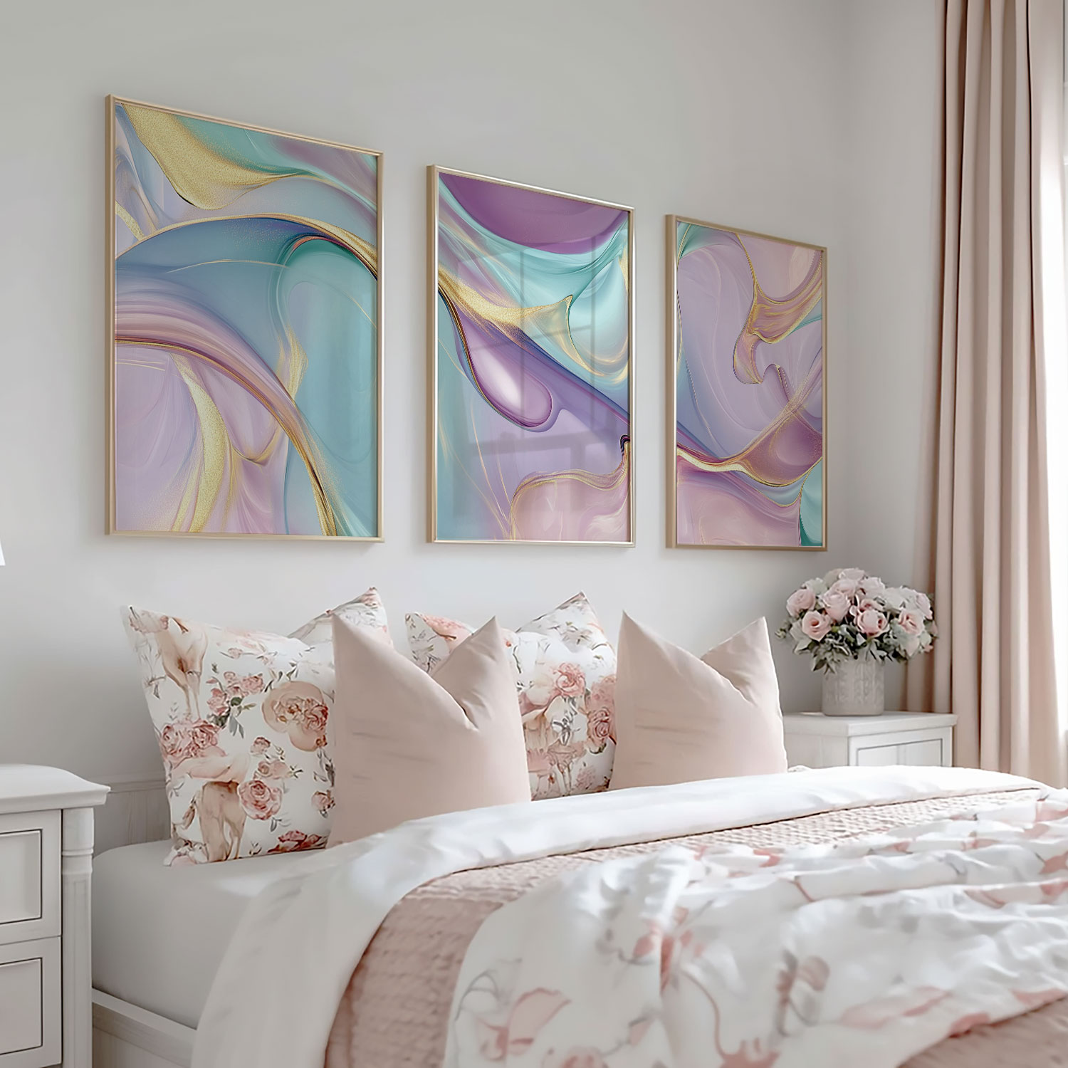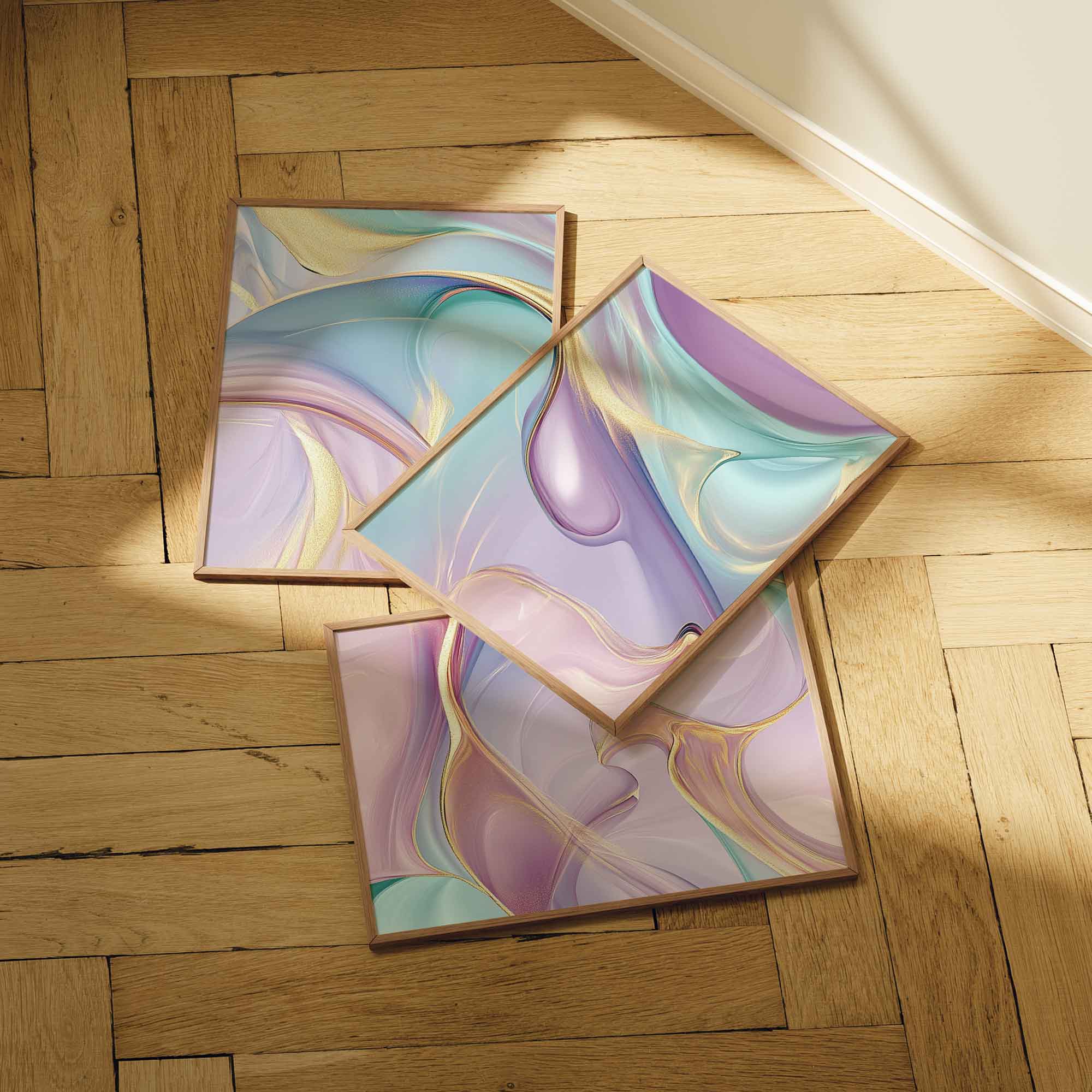 Pastel & Goud Abstracte Swirls – Speels & Elegant Design
