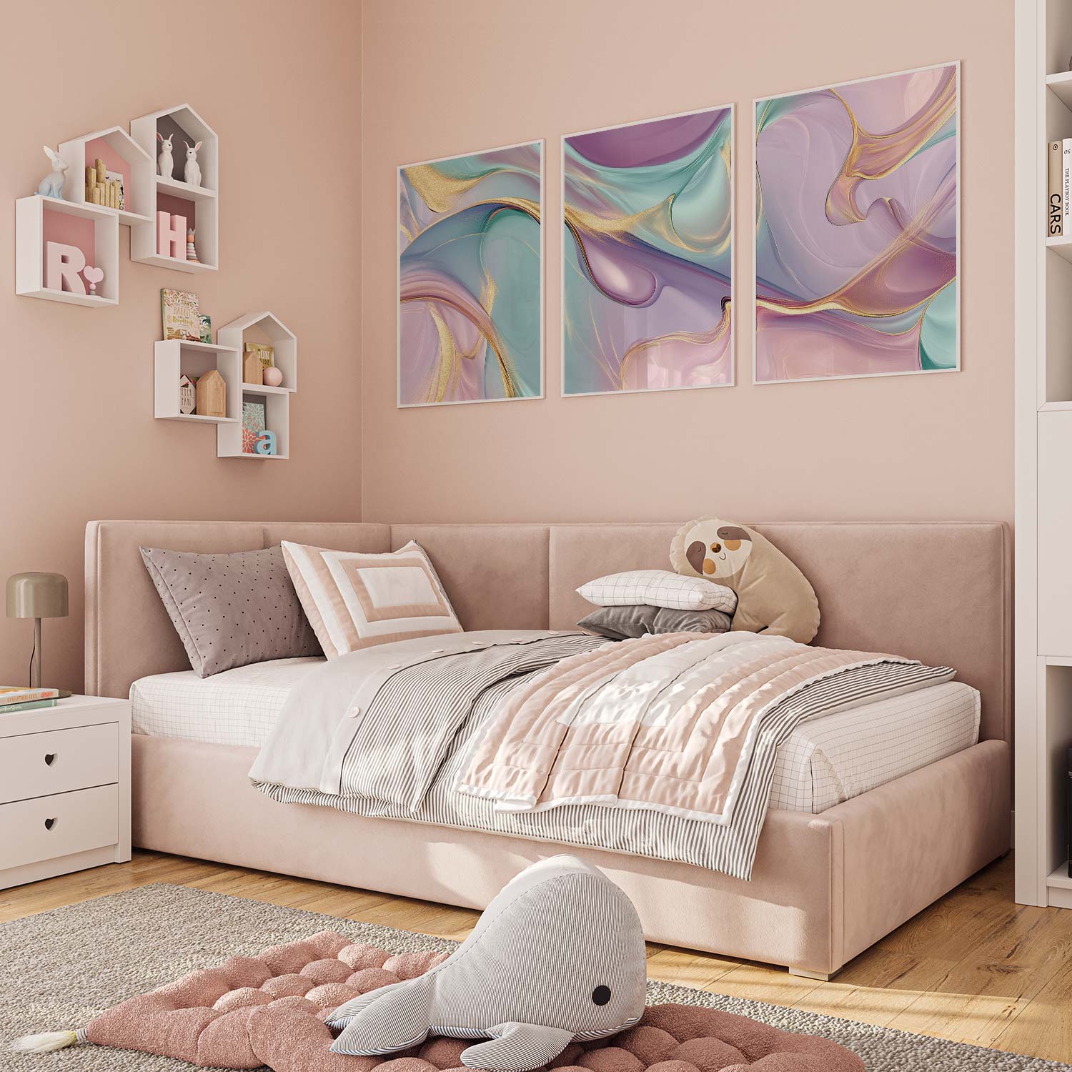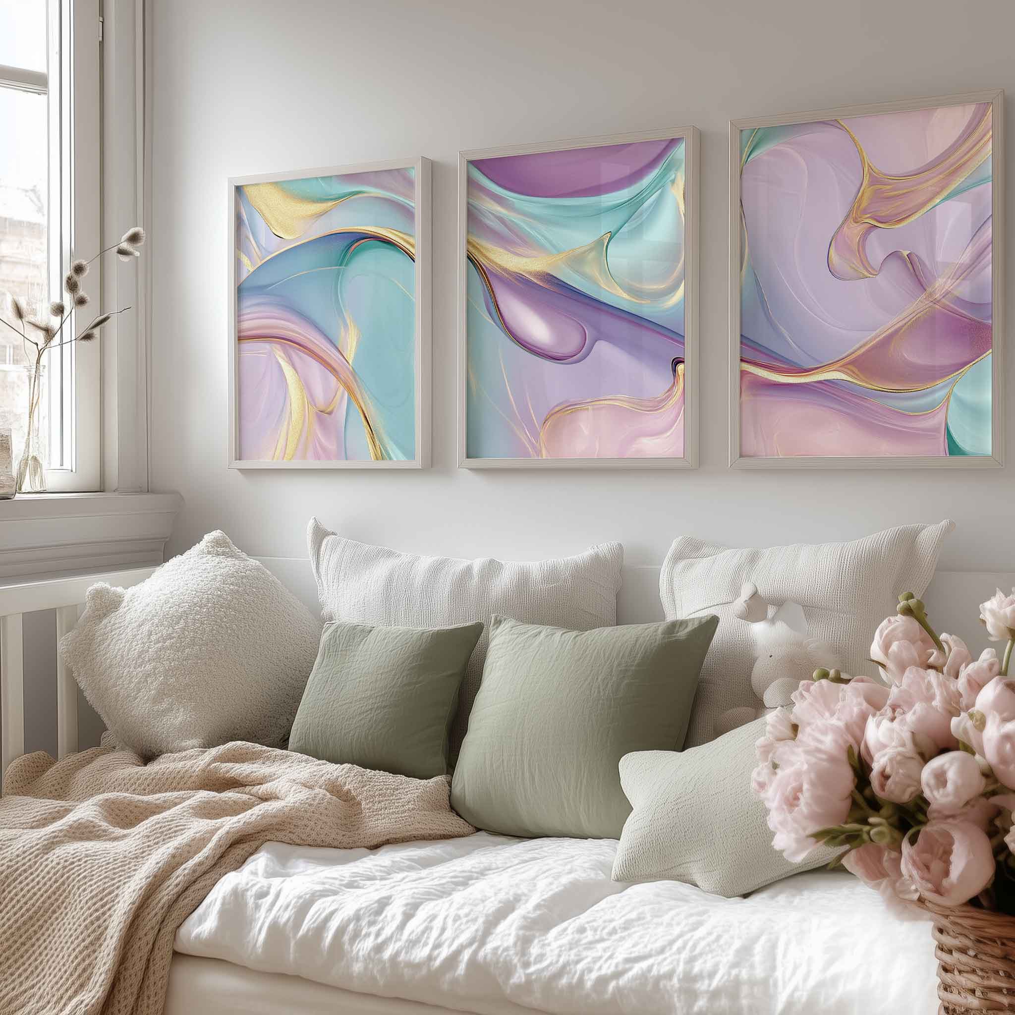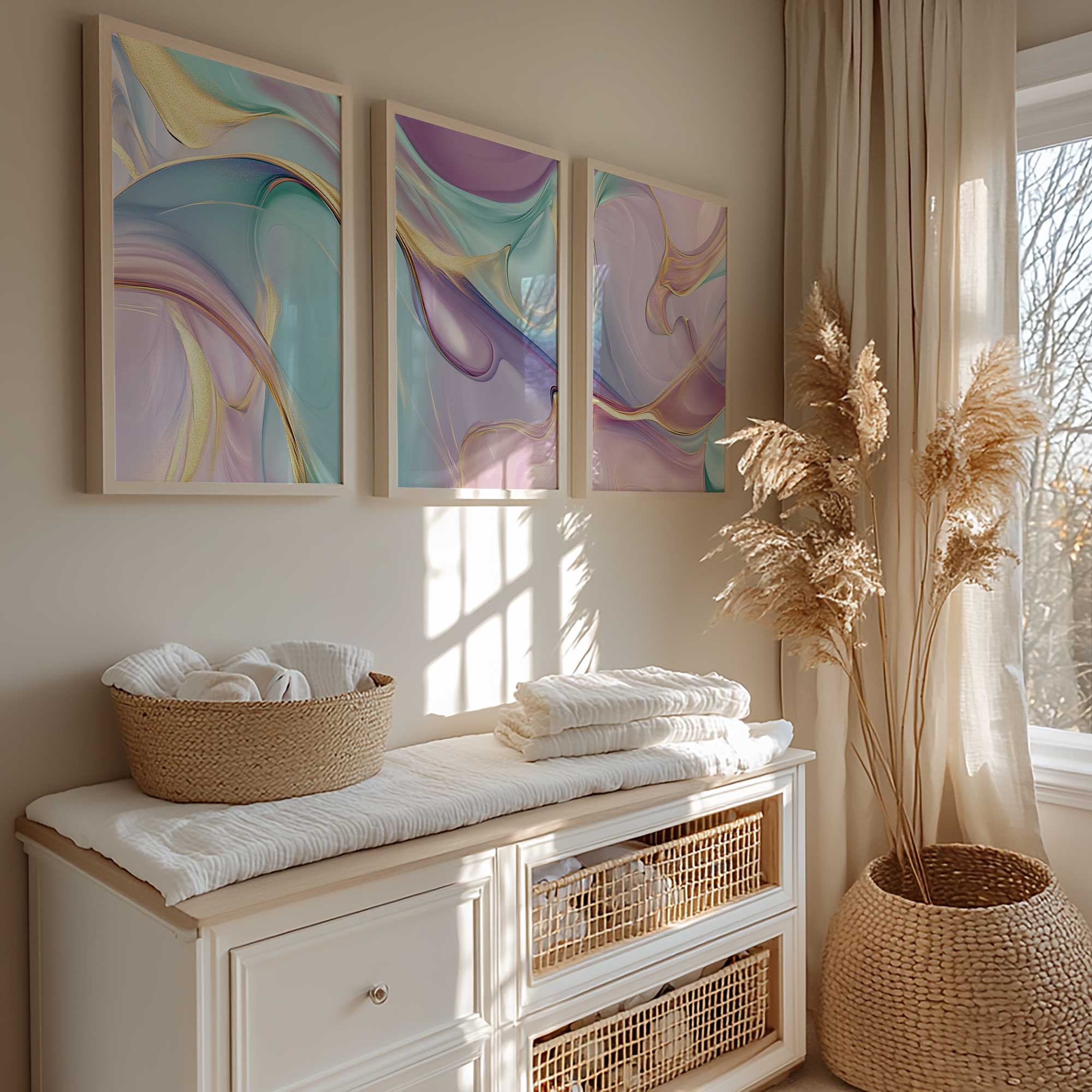 Pastel & Goud Abstracte Swirls – Speels & Elegant Design