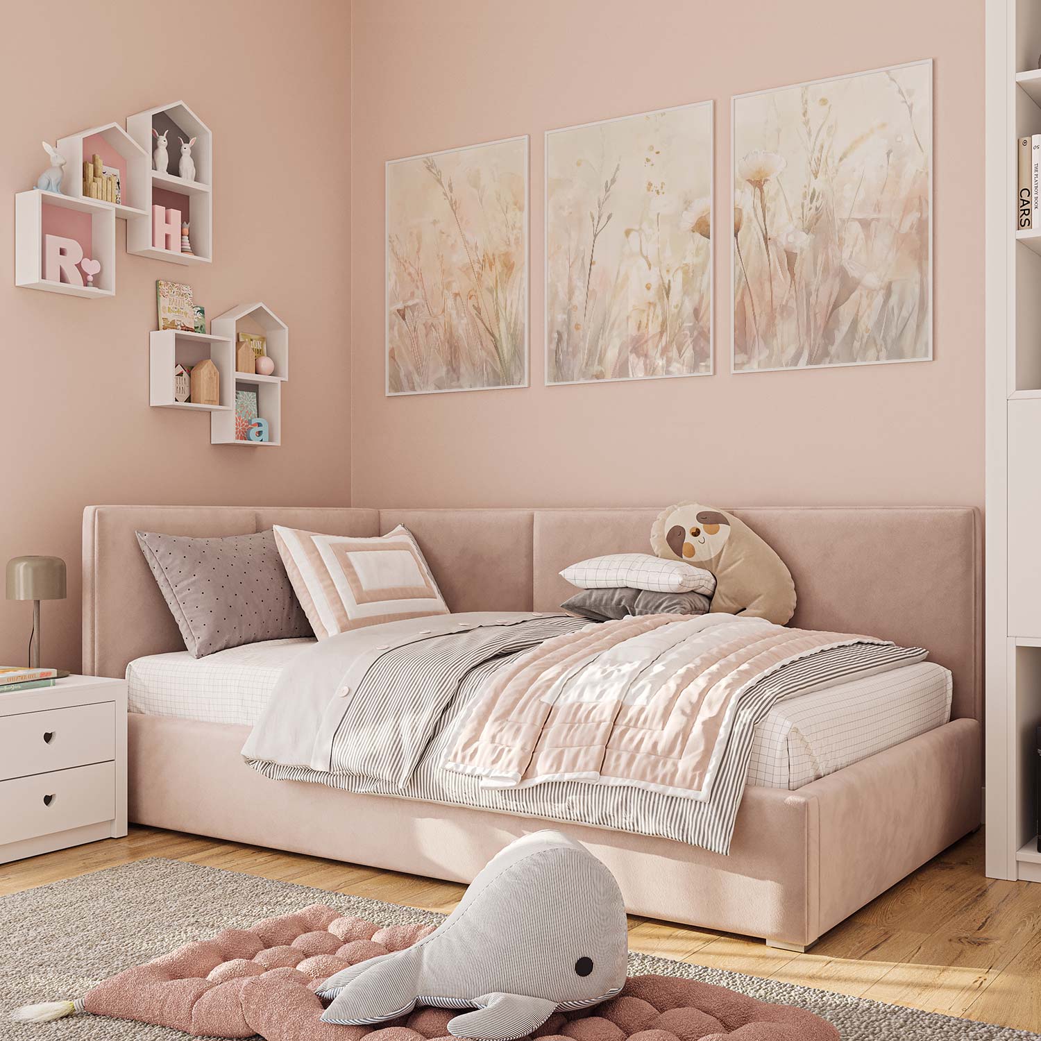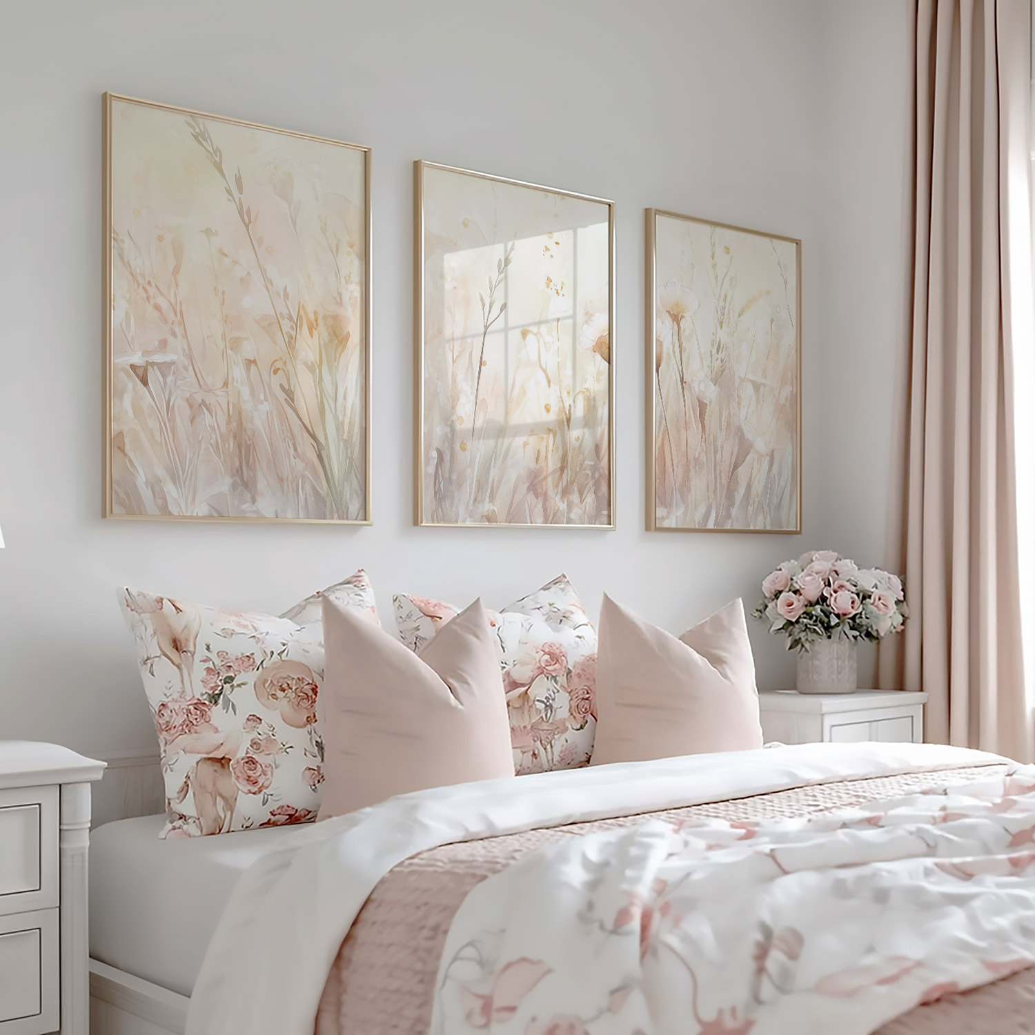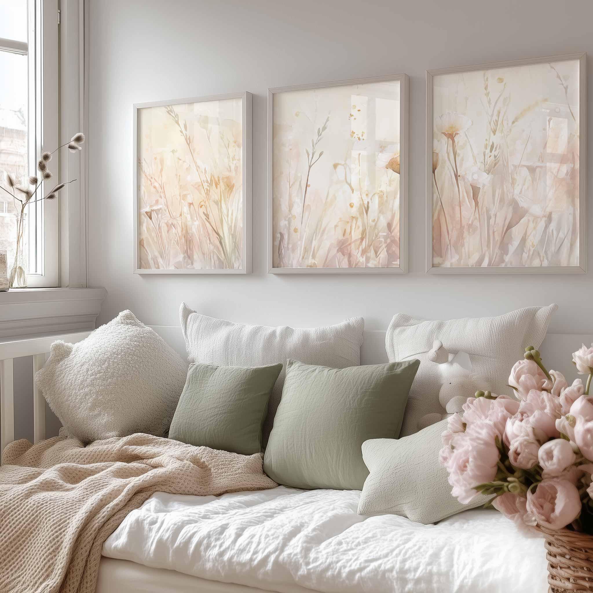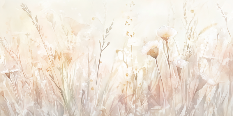 Pastel Grasveld met Witte Bloemen – Dromerige Natuursfeer