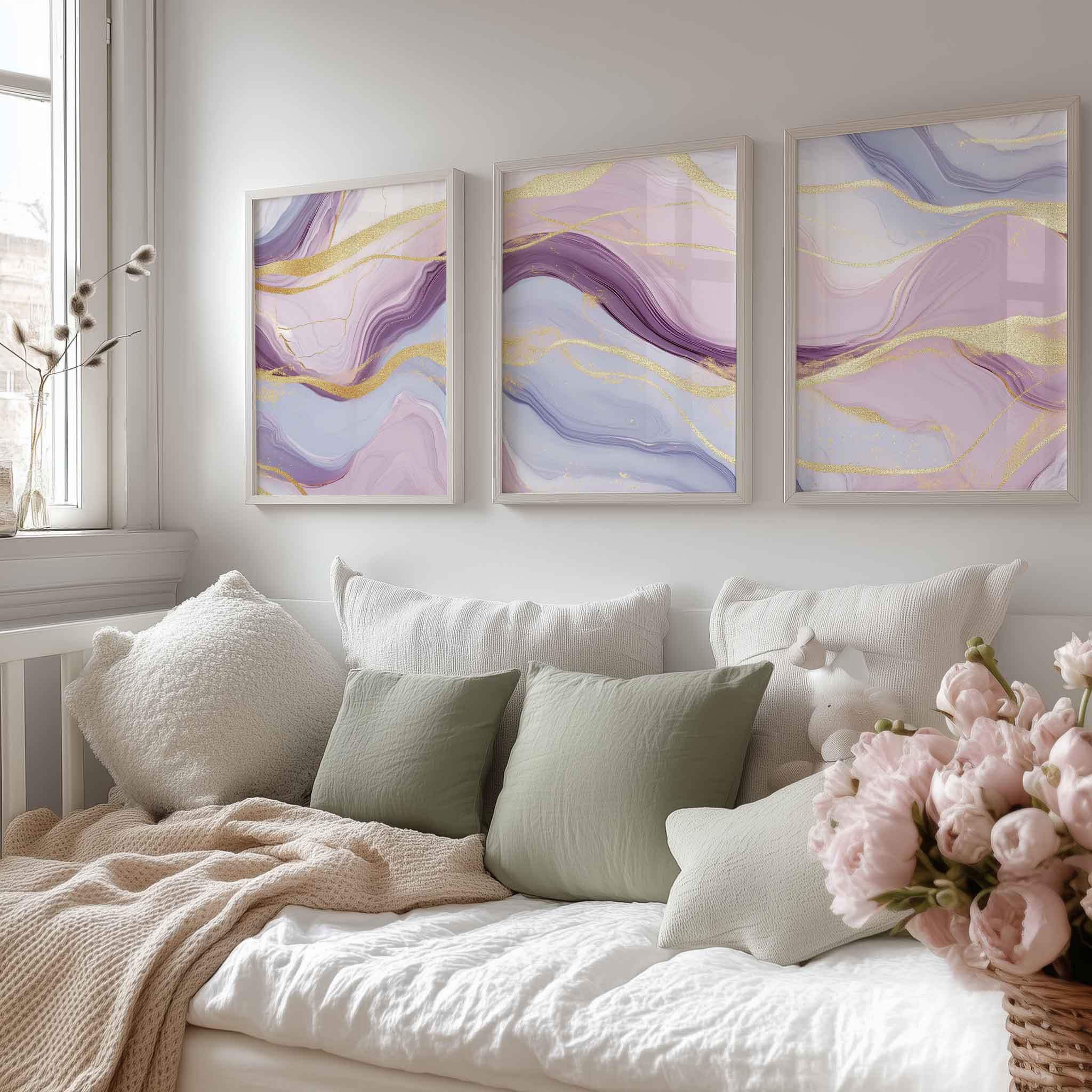 Pastel Paars & Roze Marmer met Gouden Accenten