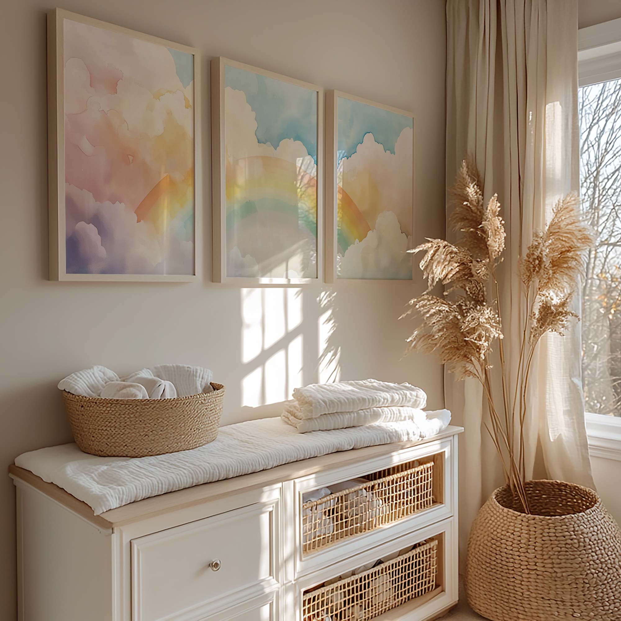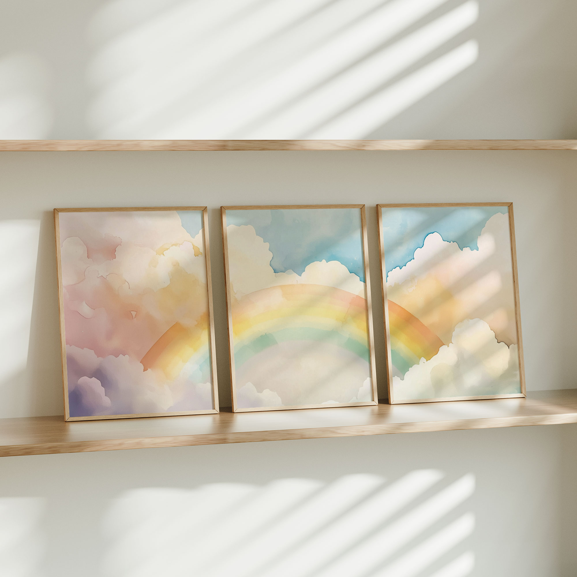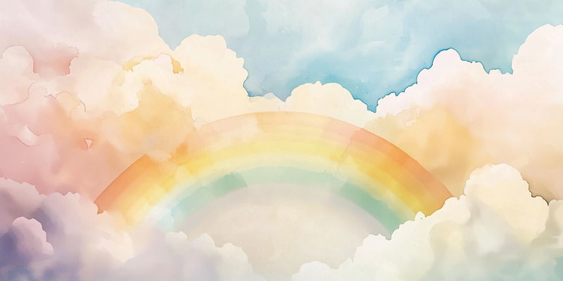 Pastel Regenboog Droom – Zachte Lucht en Wolken