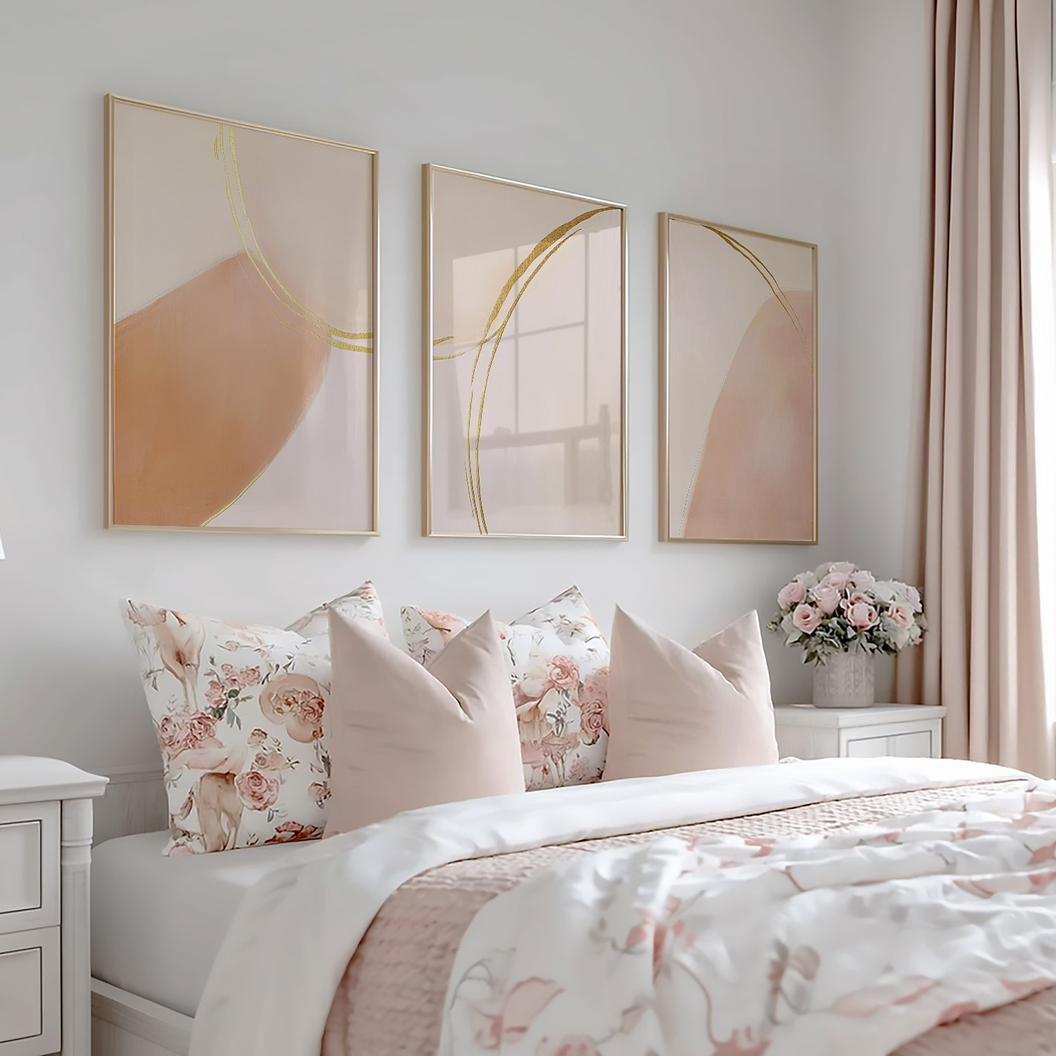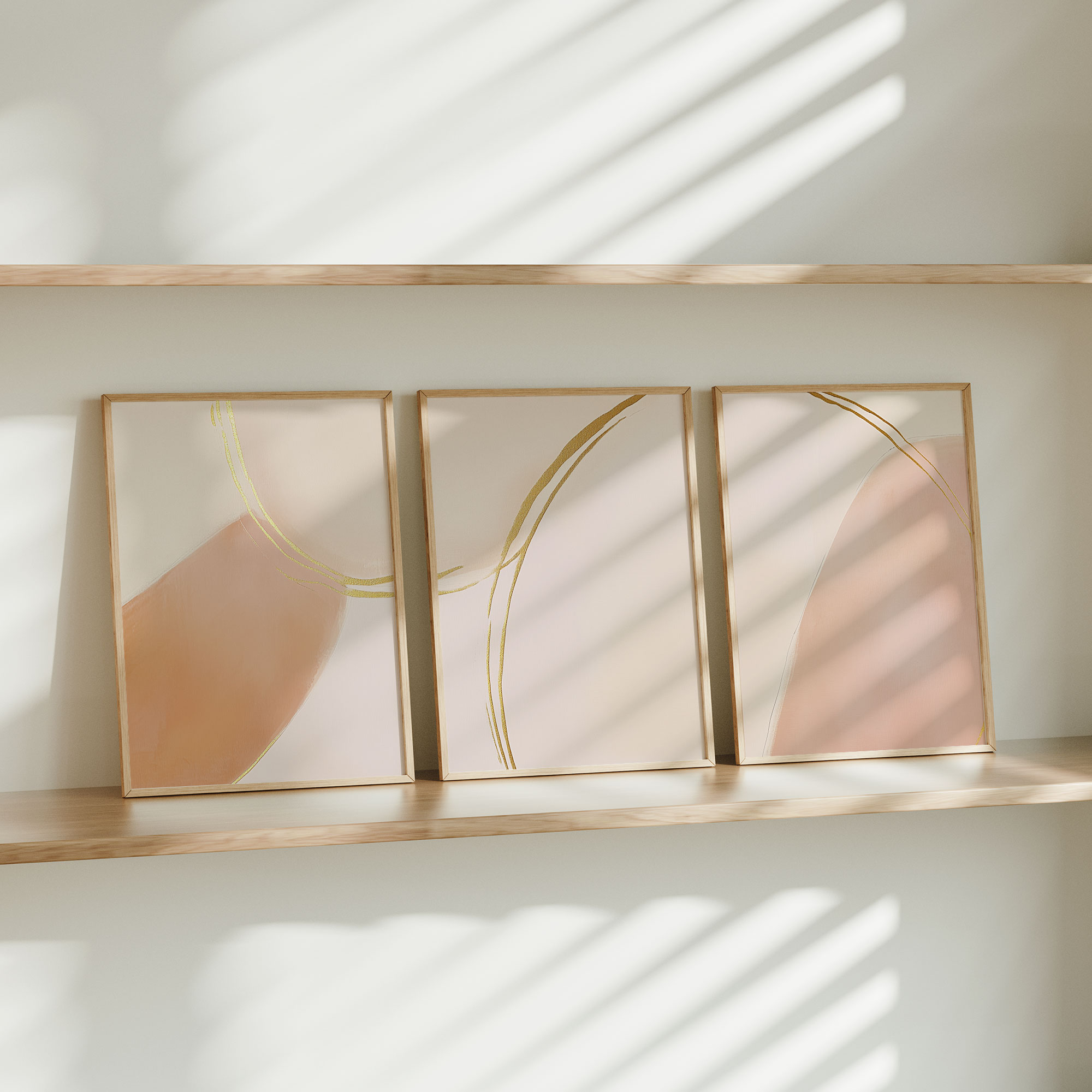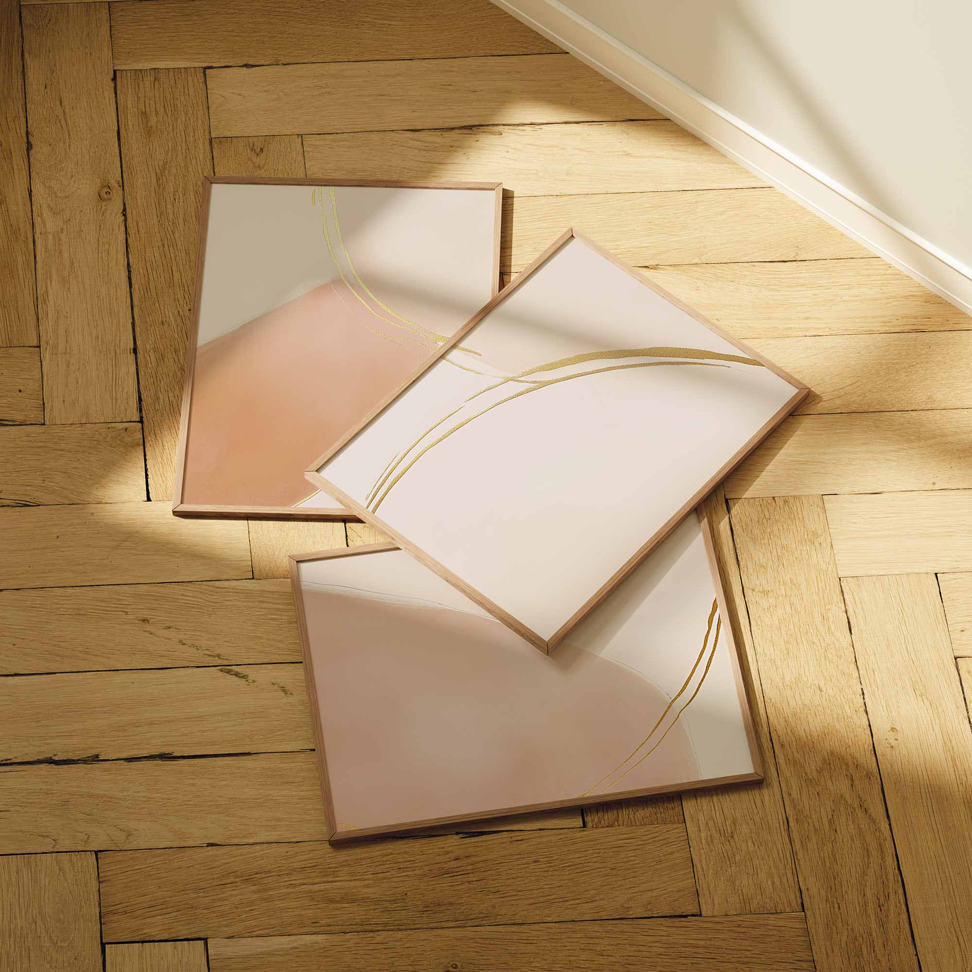 Pastel Roze Abstracte Elegantie met Gouden Lijnen