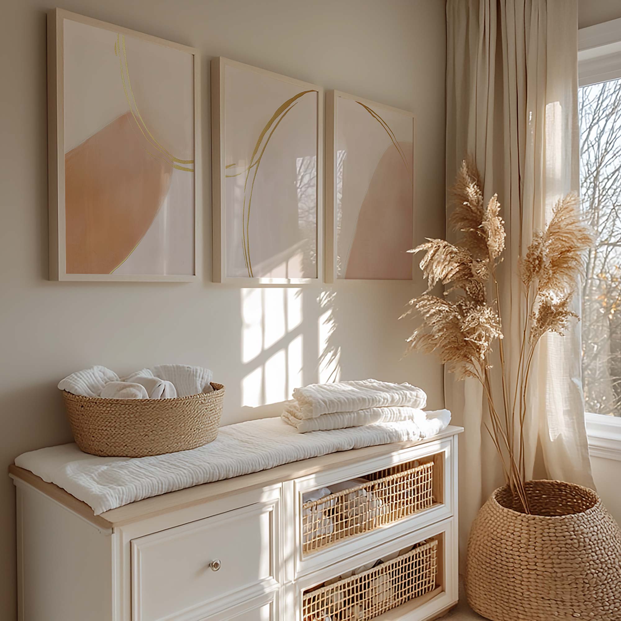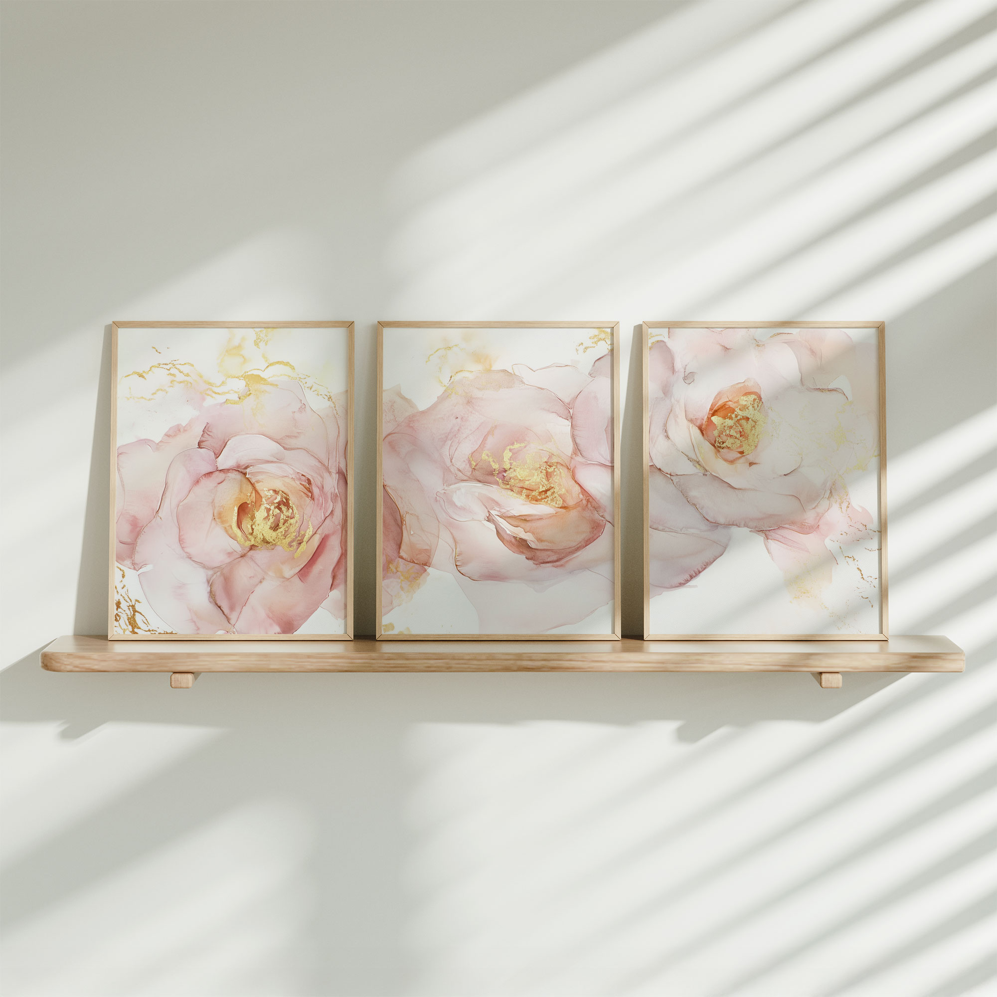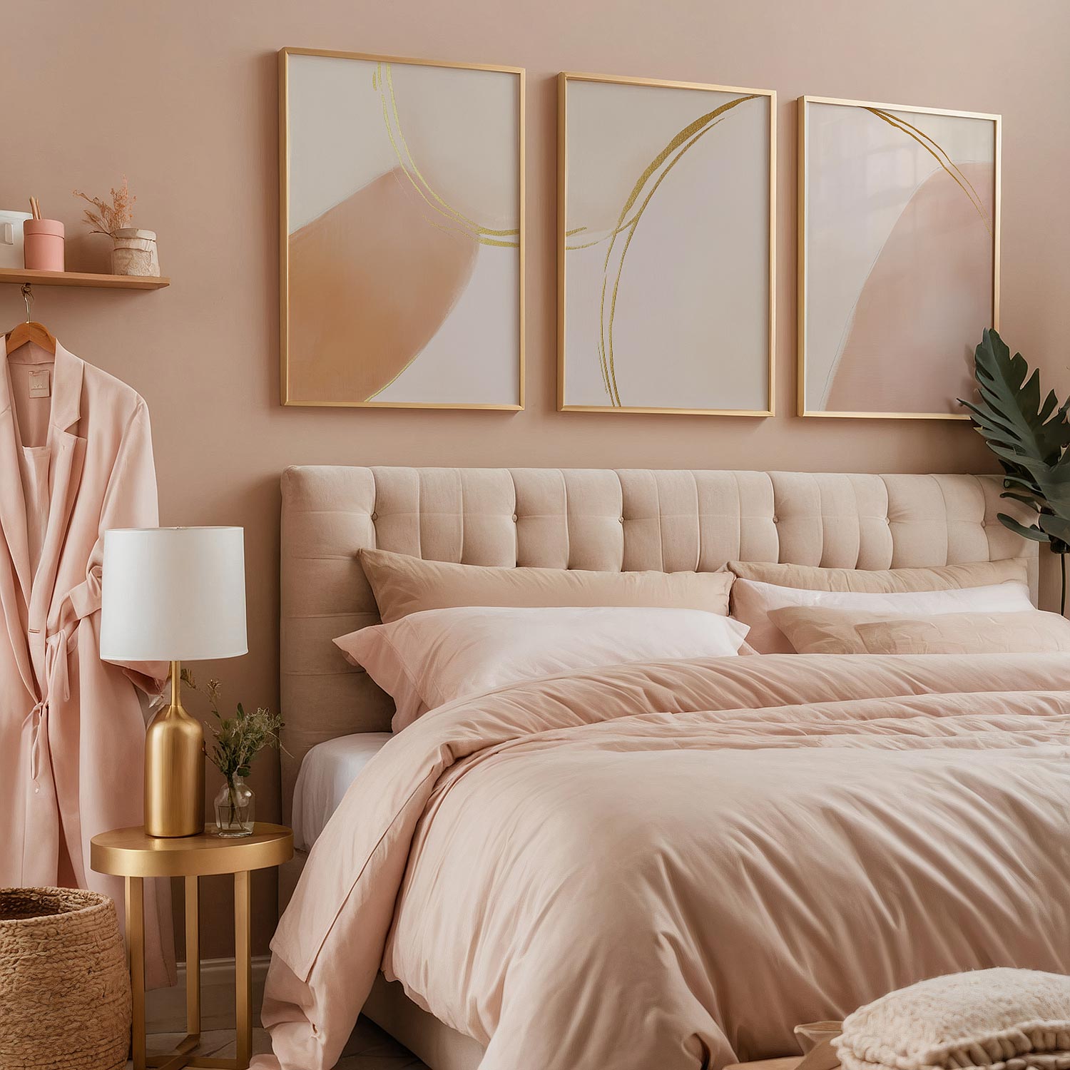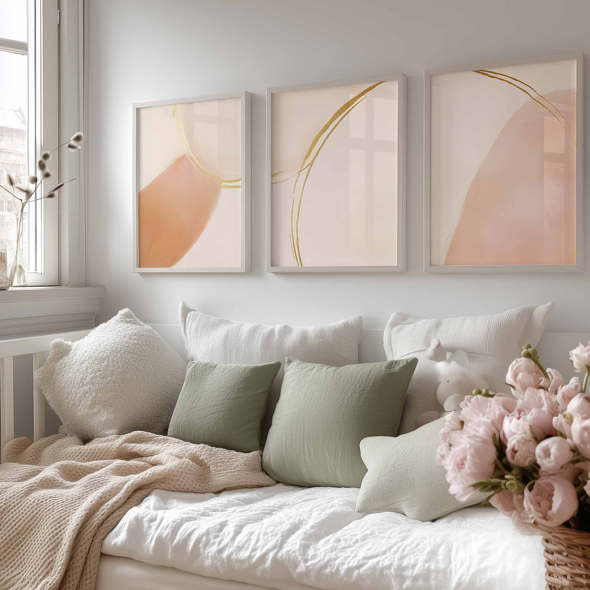 Pastel Roze Abstracte Elegantie met Gouden Lijnen