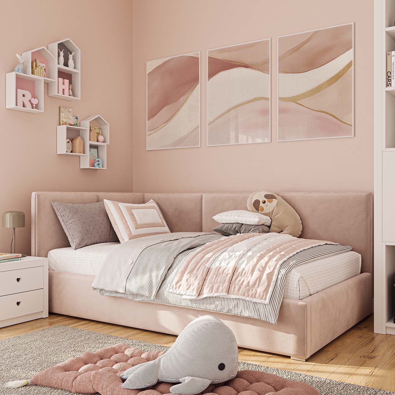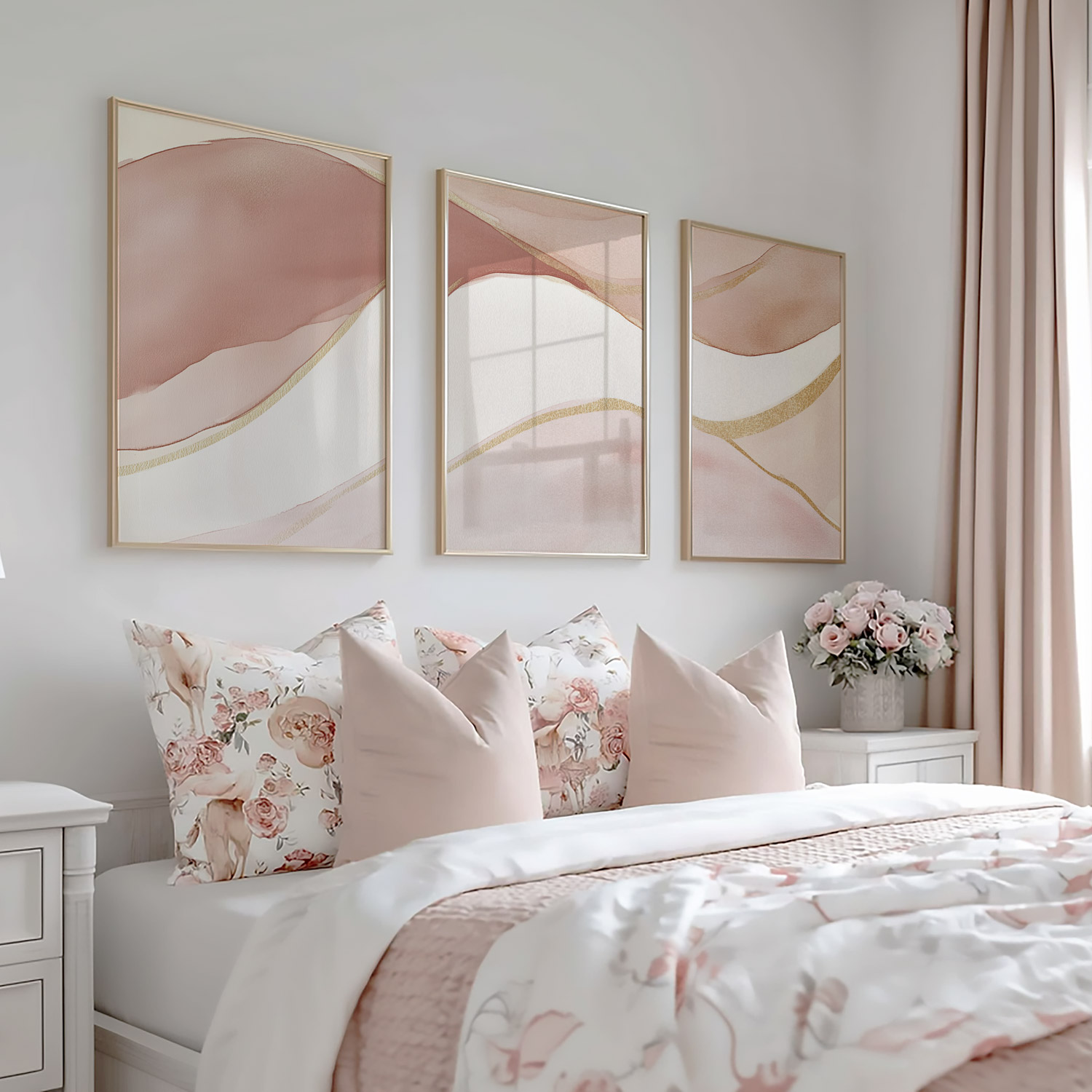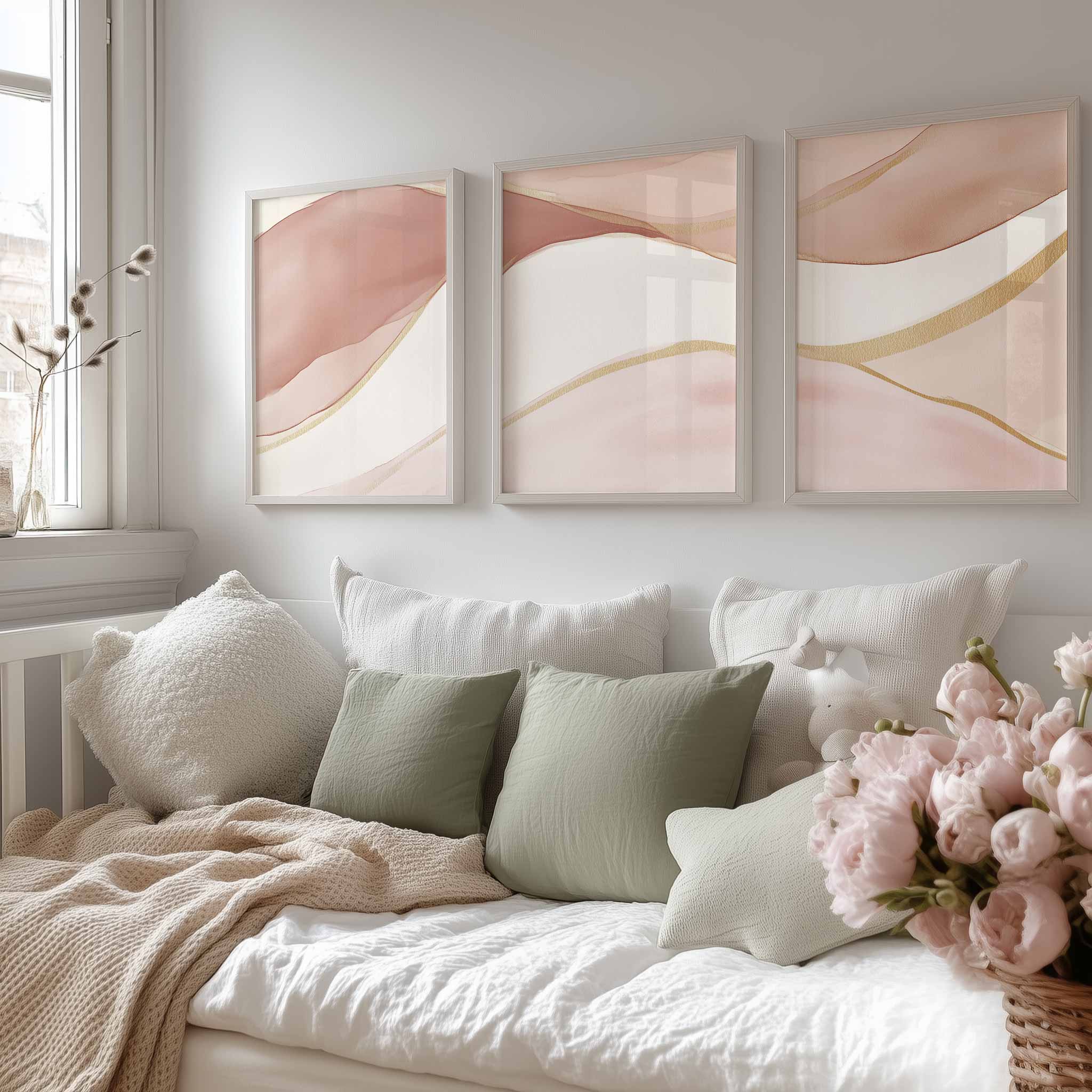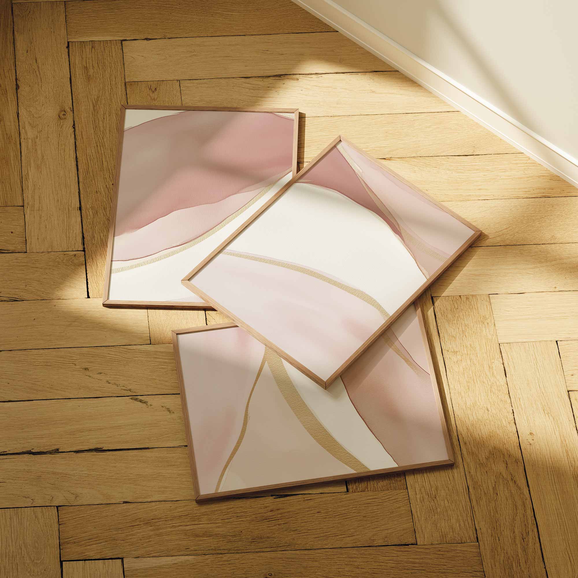 Pastel Roze Abstracte Lijnen – Stijlvolle & Speelse Wanddecoratie