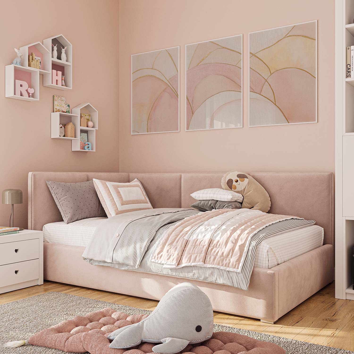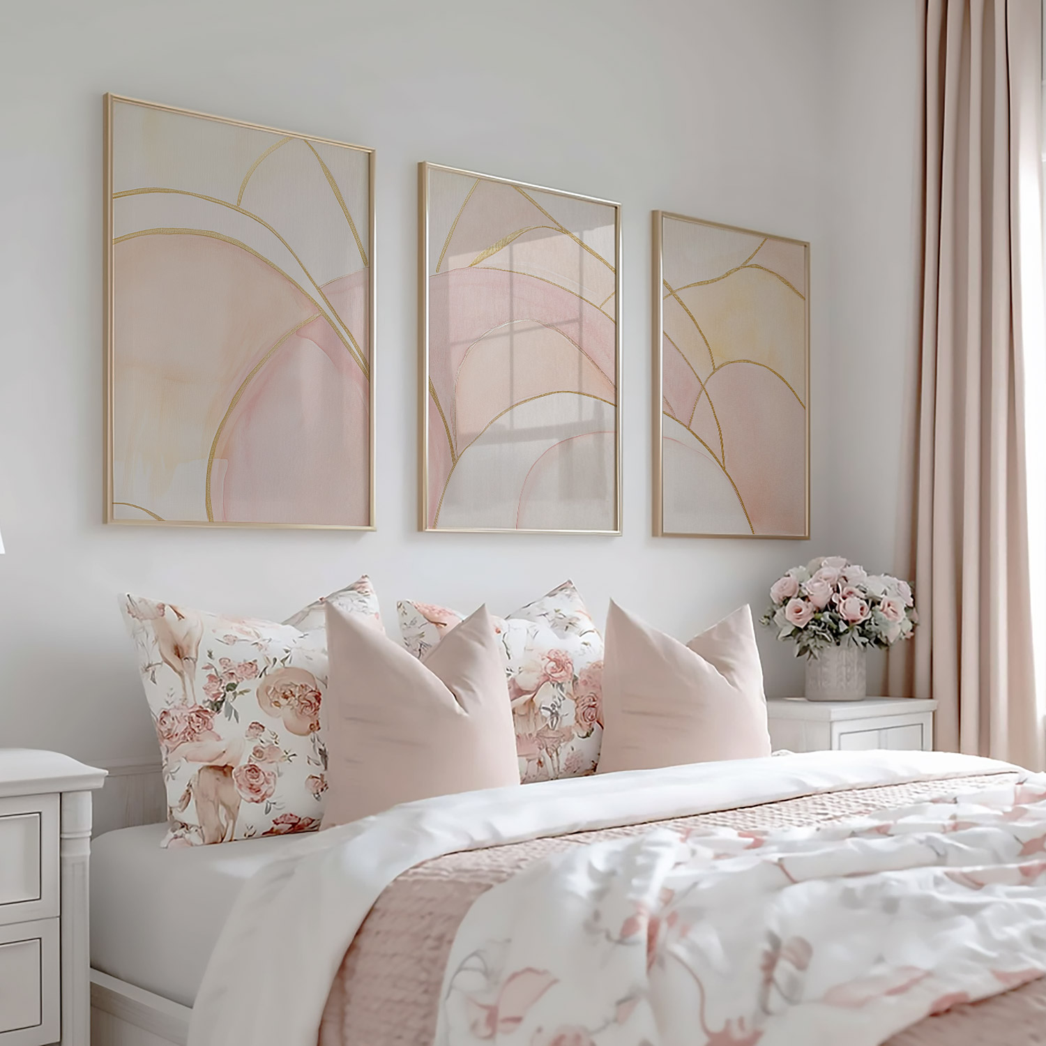Pastel Roze Abstracte Wanddecoratie met Speelse Vormen