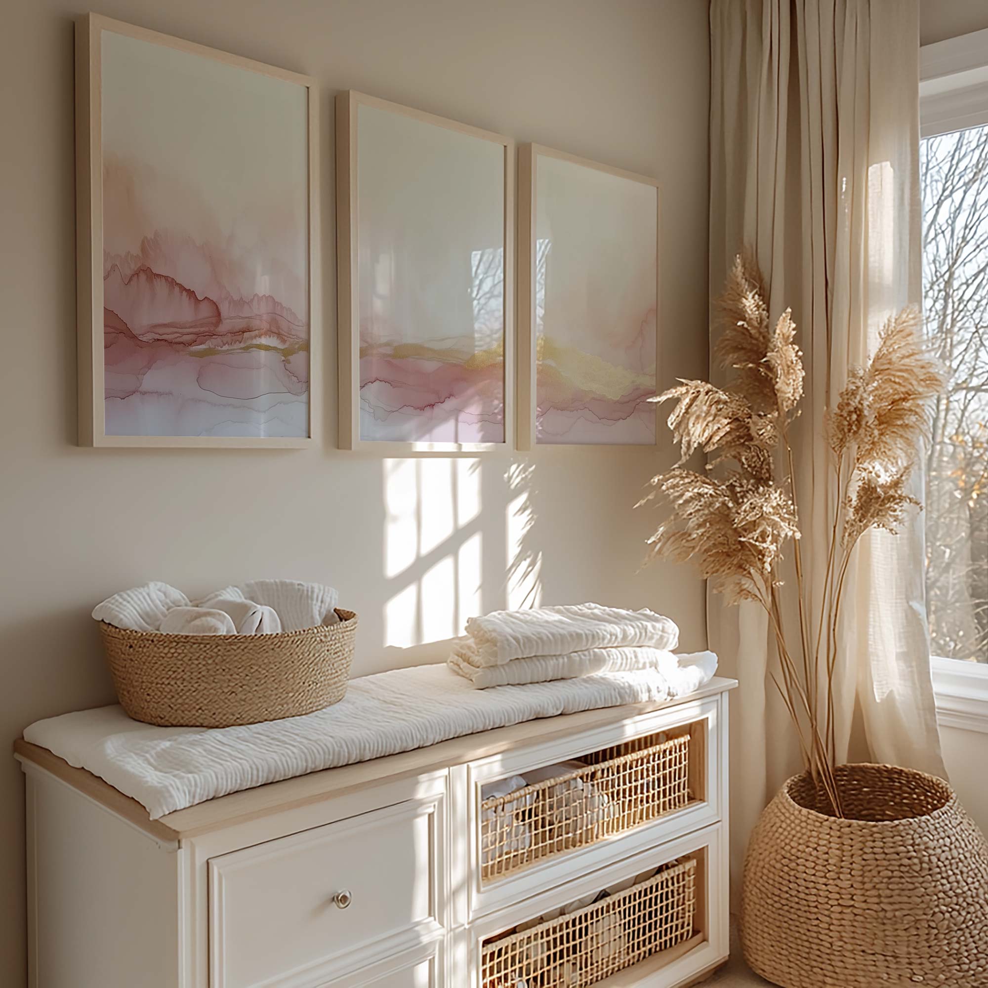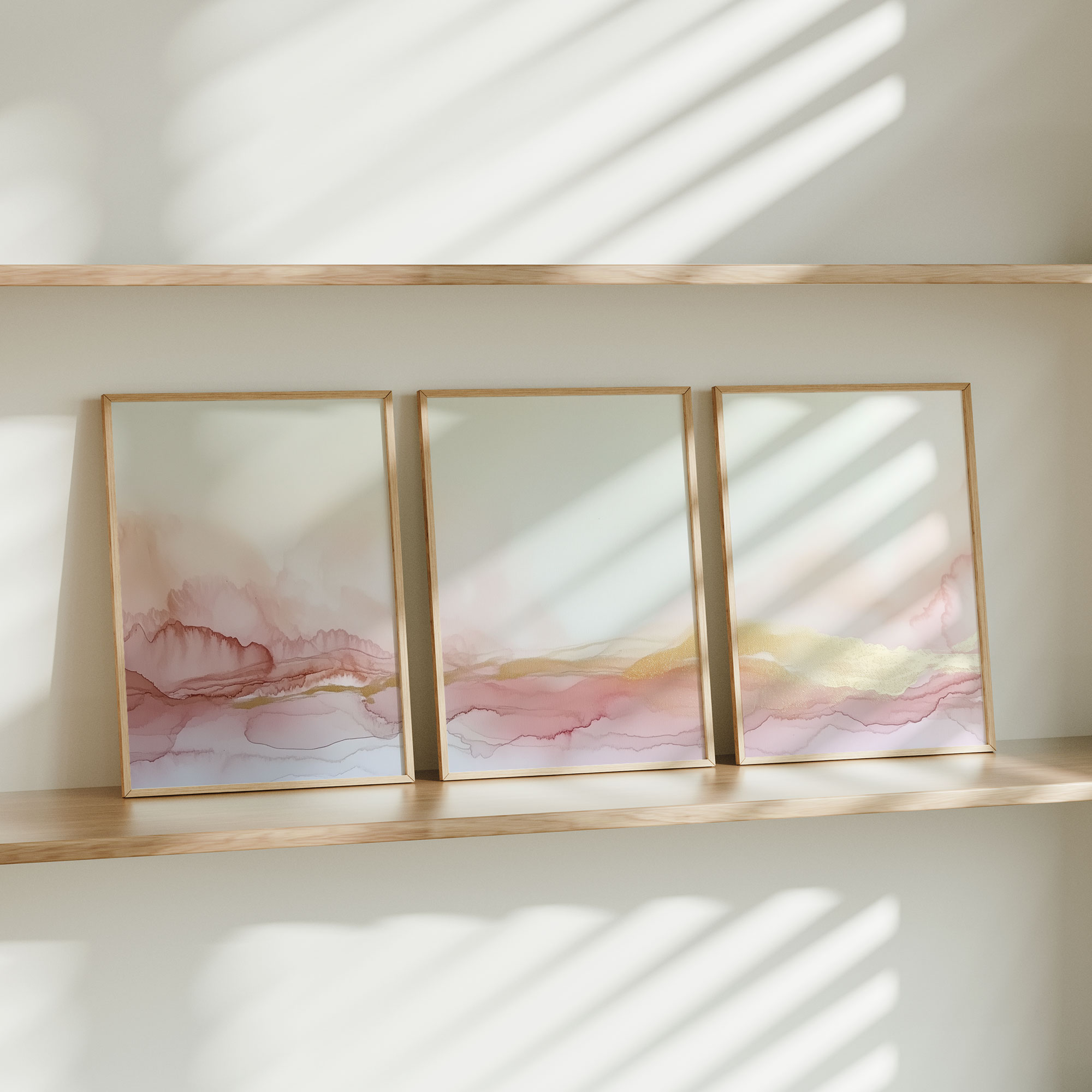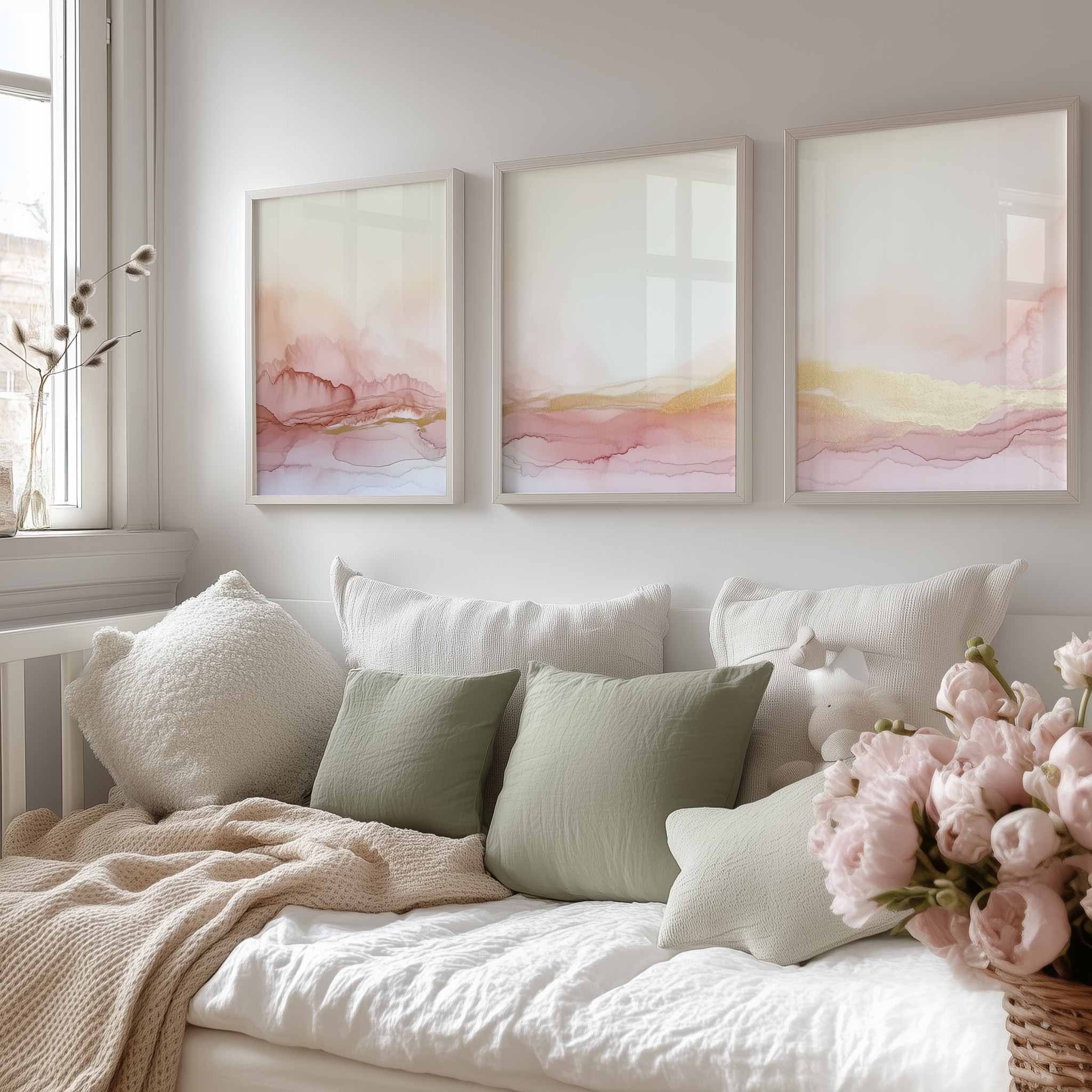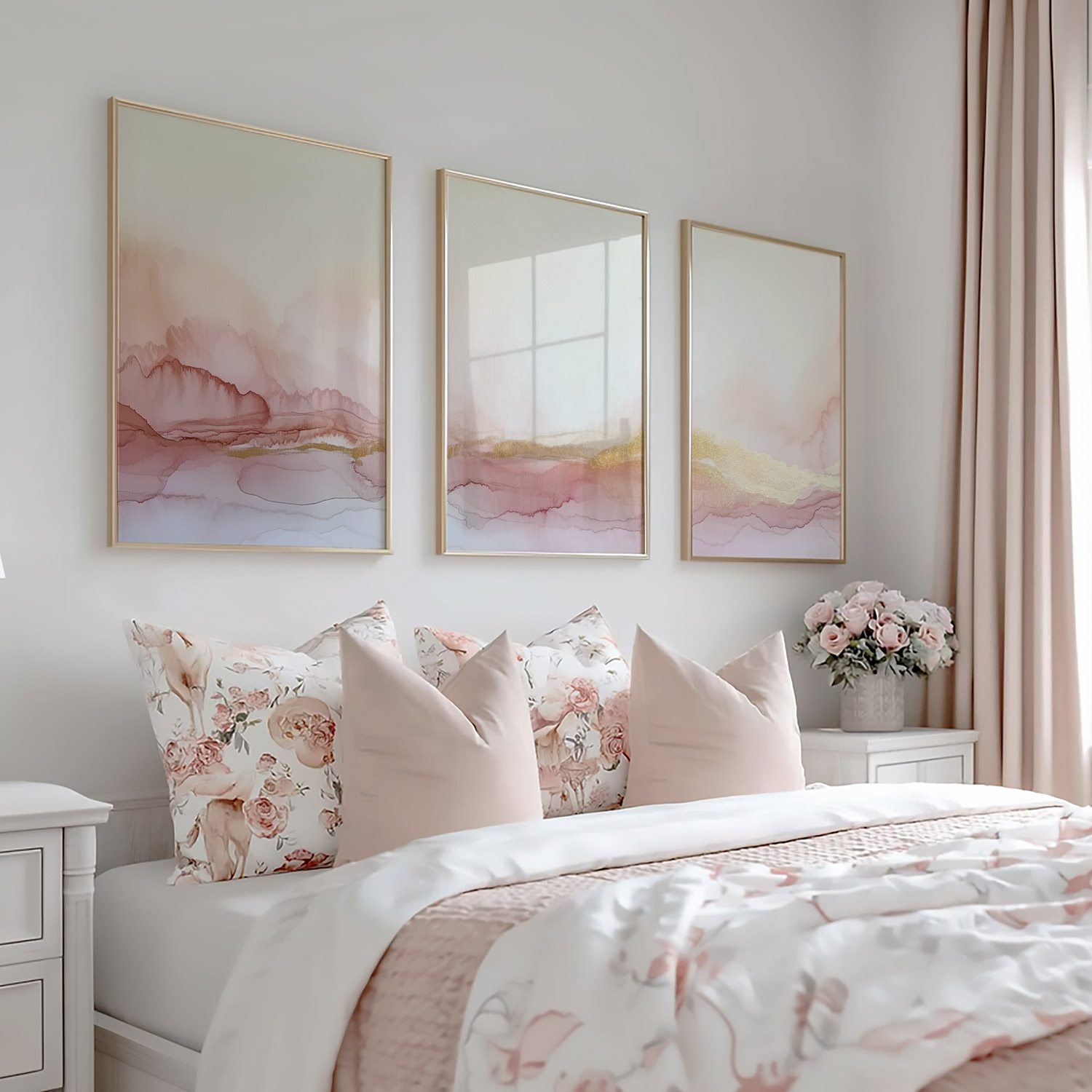 Pastel Roze Abstracte Waterverf – Elegante & Serene Wanddecoratie