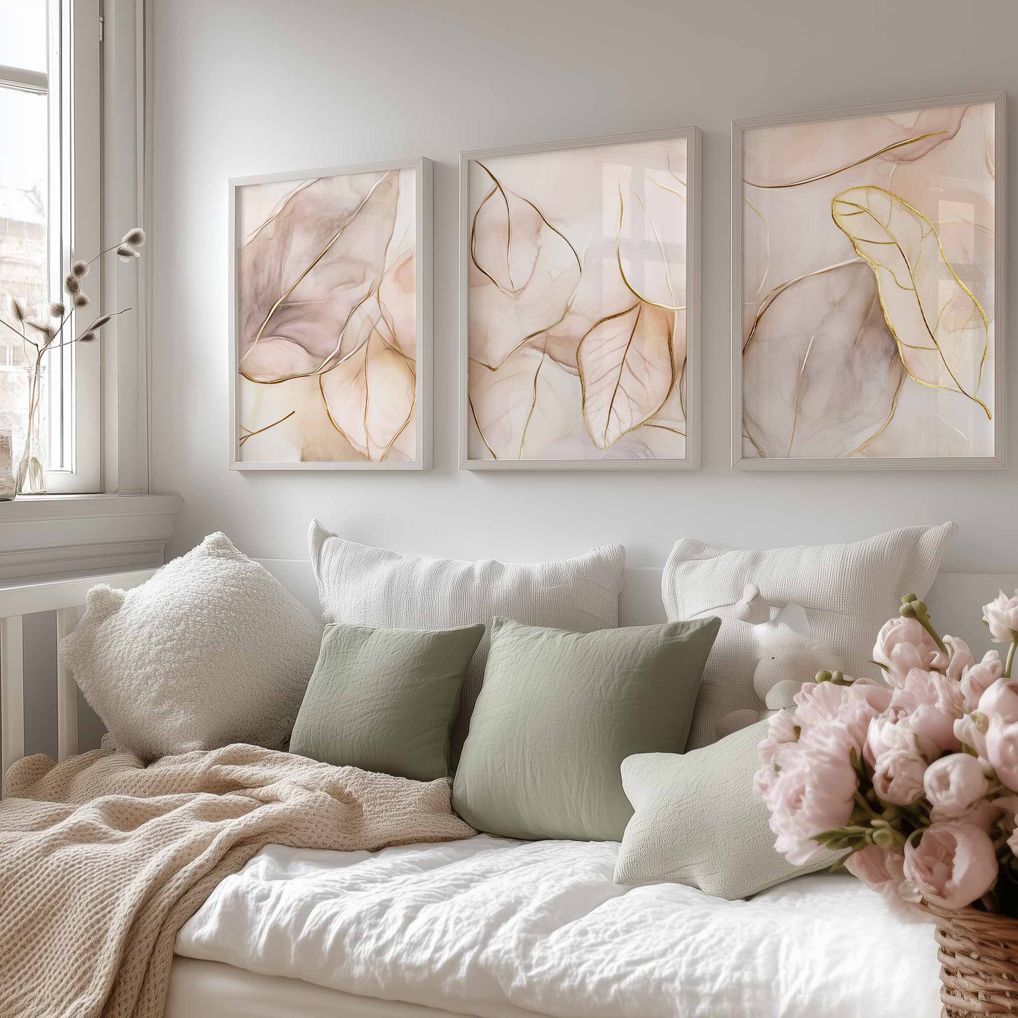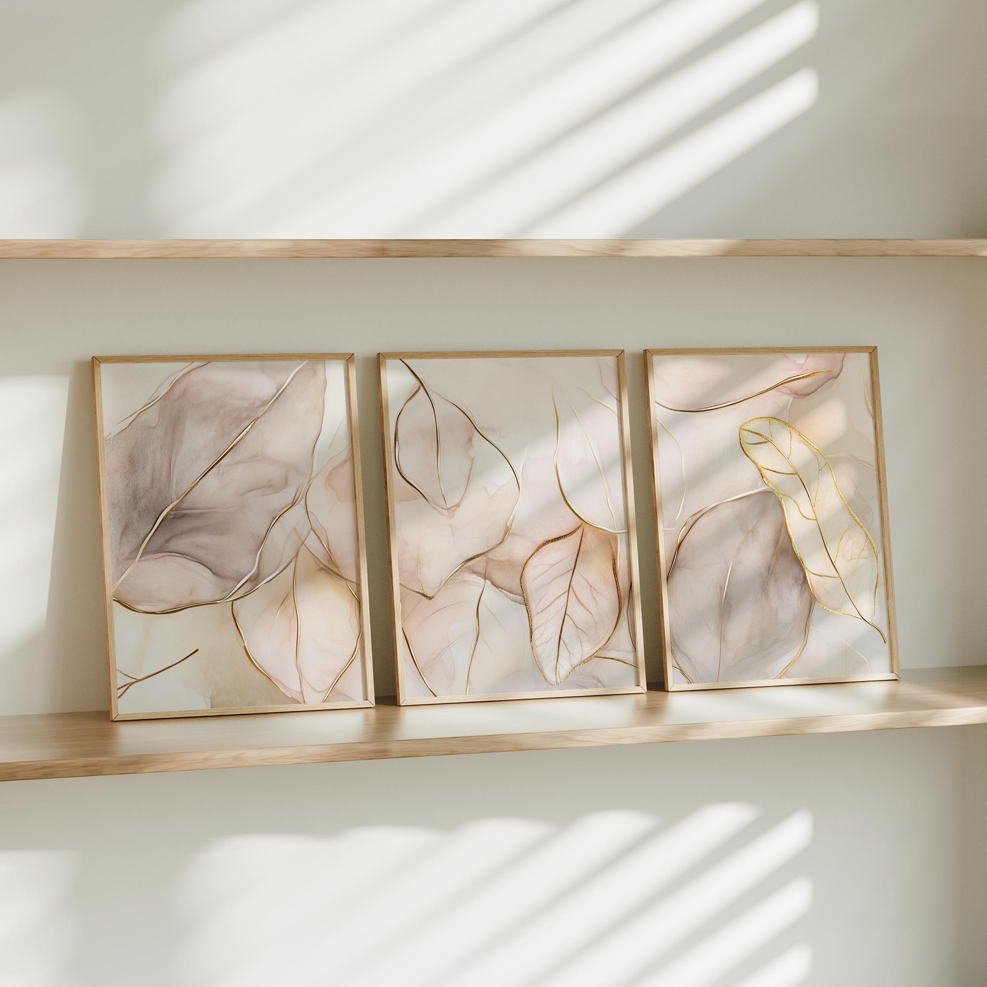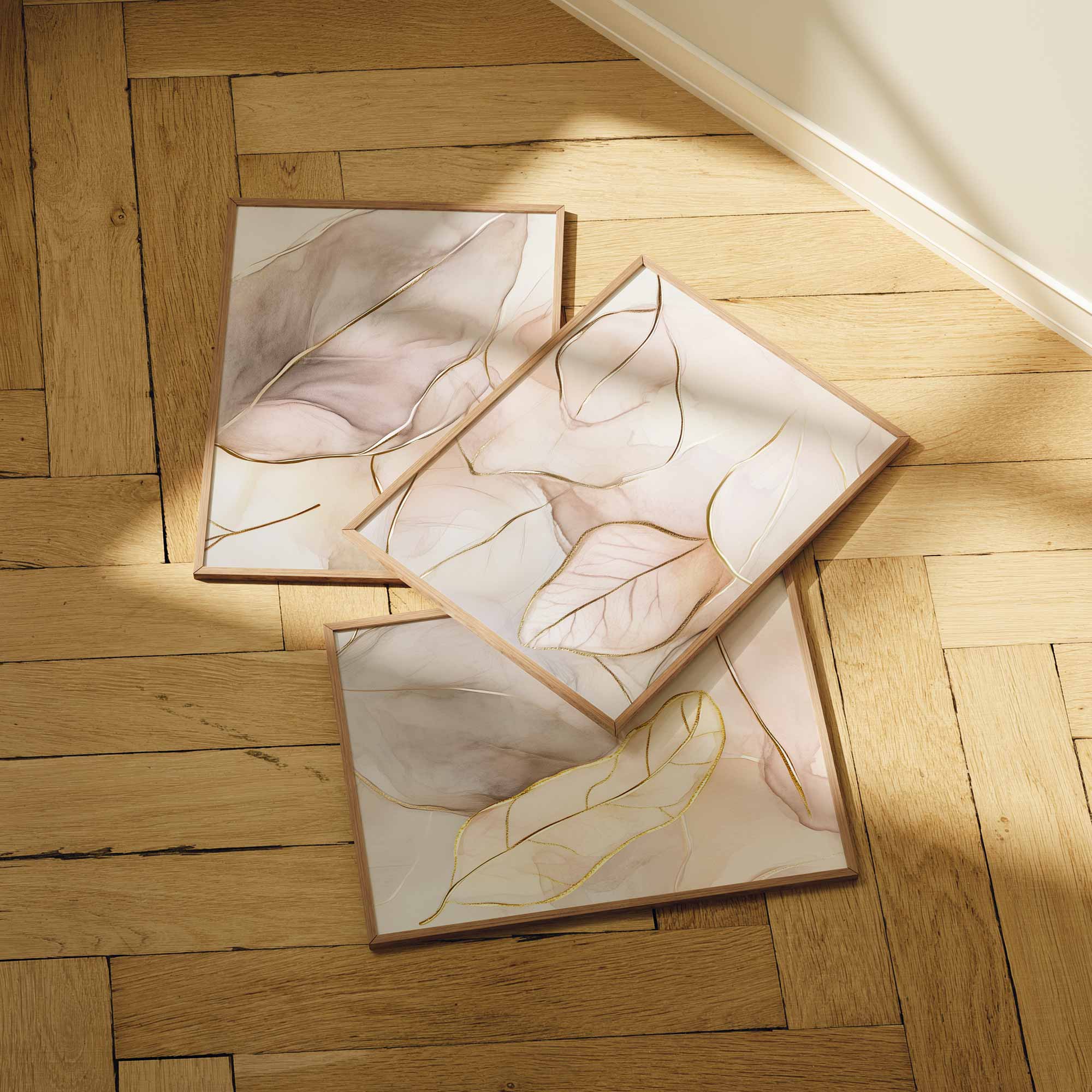Pastel Roze Bladeren – Elegante en Serene Wanddecoratie