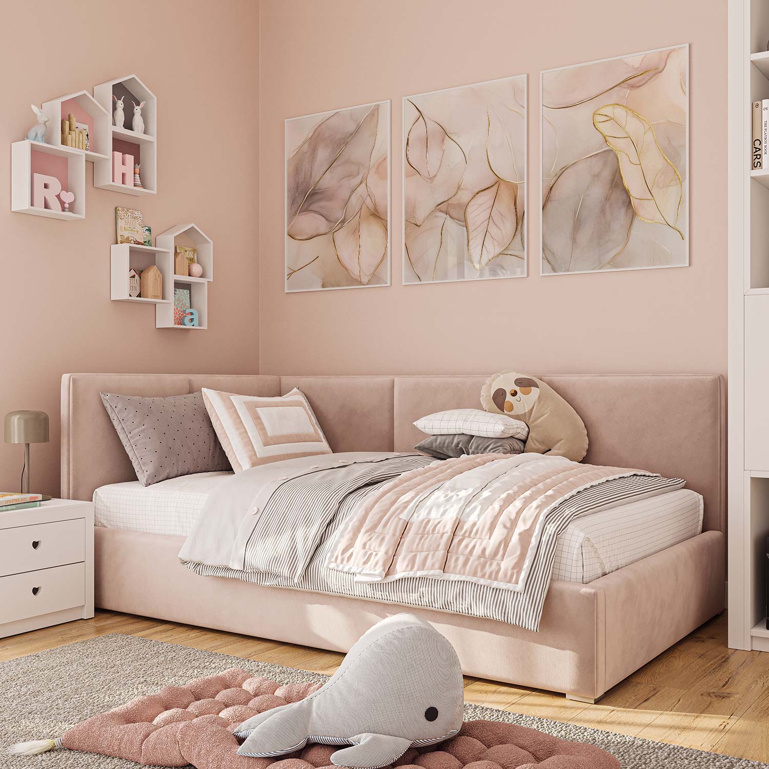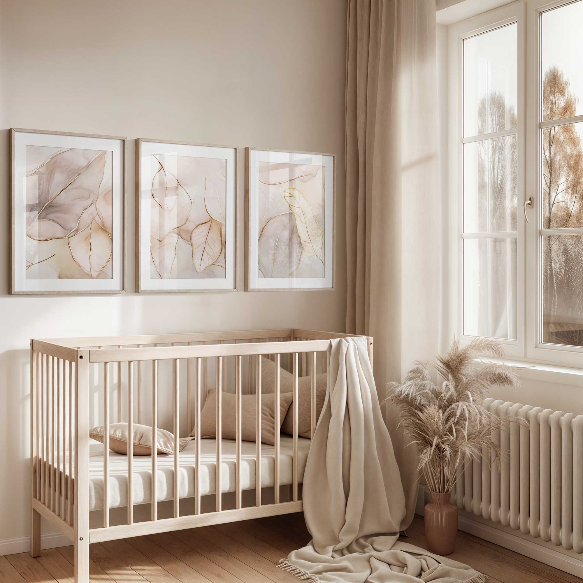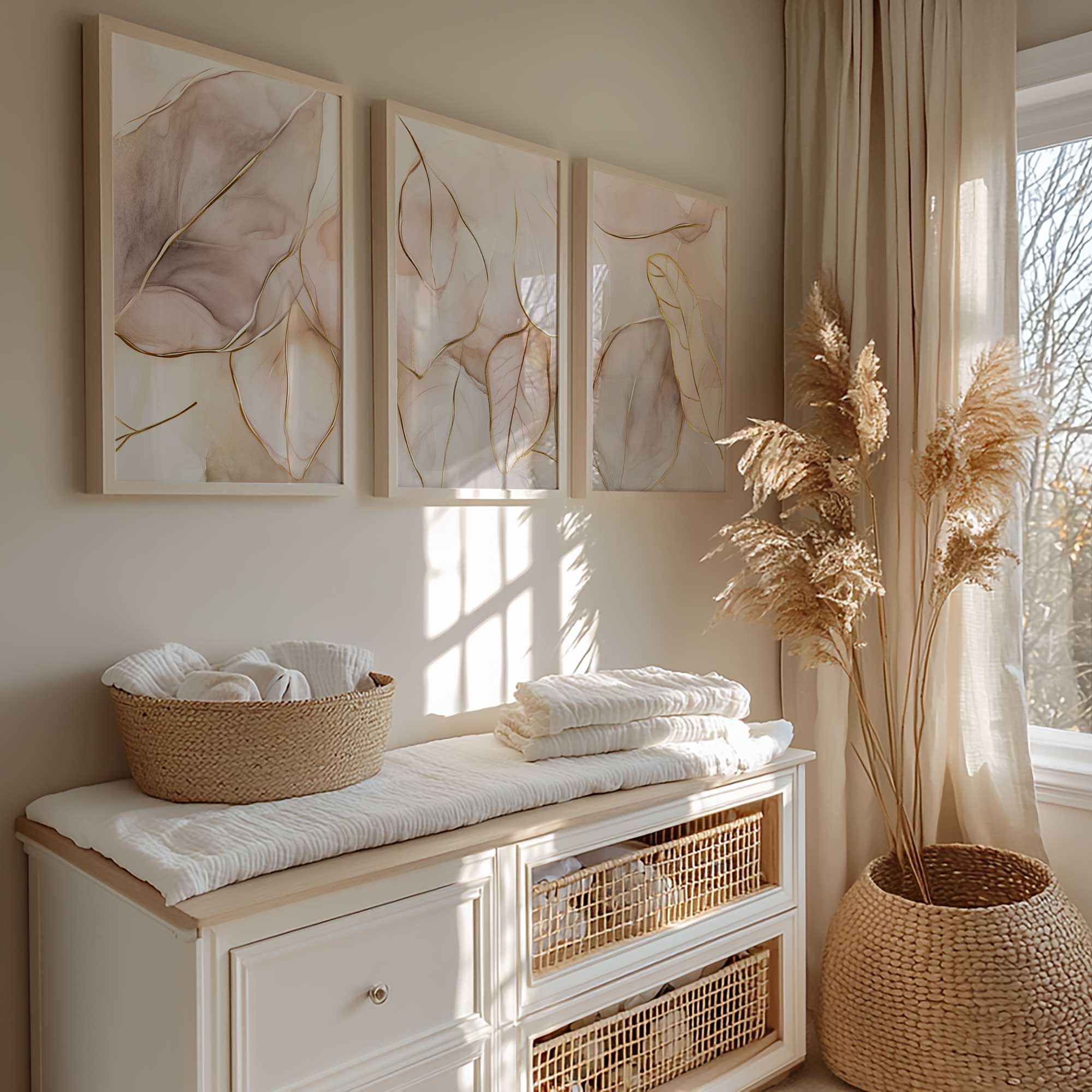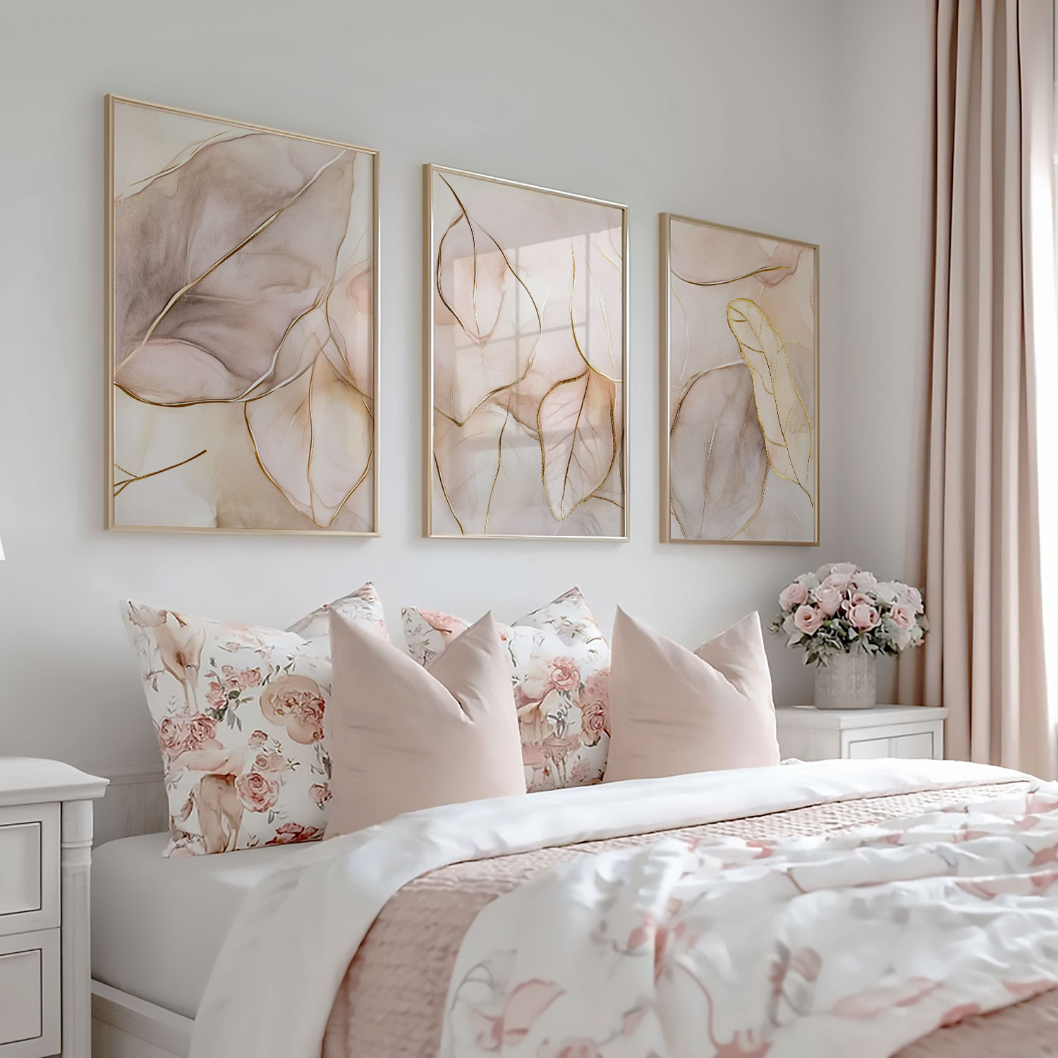 Pastel Roze Bladeren – Elegante en Serene Wanddecoratie