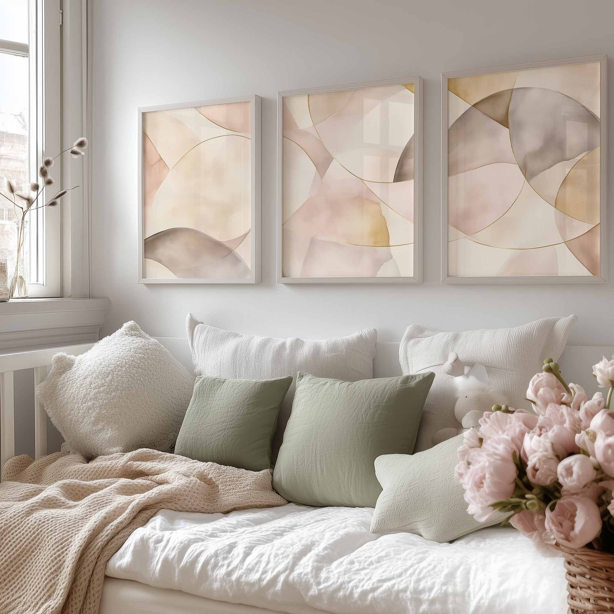 Pastel Roze Cirkels – Speelse Abstracte Wanddecoratie