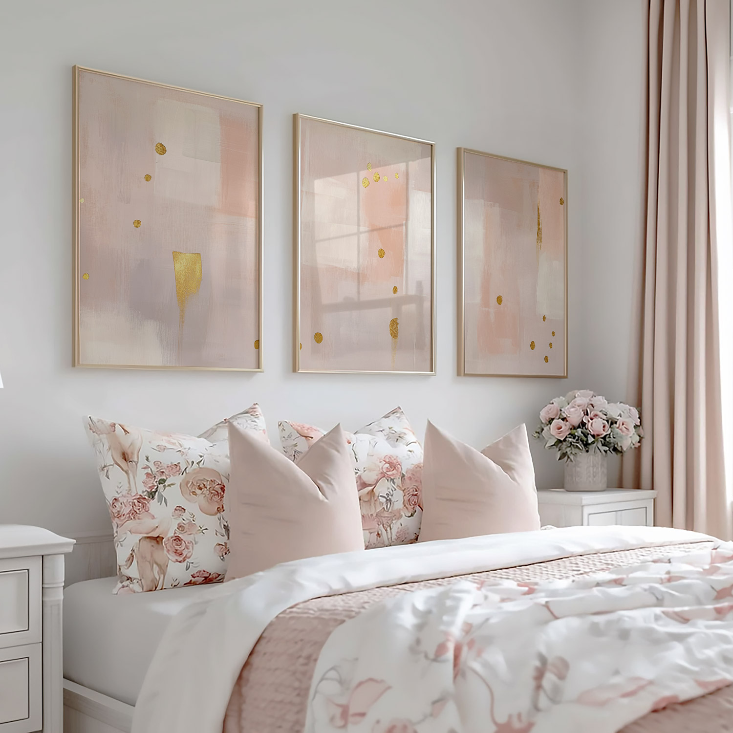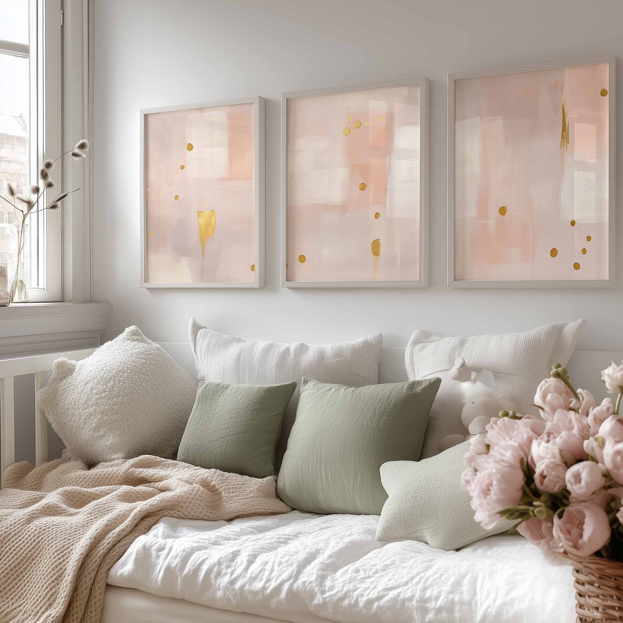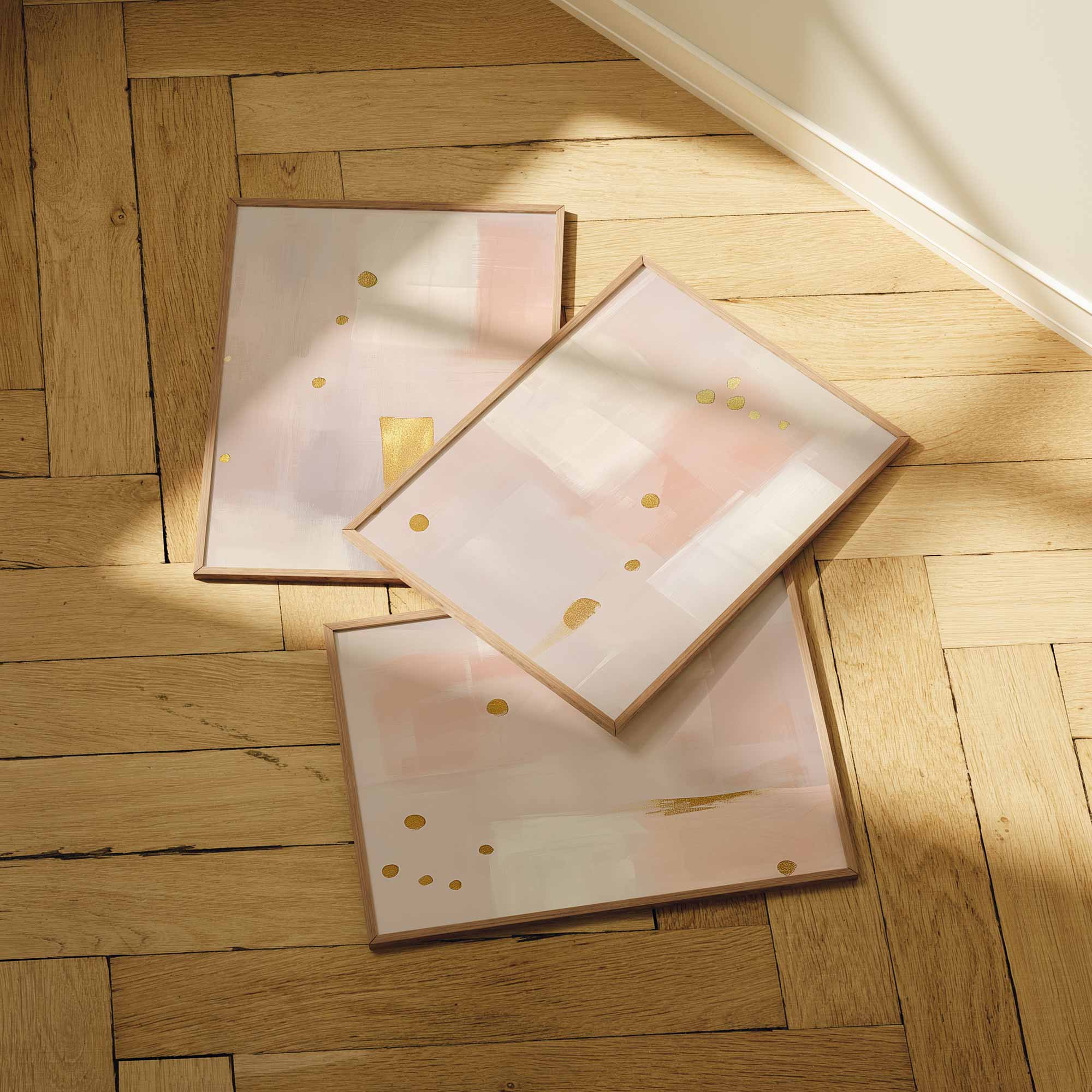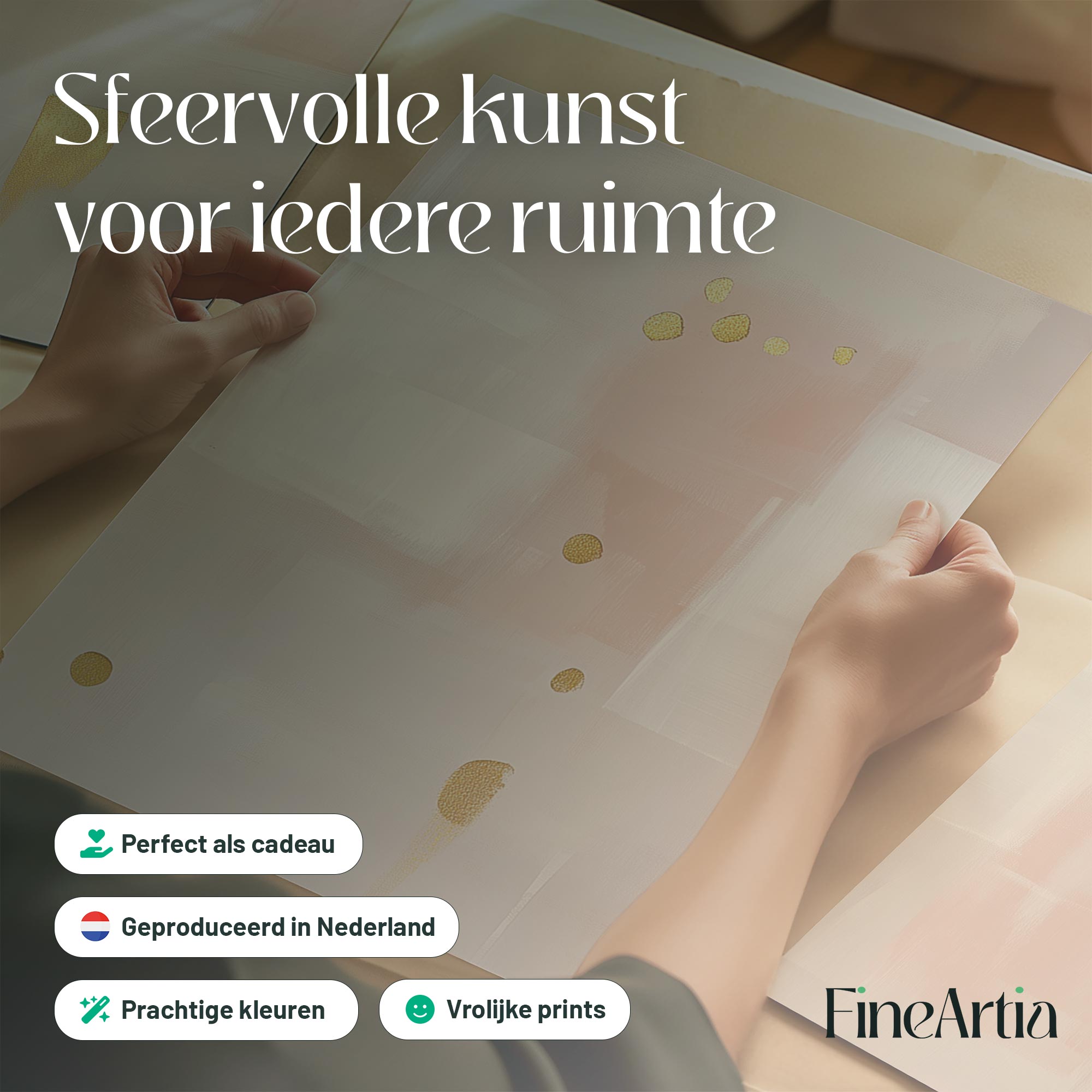Pastel Roze Droom met Gouden Stippen – Abstracte Sereniteit