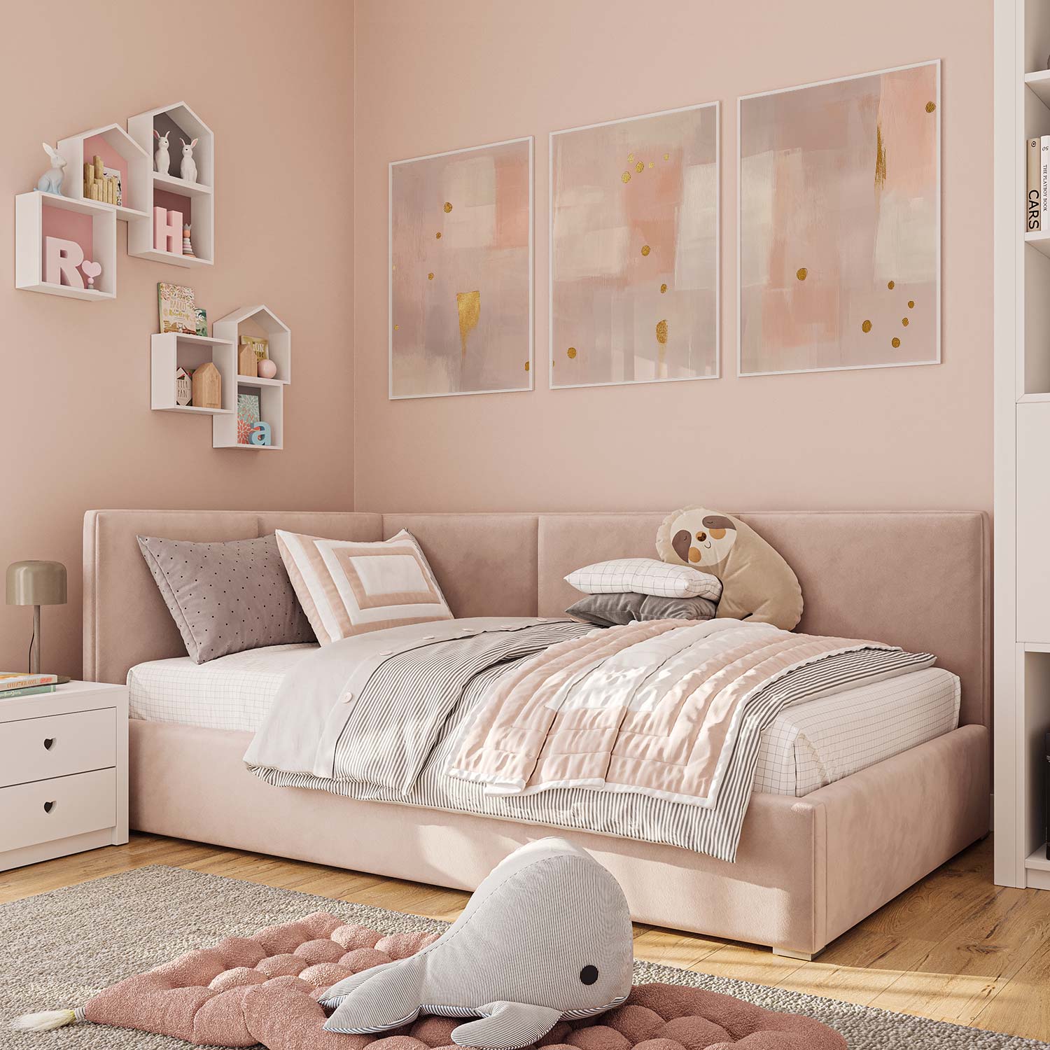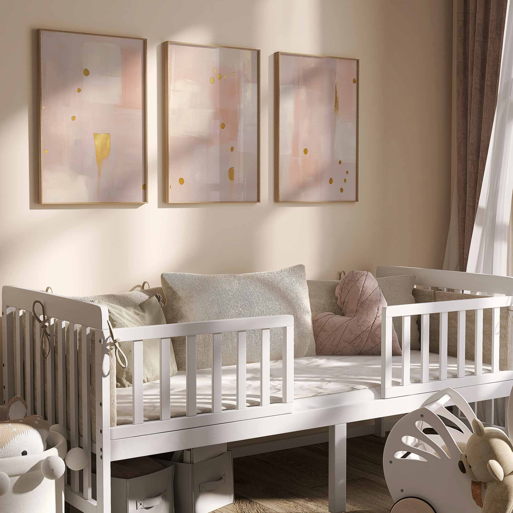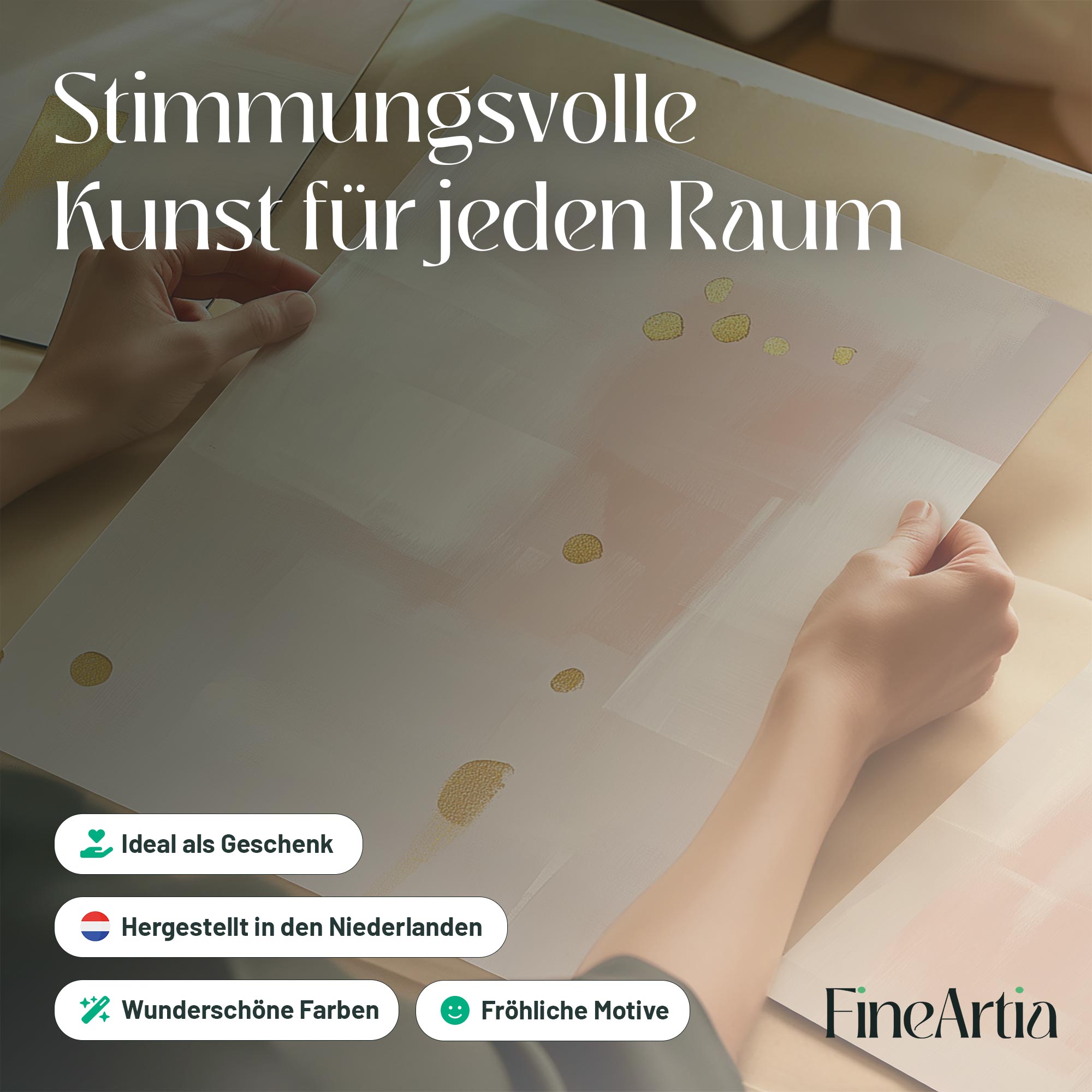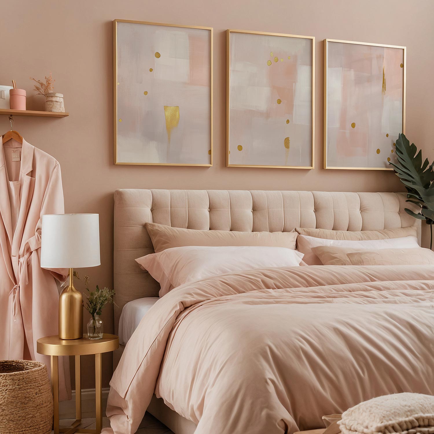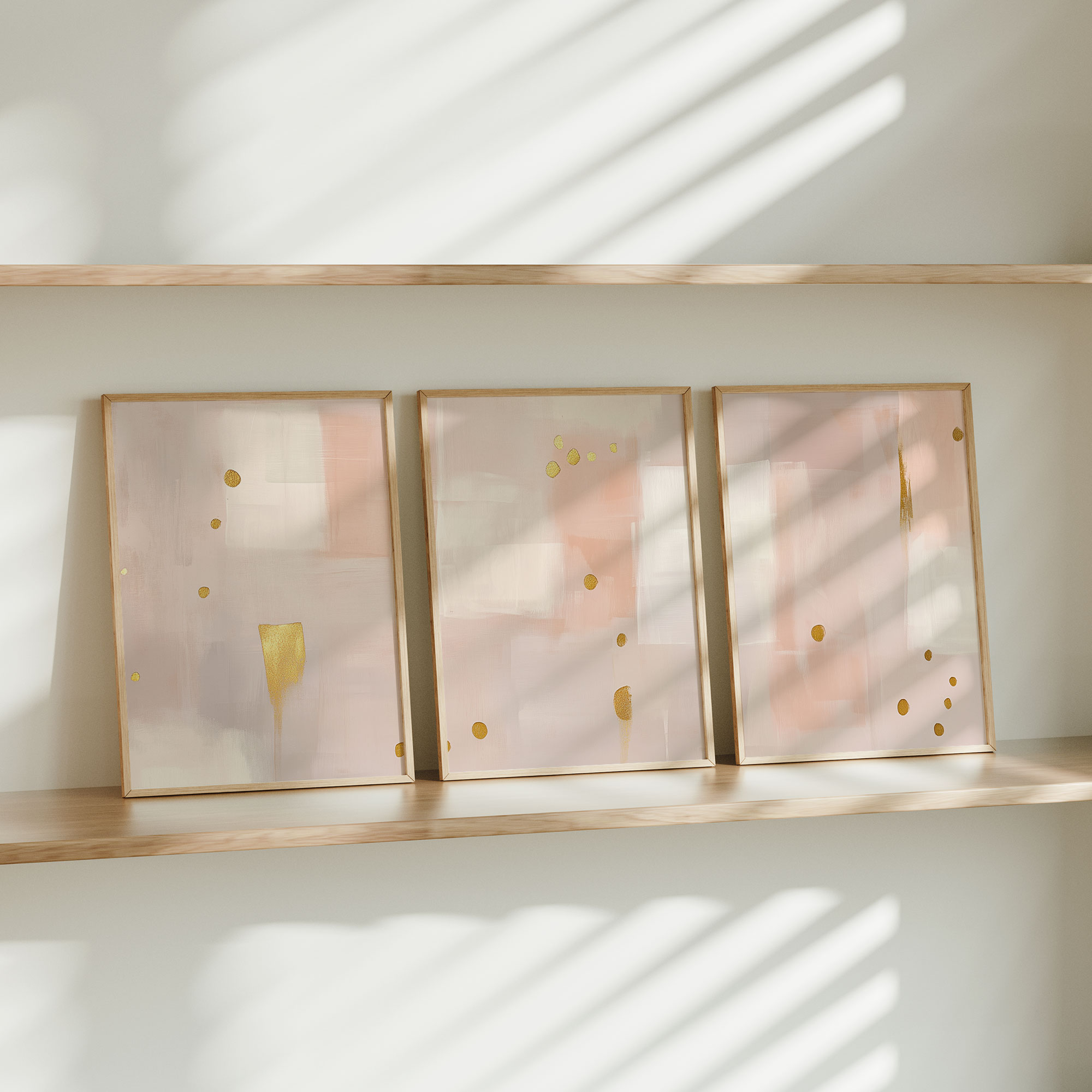 Pastel Roze Droom met Gouden Stippen – Abstracte Sereniteit