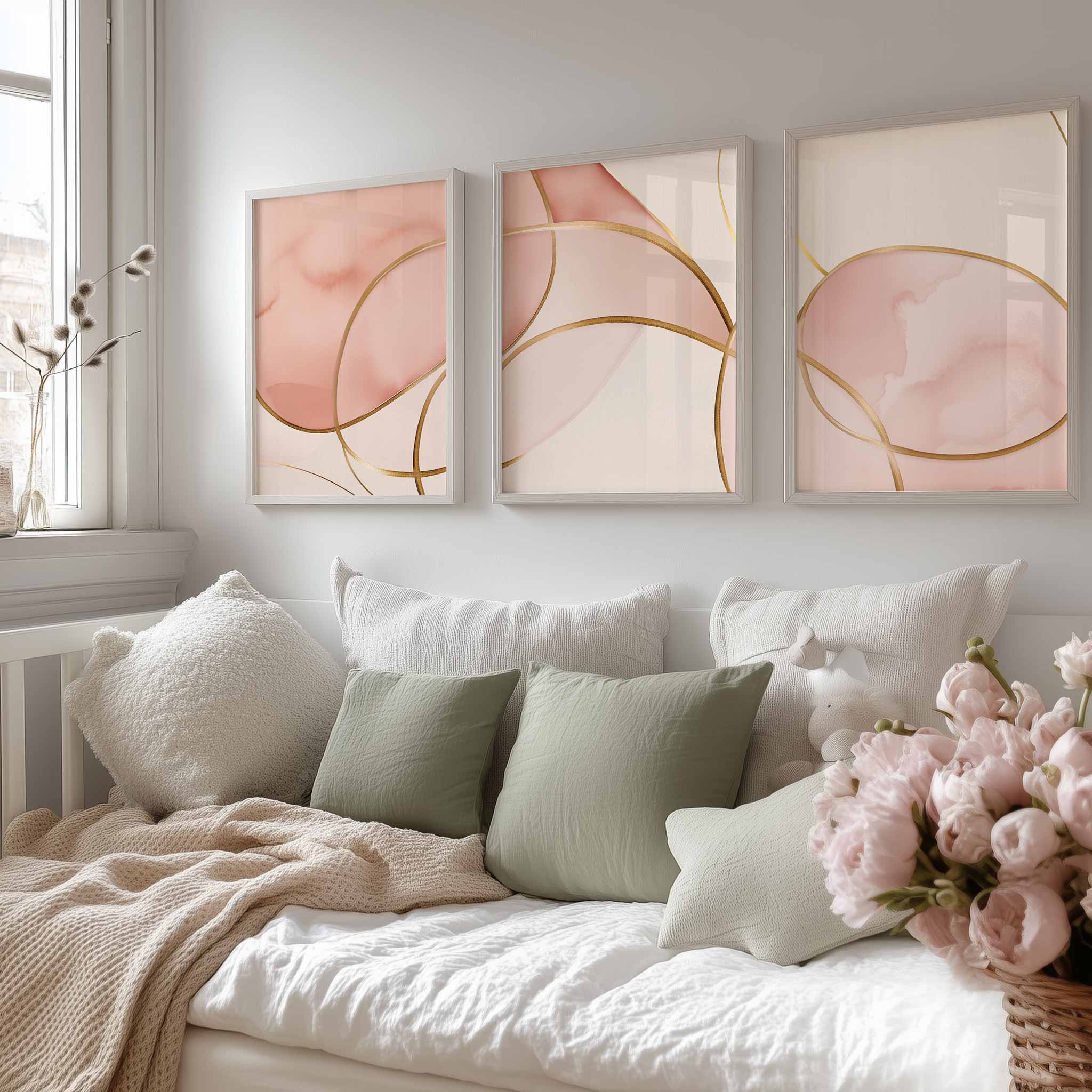 Pastel Roze Droom: Speelse Lijnen & Gouden Elegantie