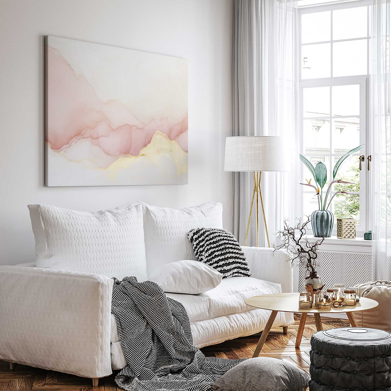 Pastel Roze Gele Abstracte Kunst