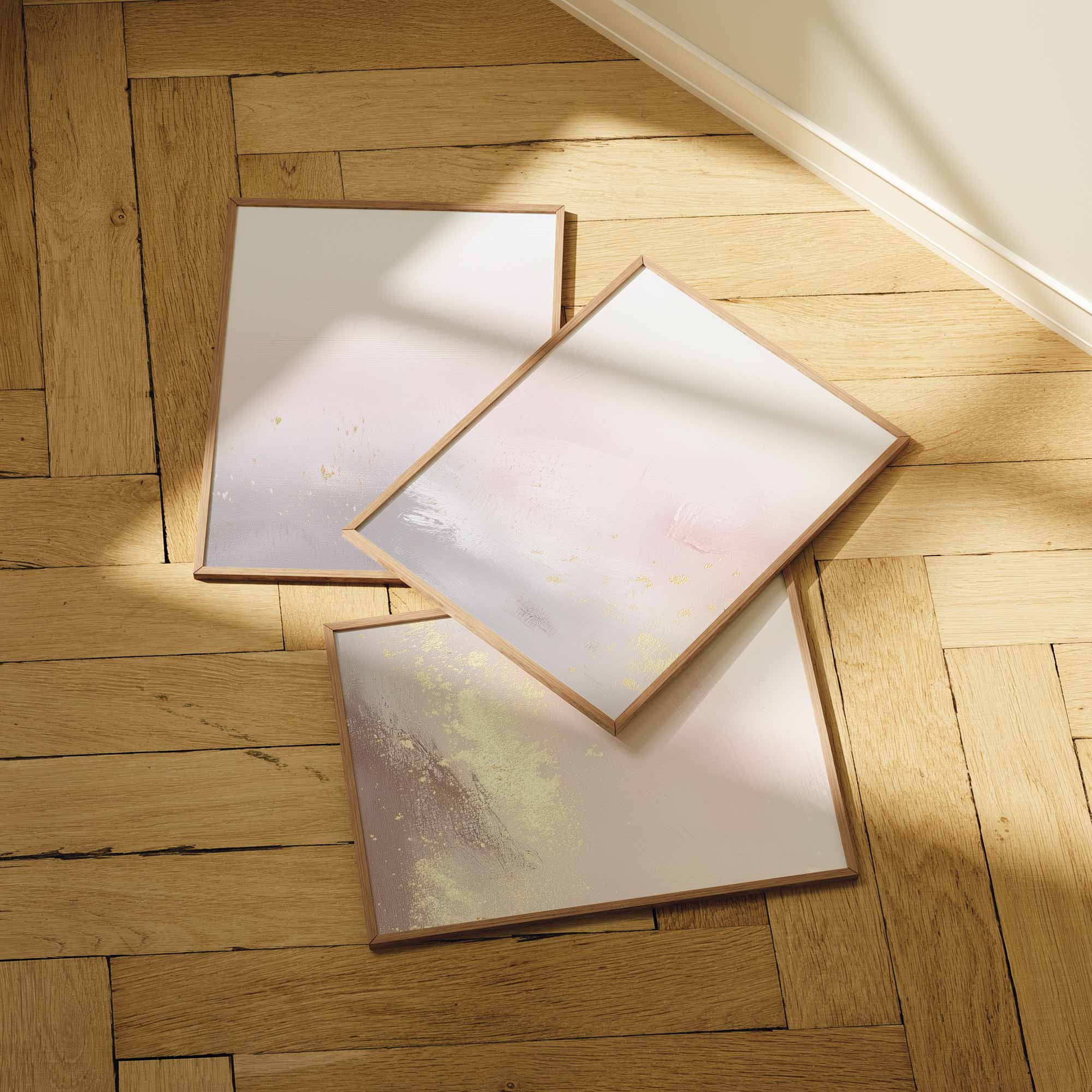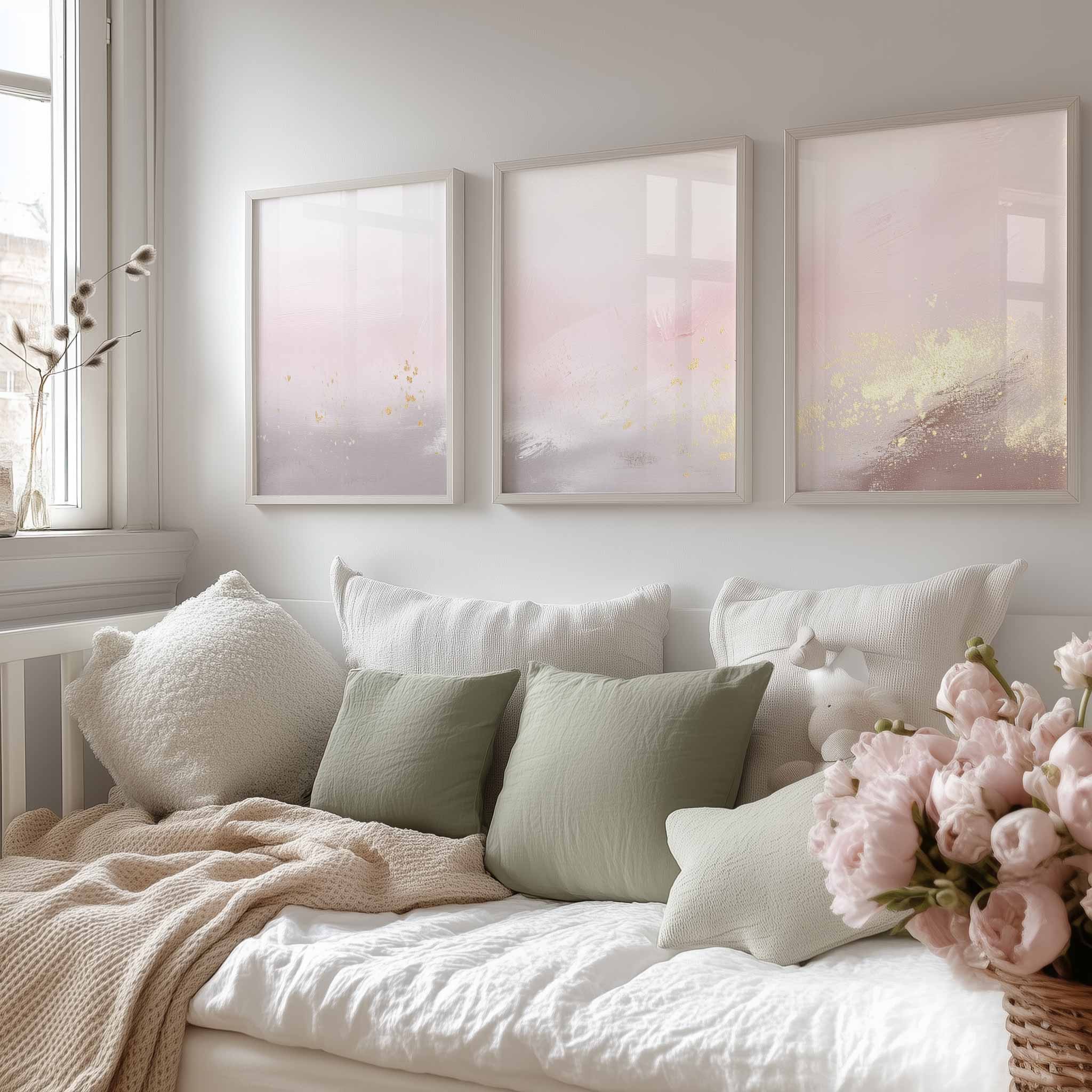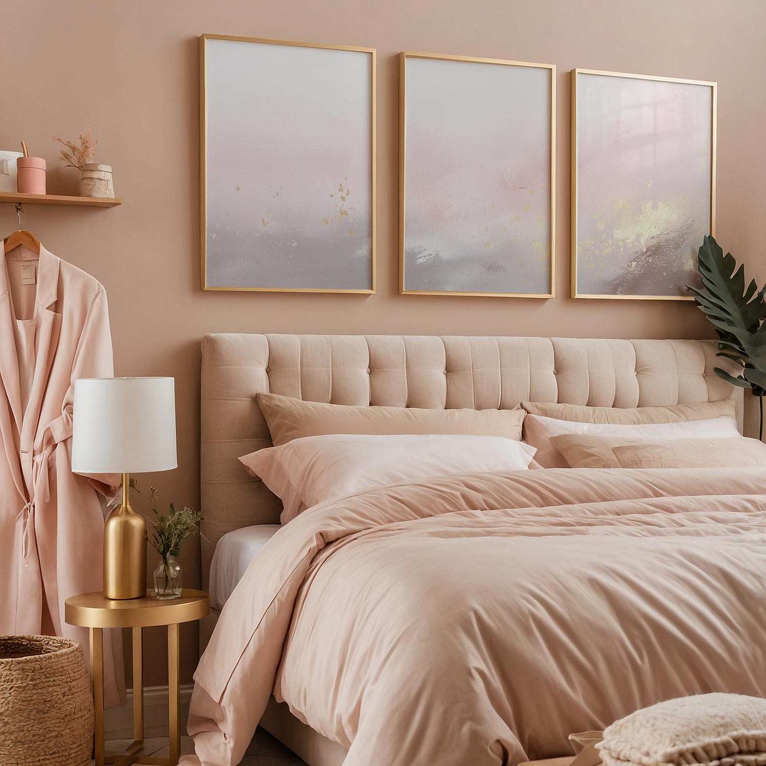 Pastel Roze & Goud Droom – Stijlvolle, Rustgevende Wanddecoratie