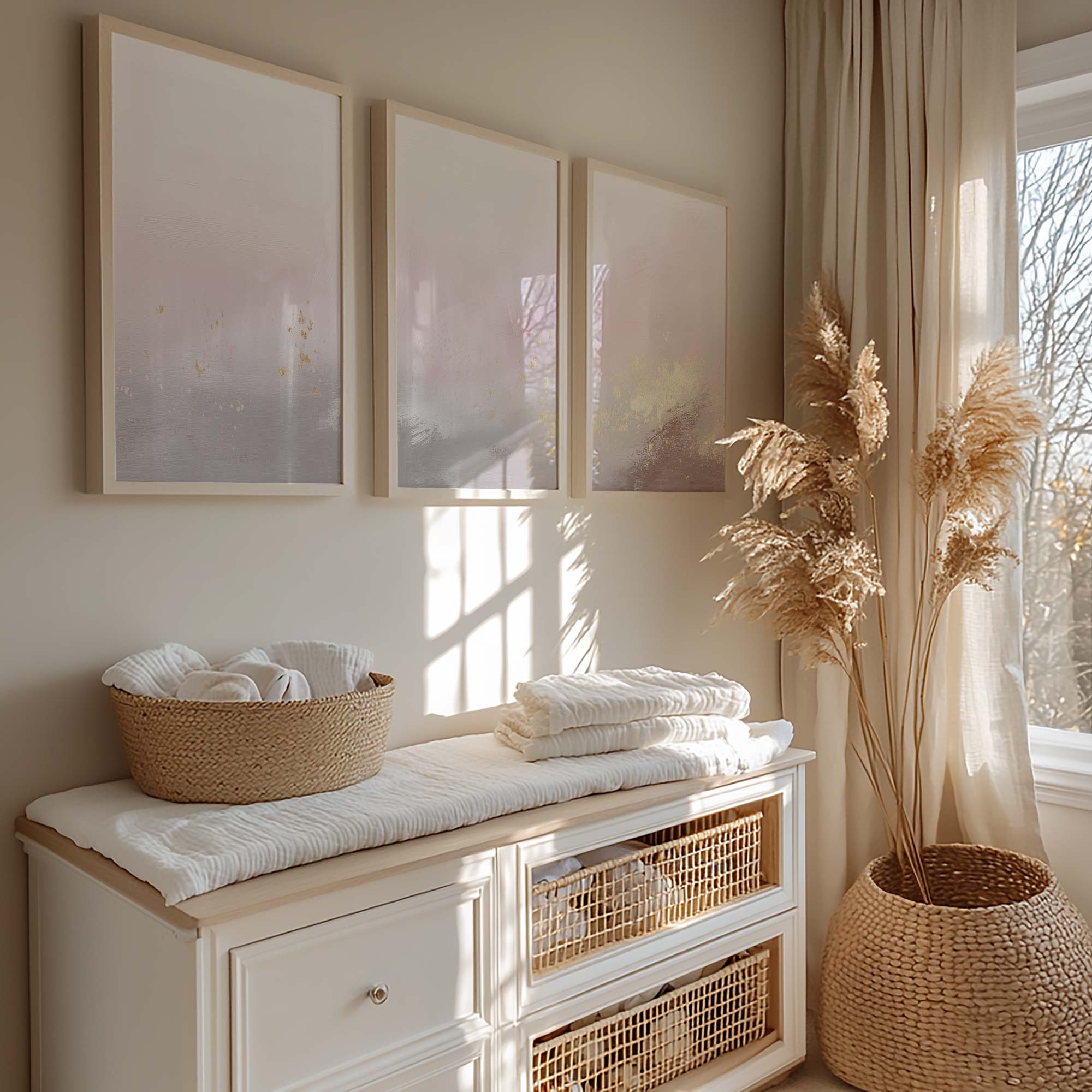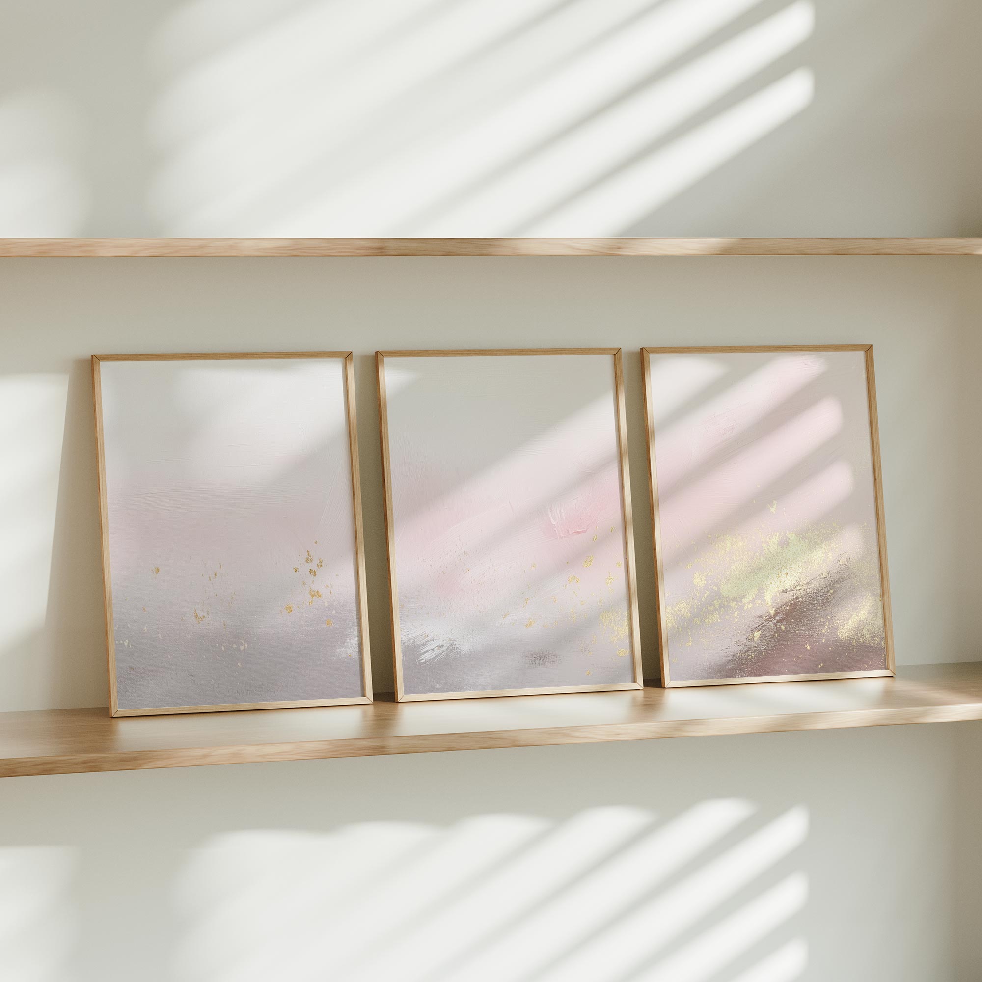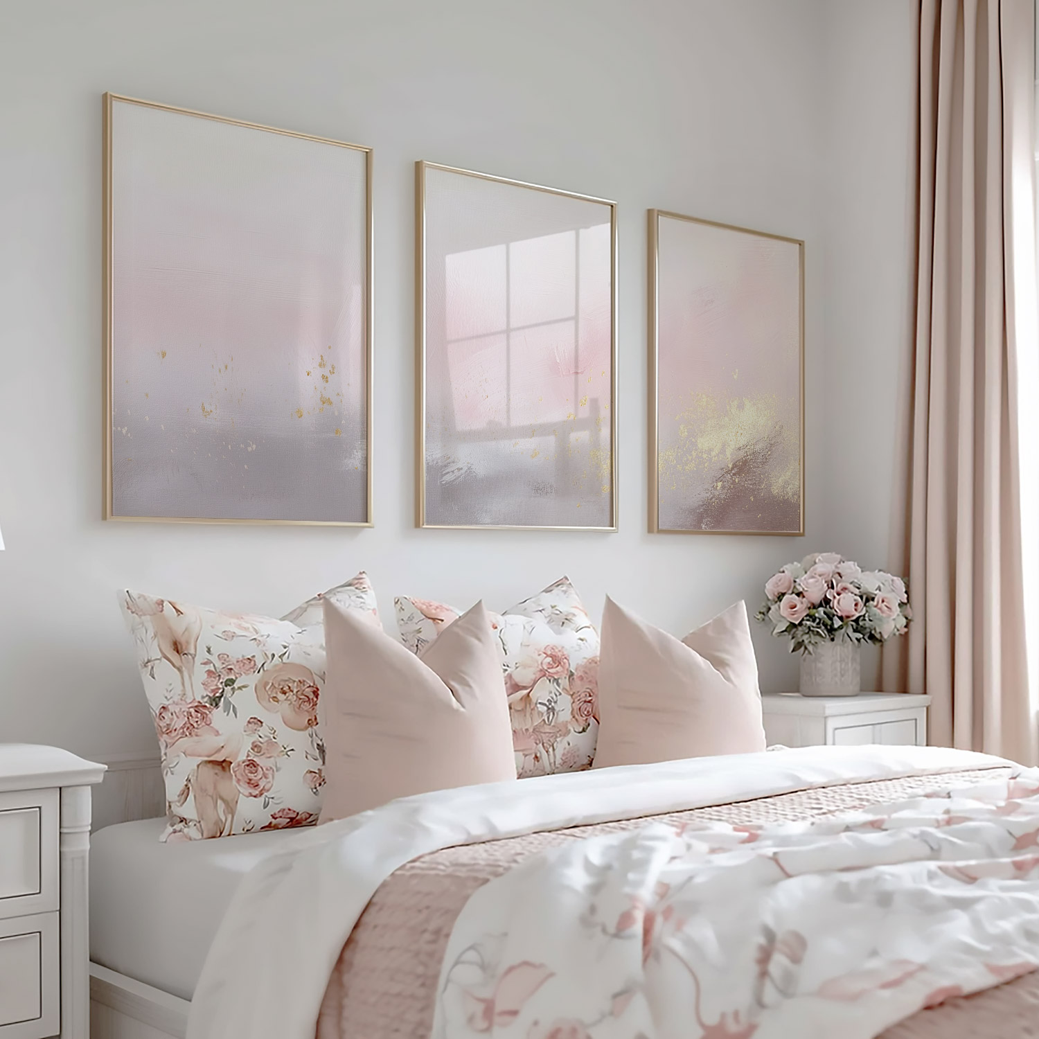 Pastel Roze & Goud Droom – Stijlvolle, Rustgevende Wanddecoratie