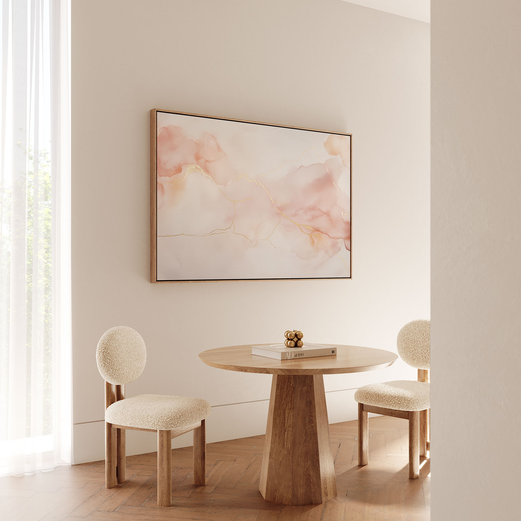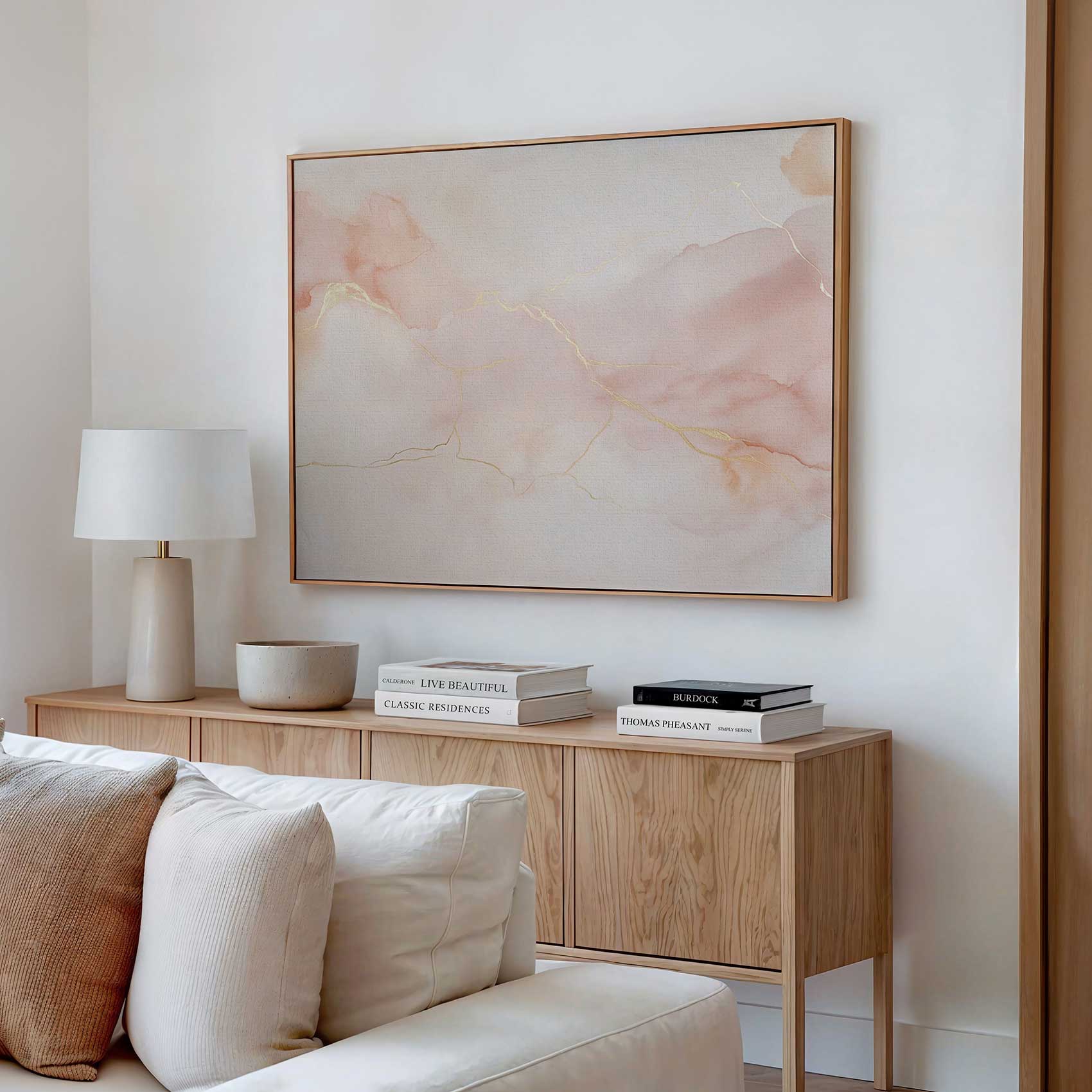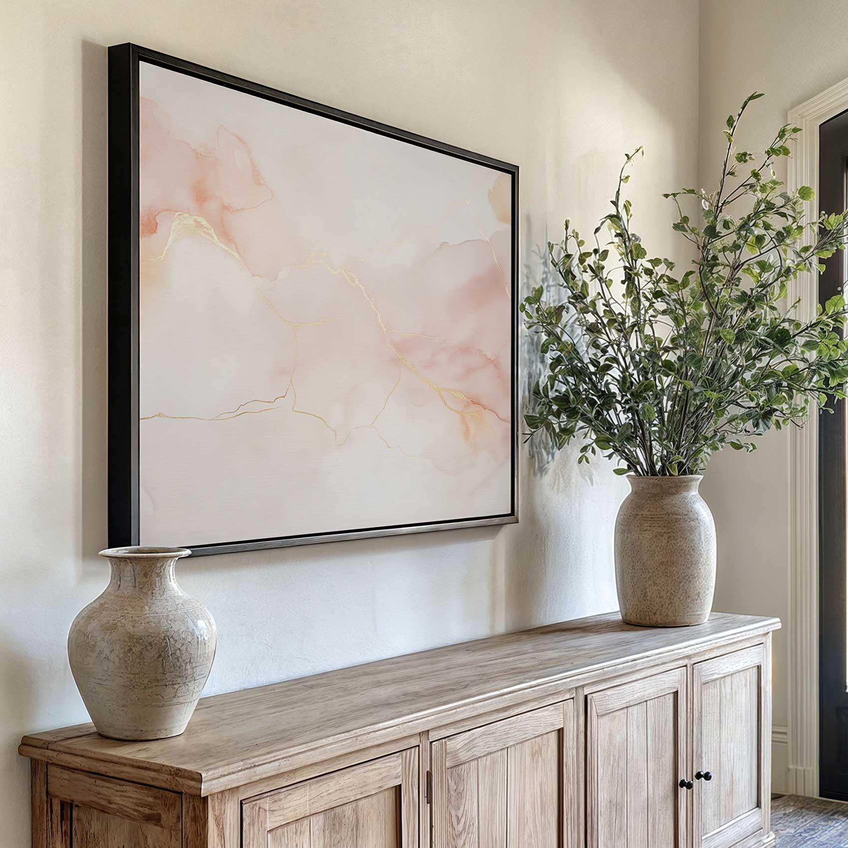 Pastel Roze Gouden Abstracte Waterverf