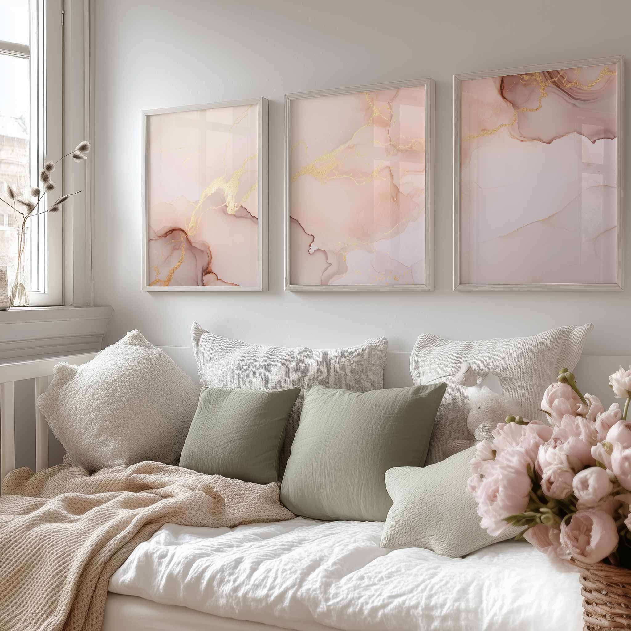 Terug naar collectie Posters Pastel Roze Marmeren Elegantie met Gouden Accenten