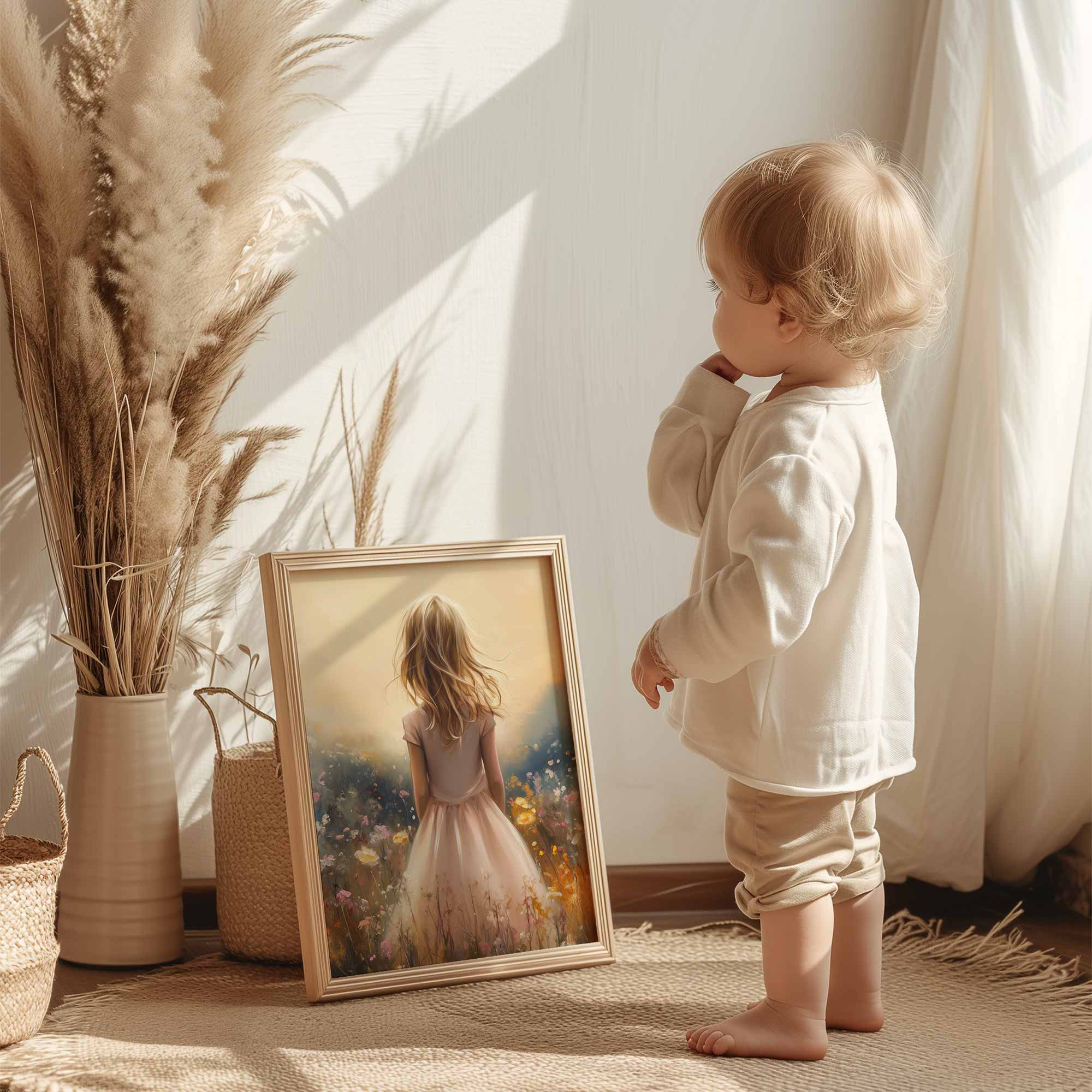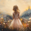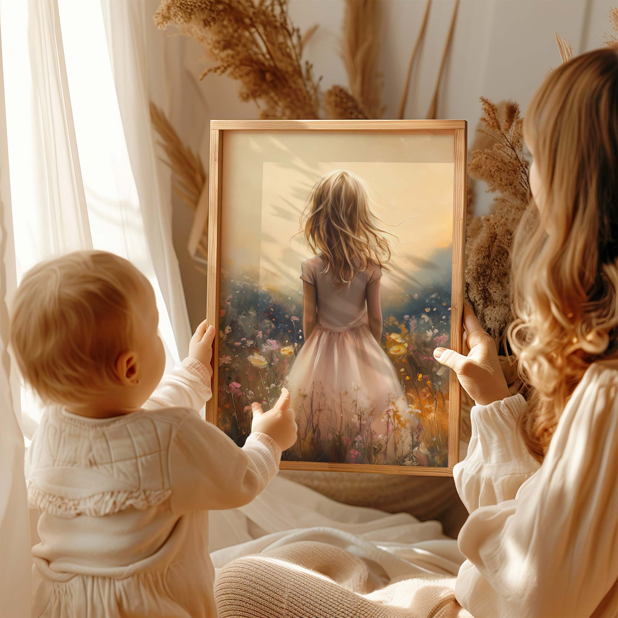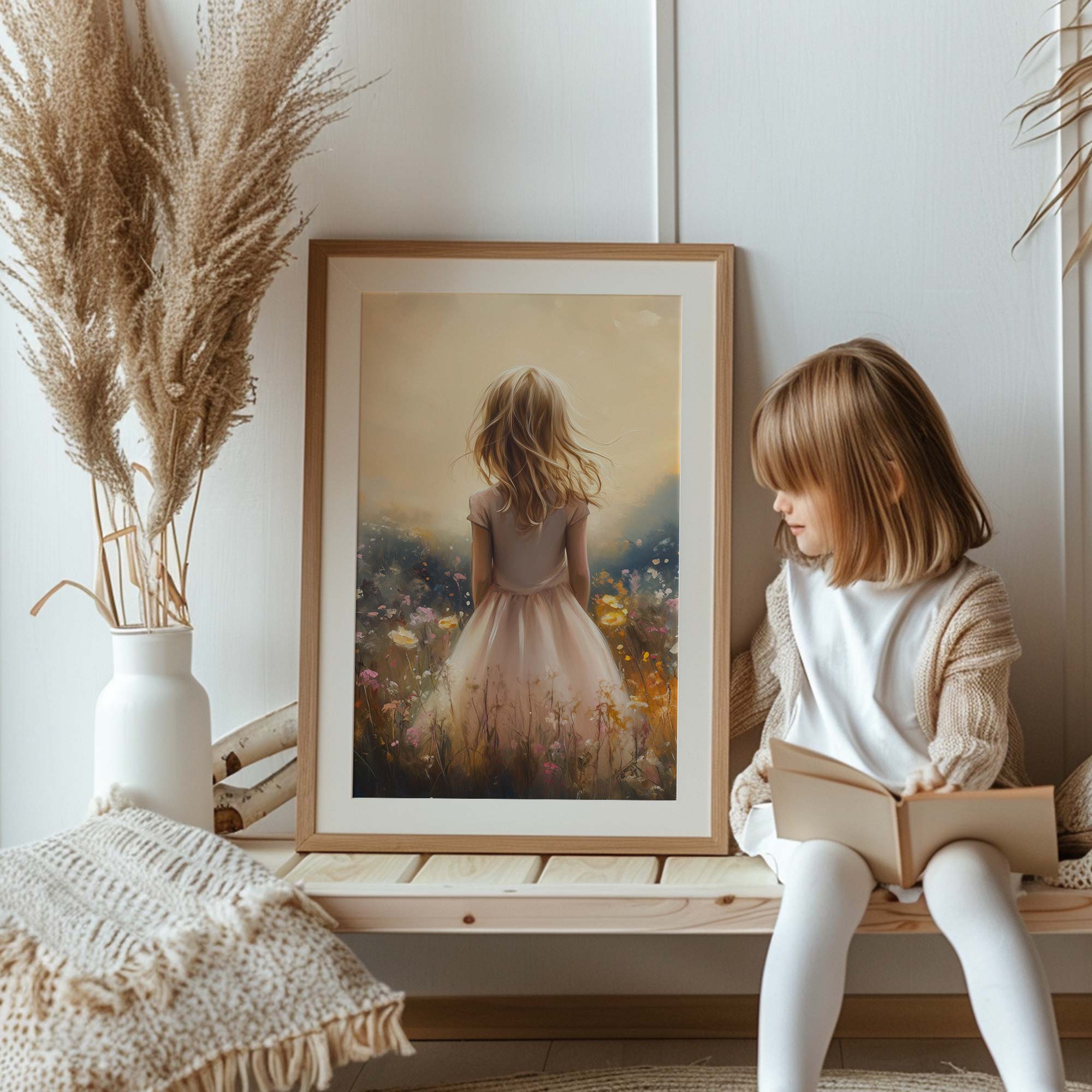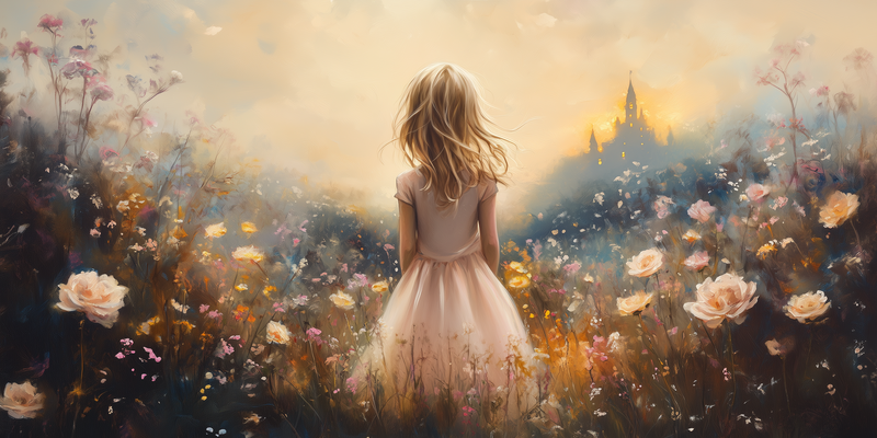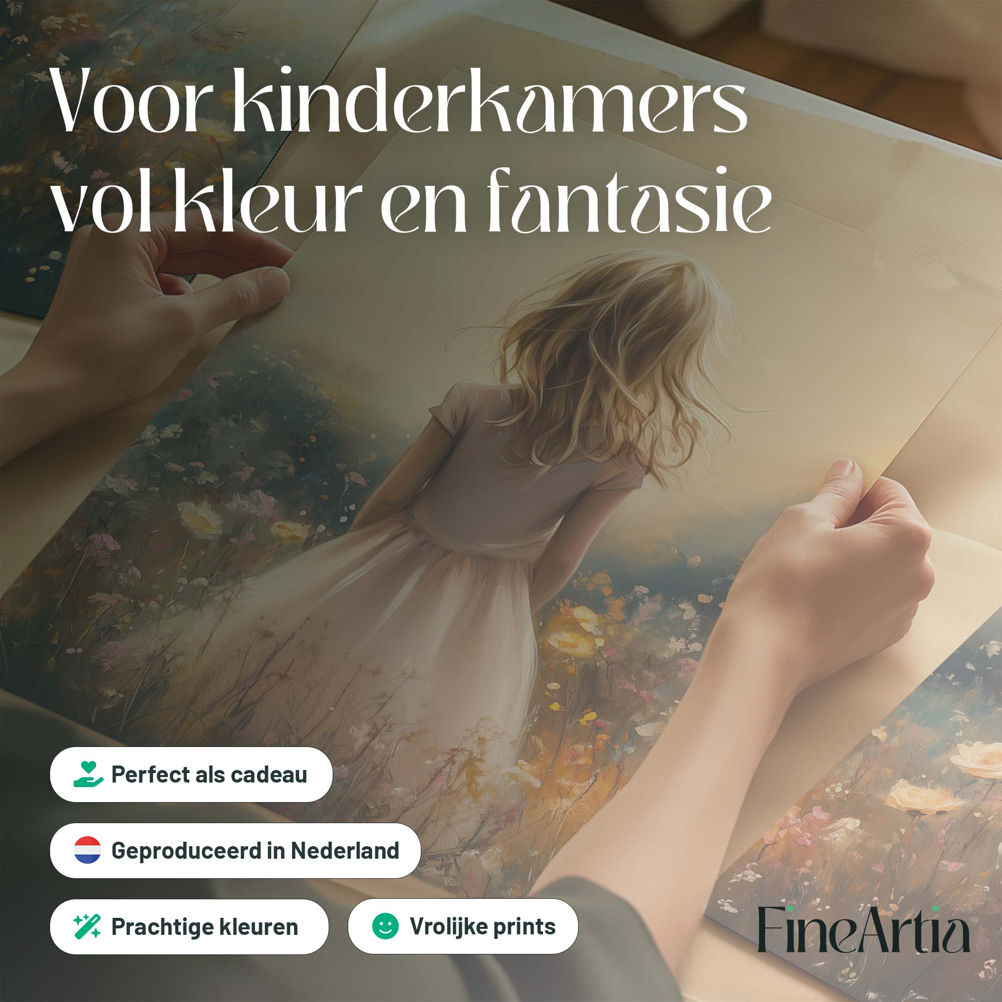 Pastel Roze Meisje in Bloeiend Bloemenveld