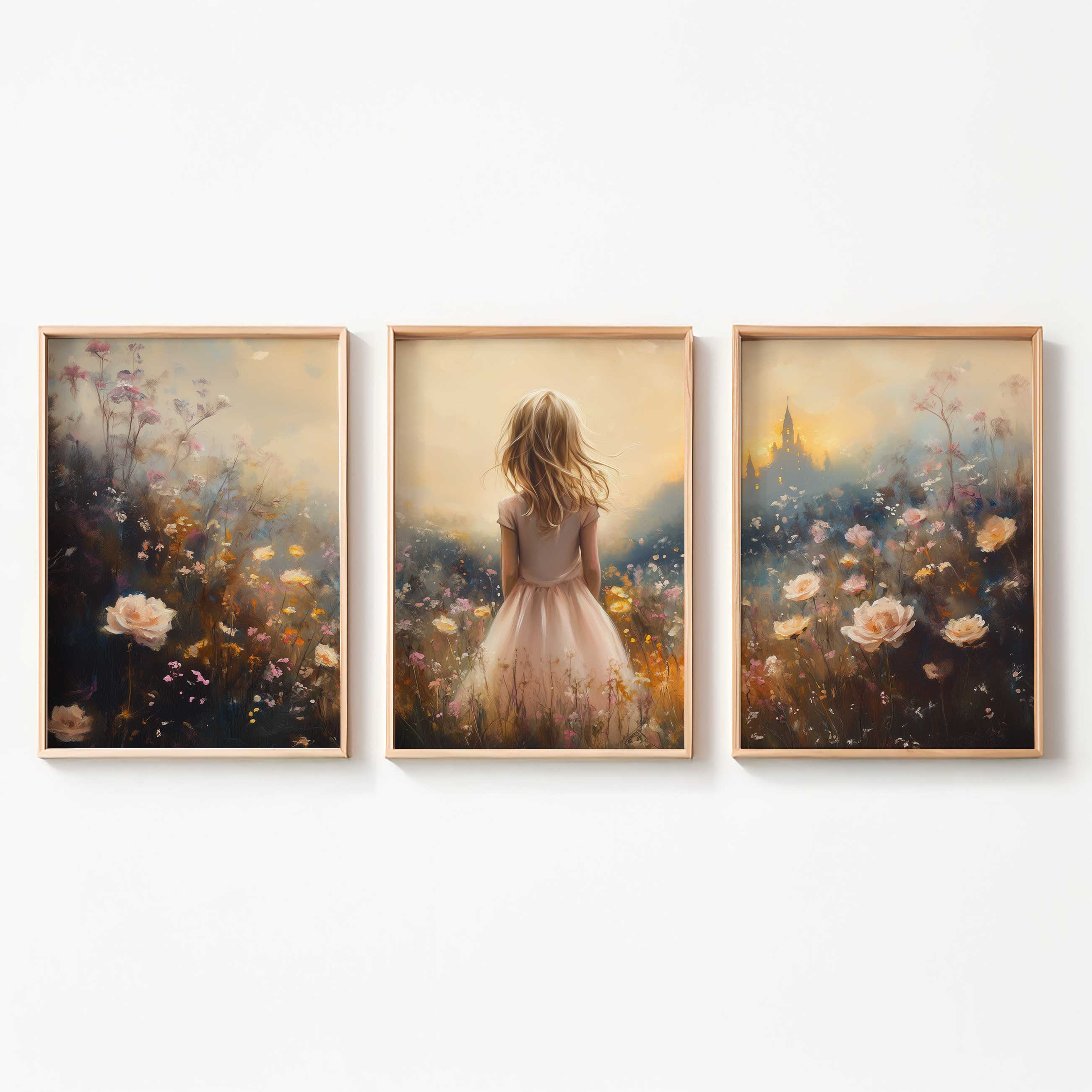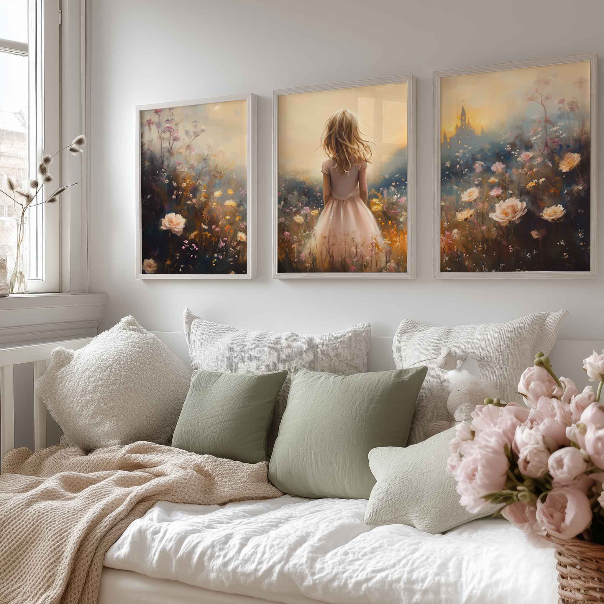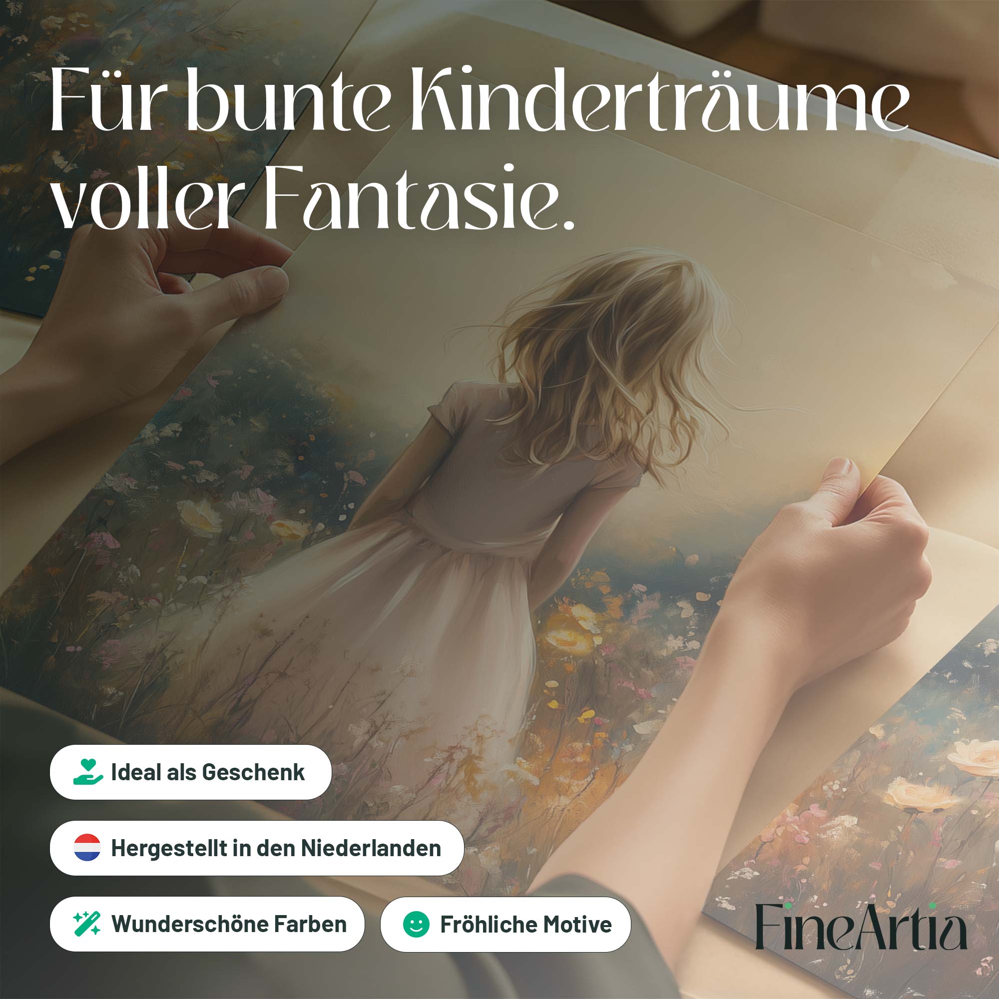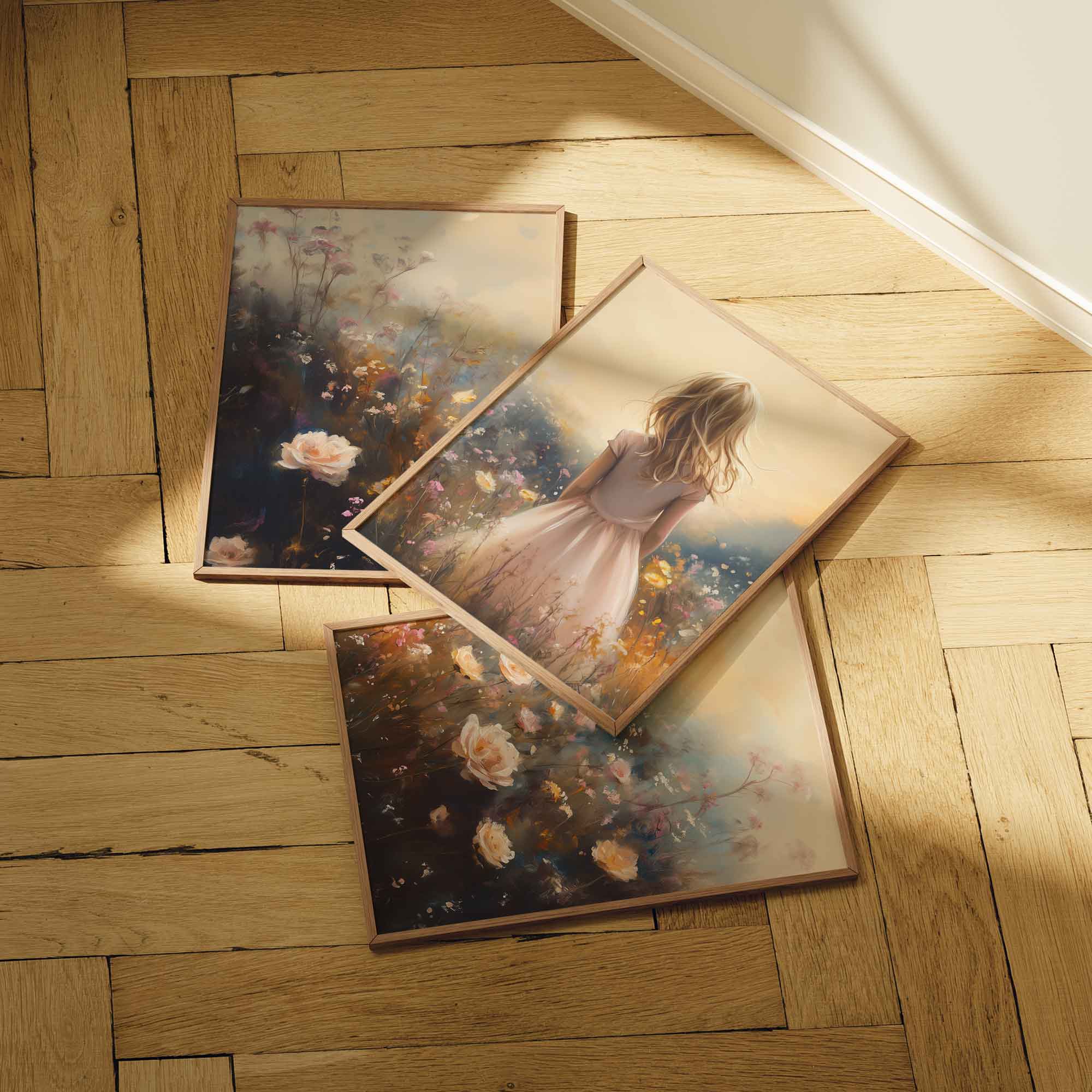 Pastel Roze Meisje in Bloeiend Bloemenveld