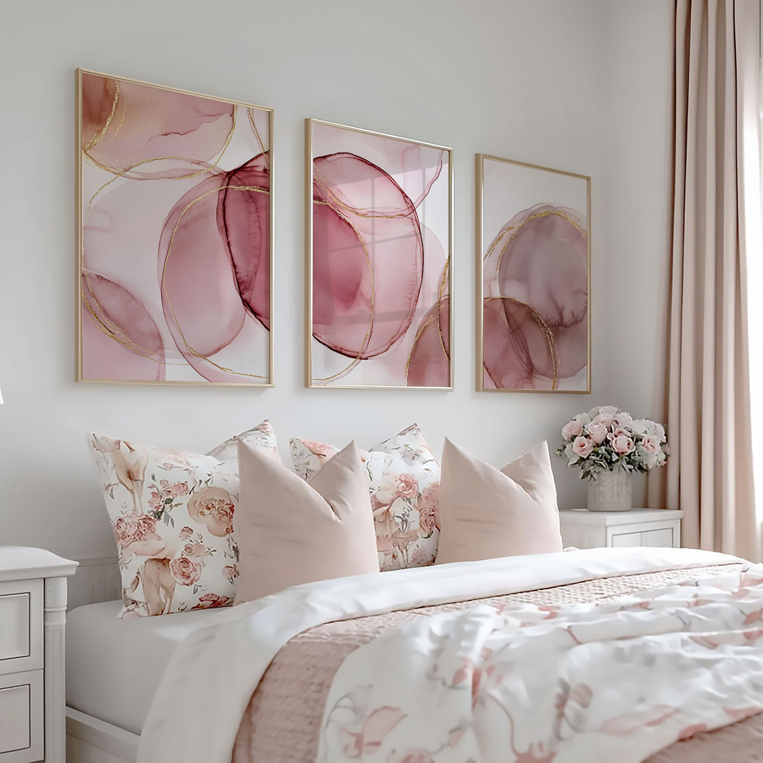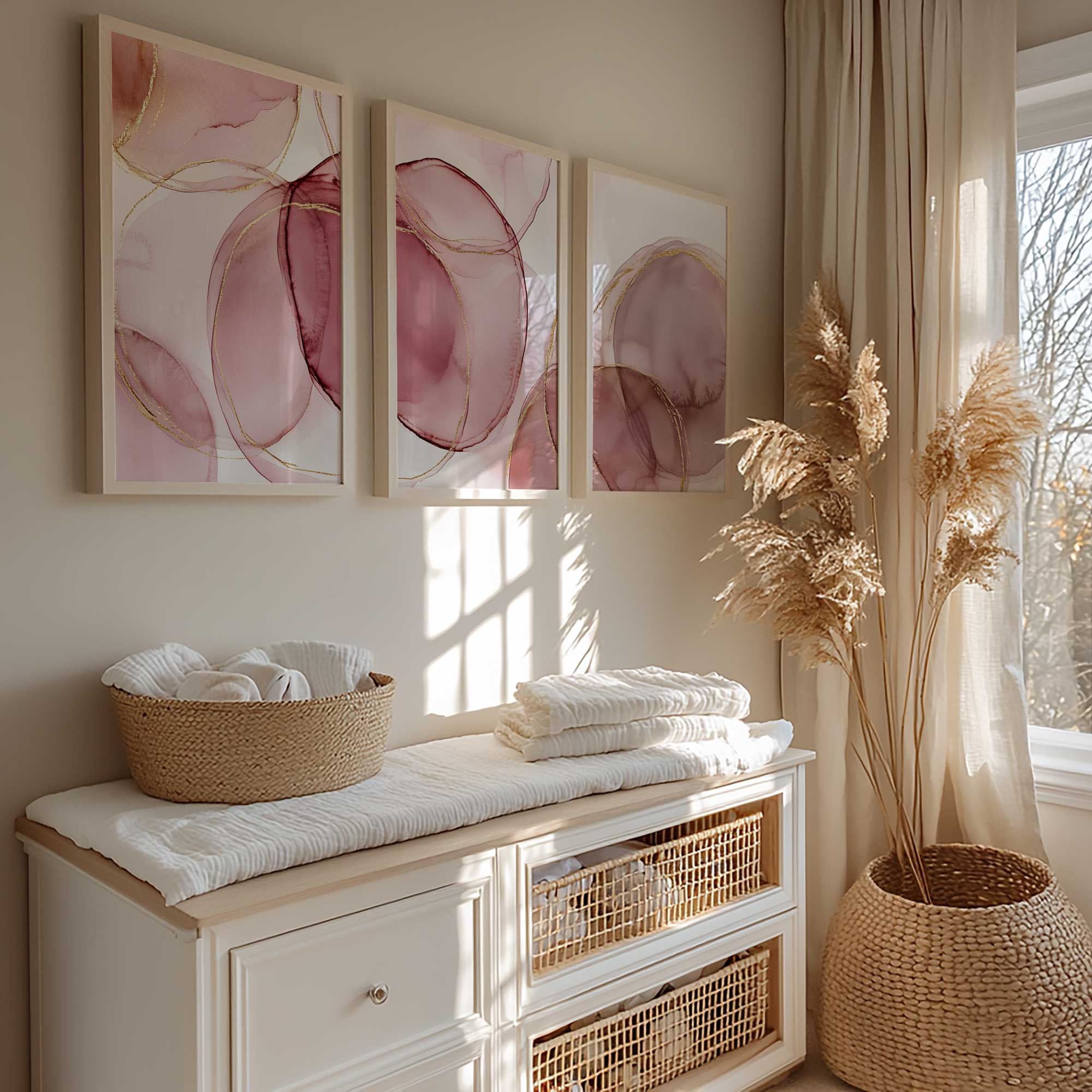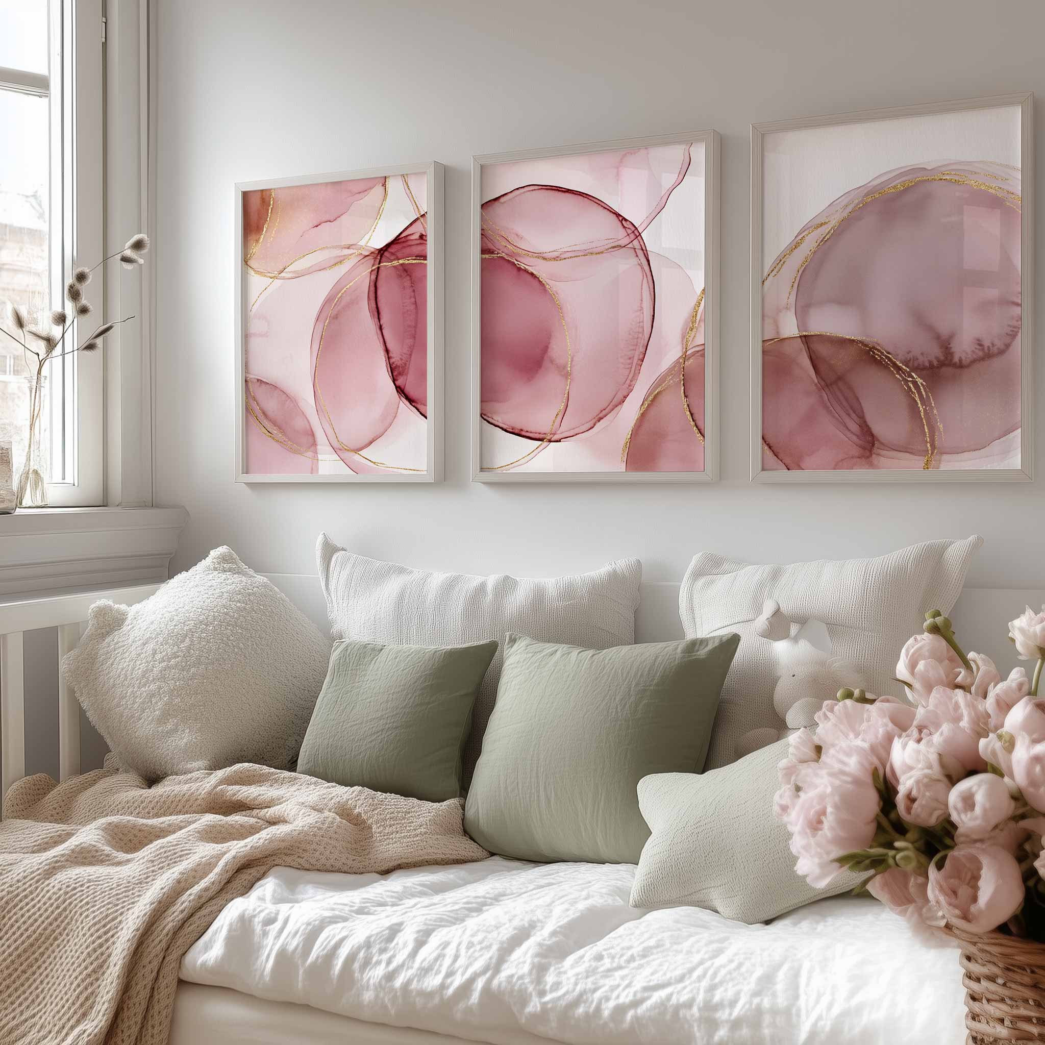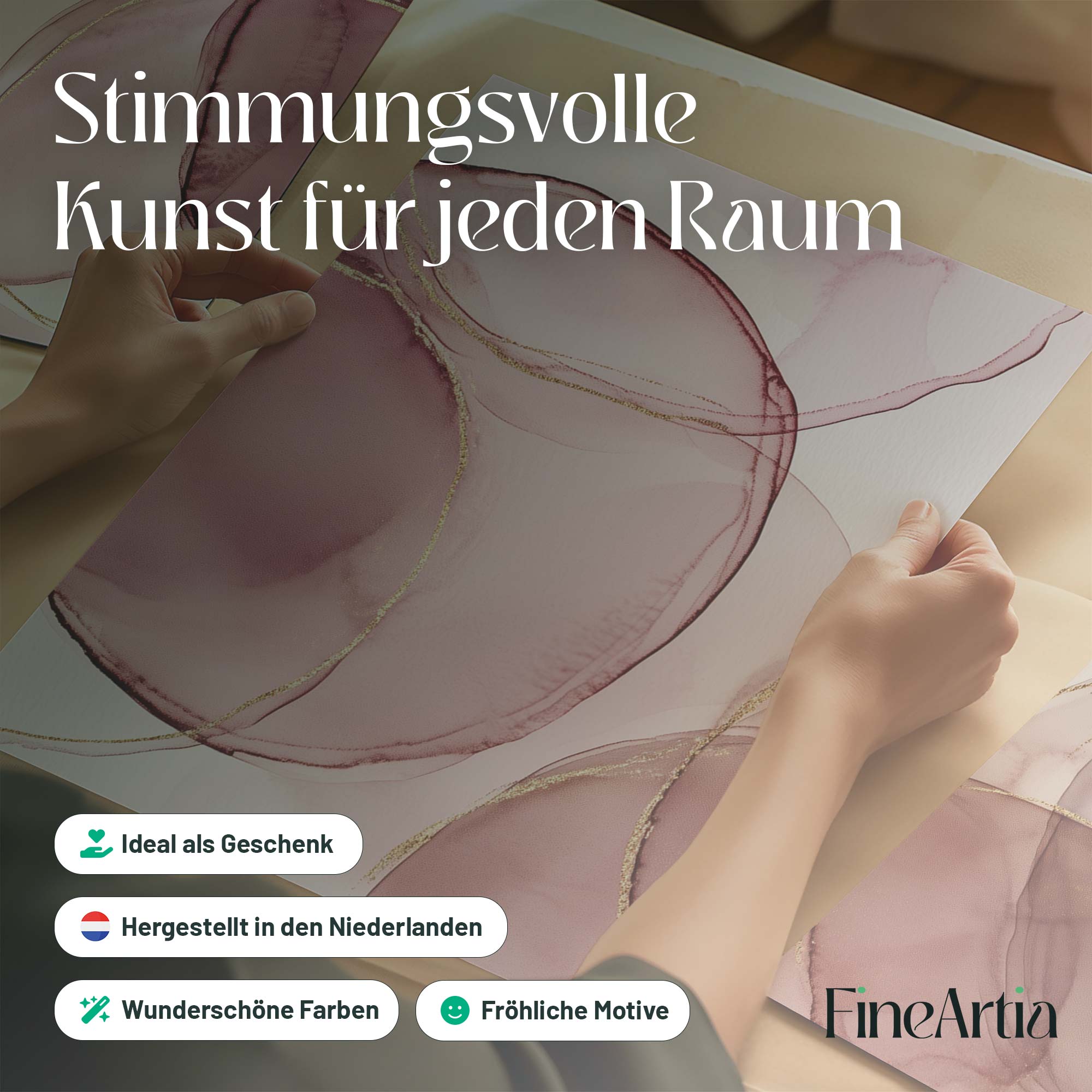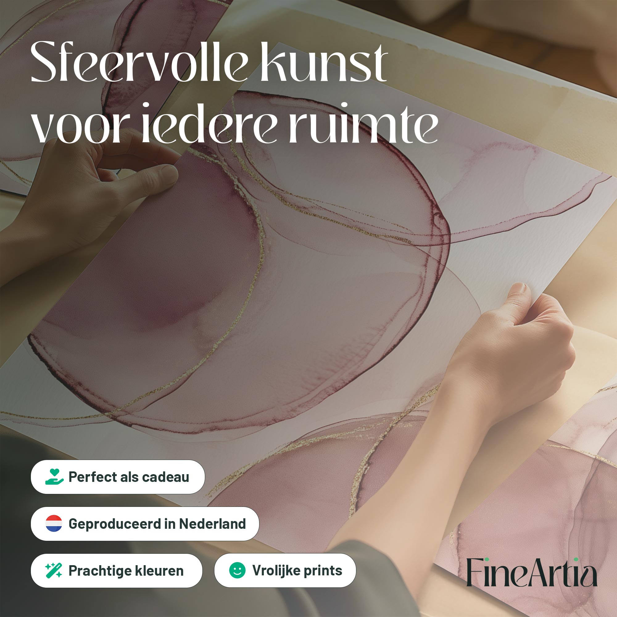 Pastel Roze & Paars Watercolor Wanddecoratie met Gouden Accenten