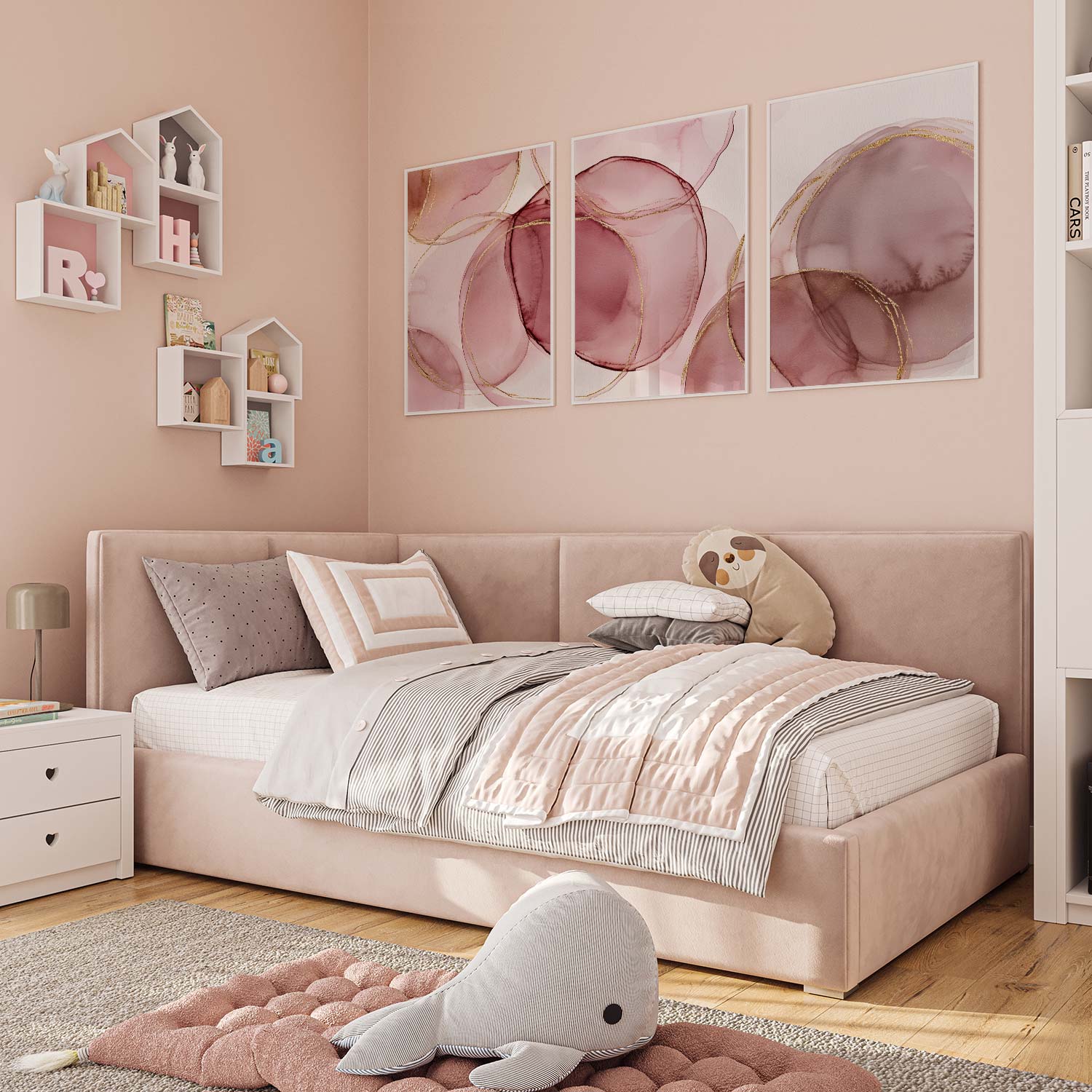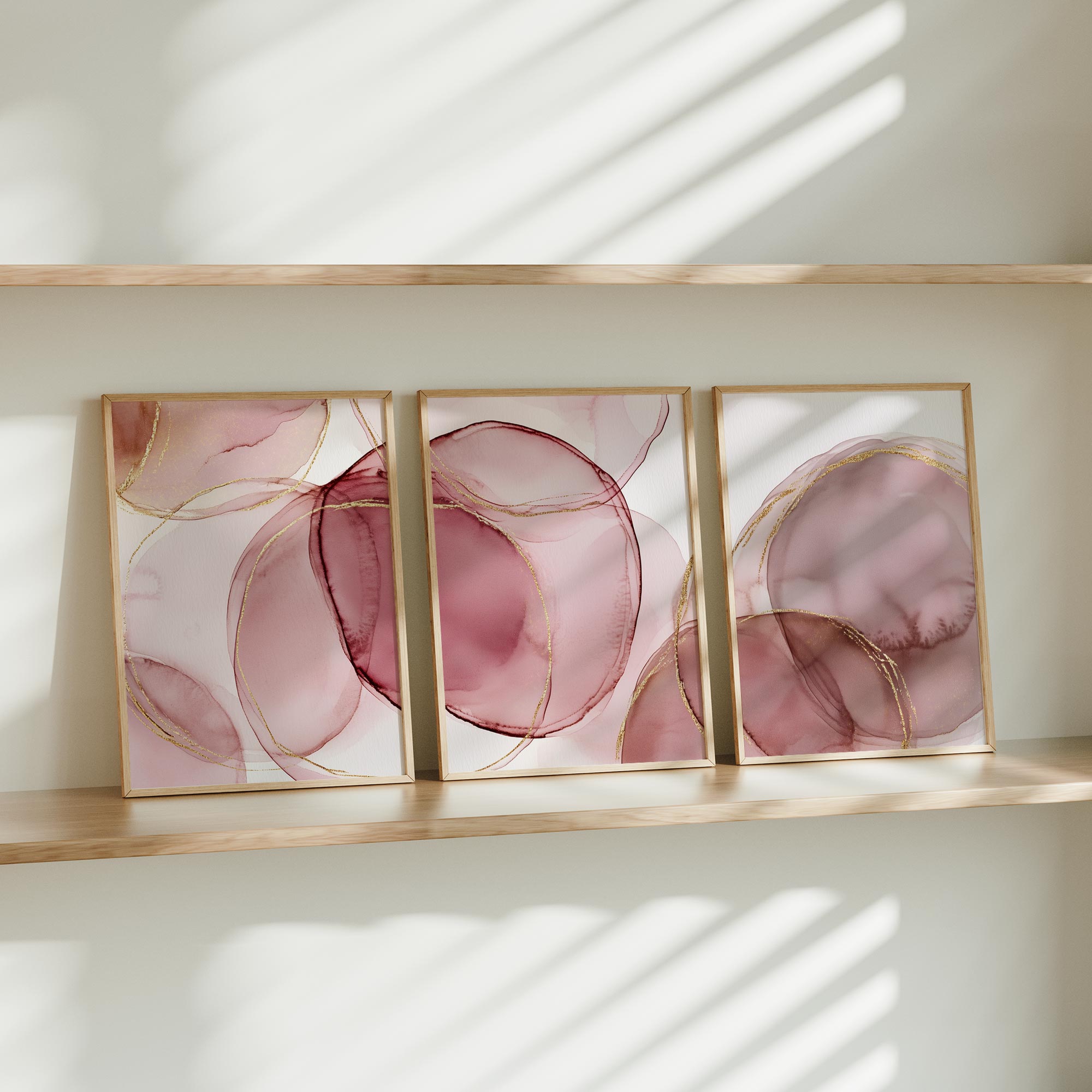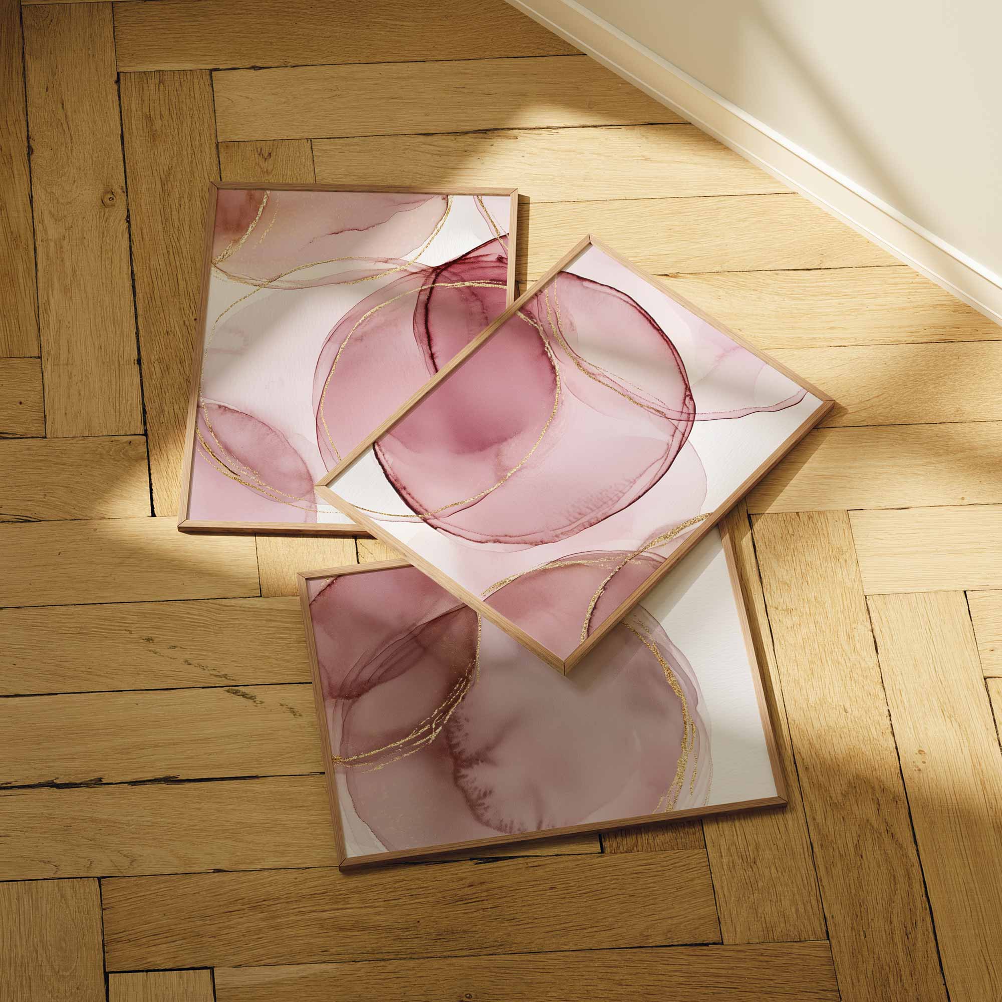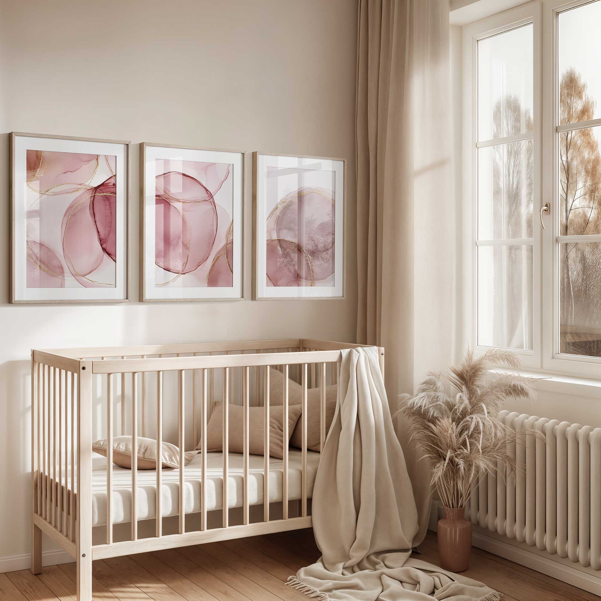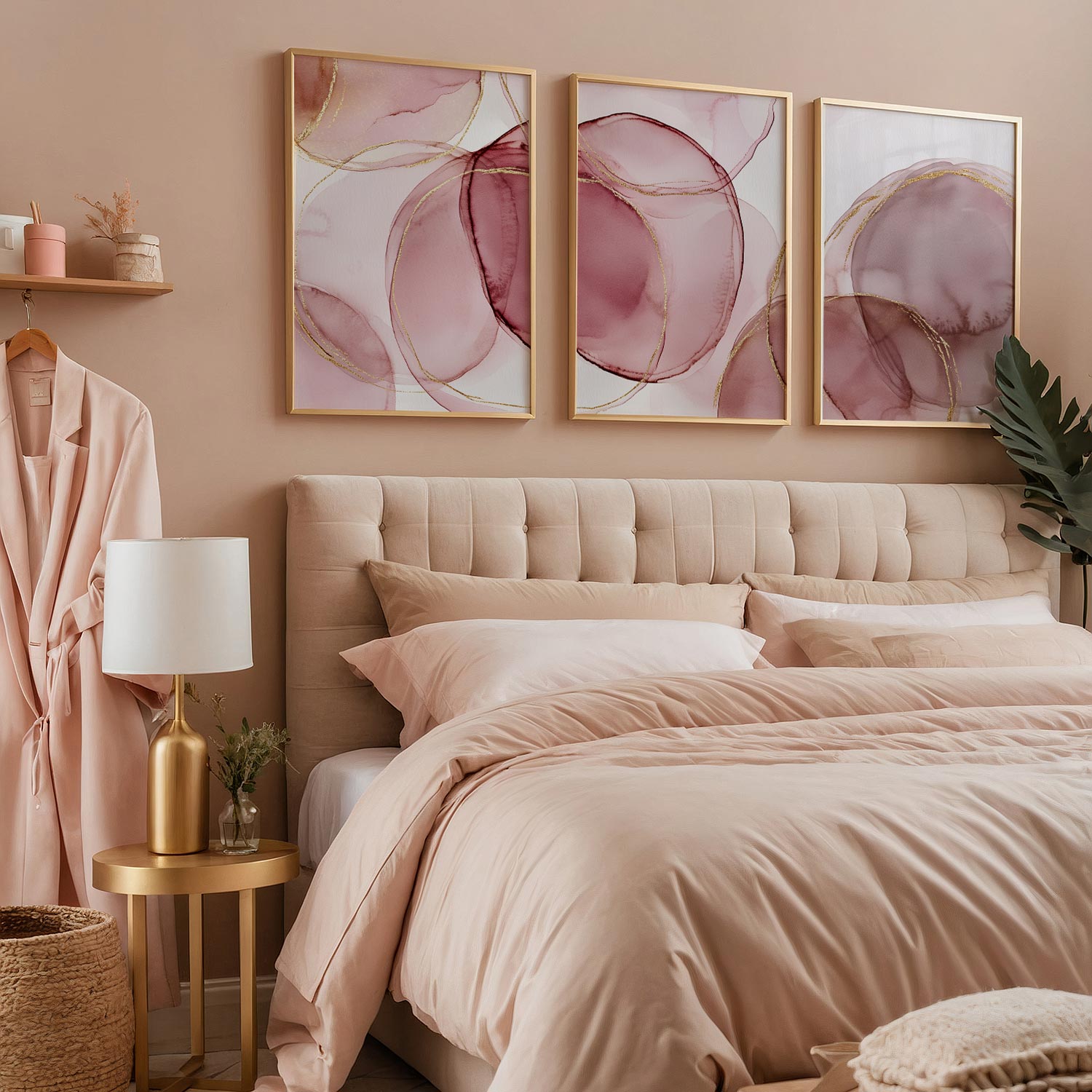 Pastel Roze & Paars Watercolor Wanddecoratie met Gouden Accenten