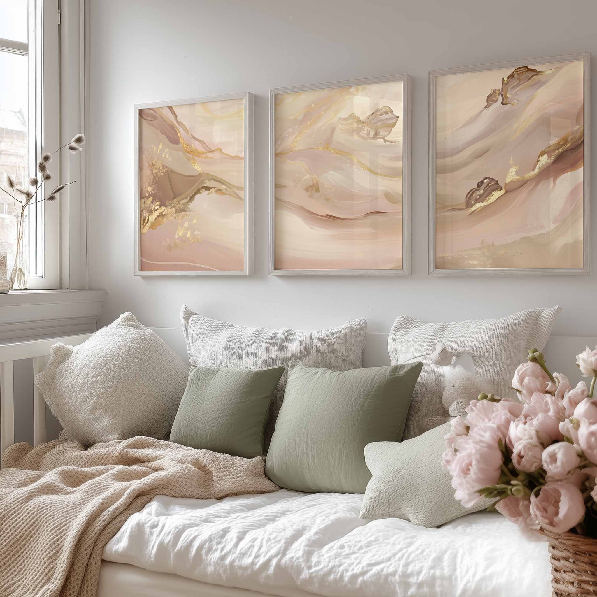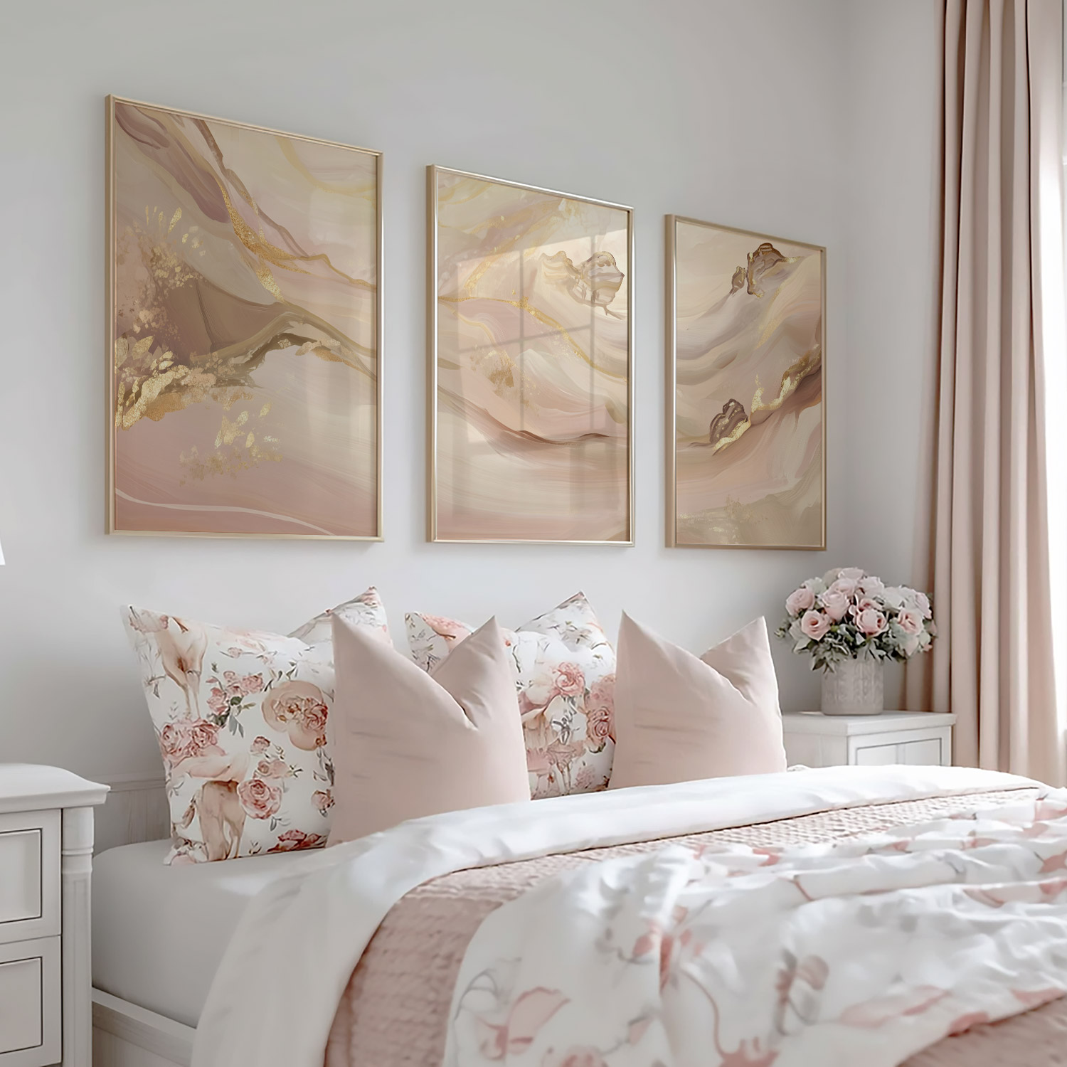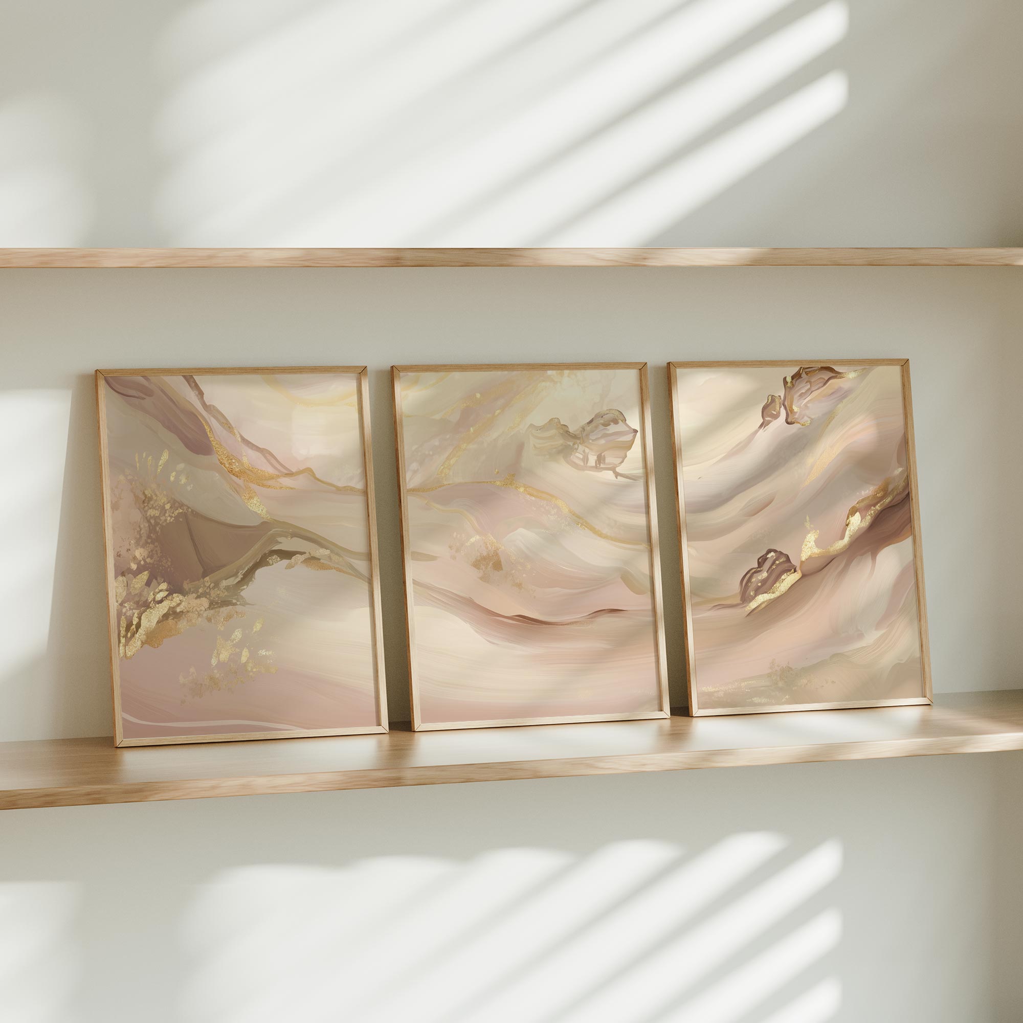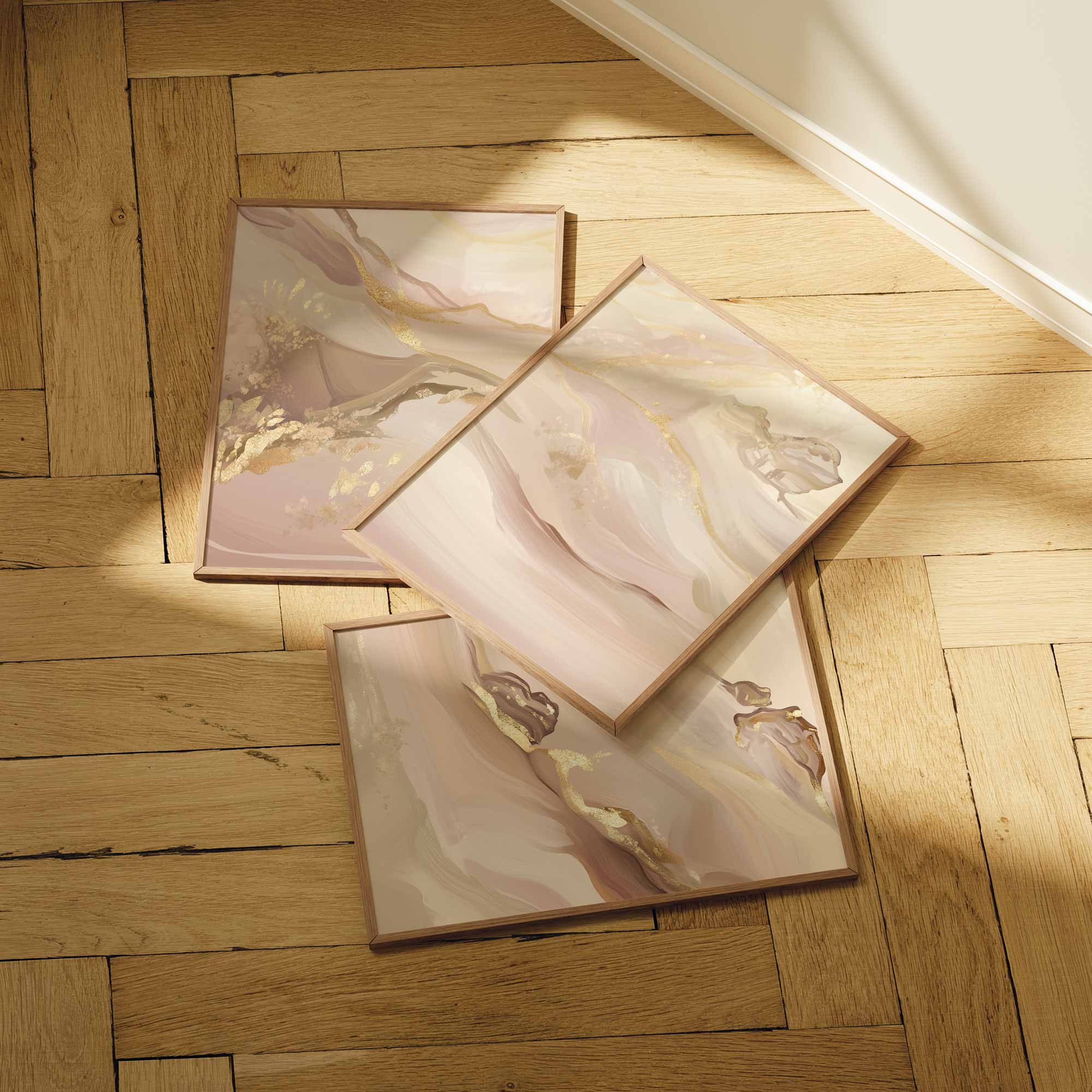 Pastel Roze Swirls met Gouden Accenten – Elegante Wanddecoratie