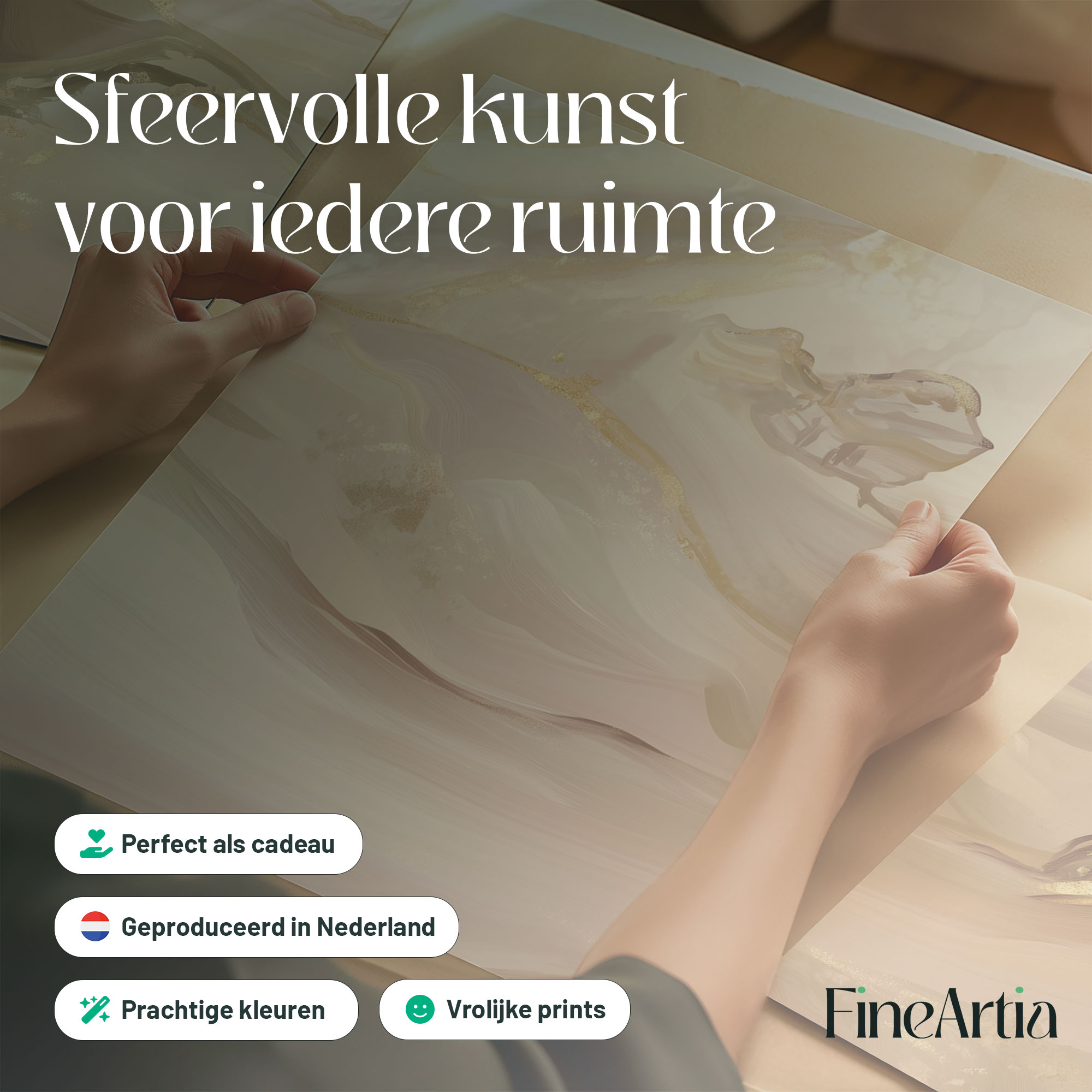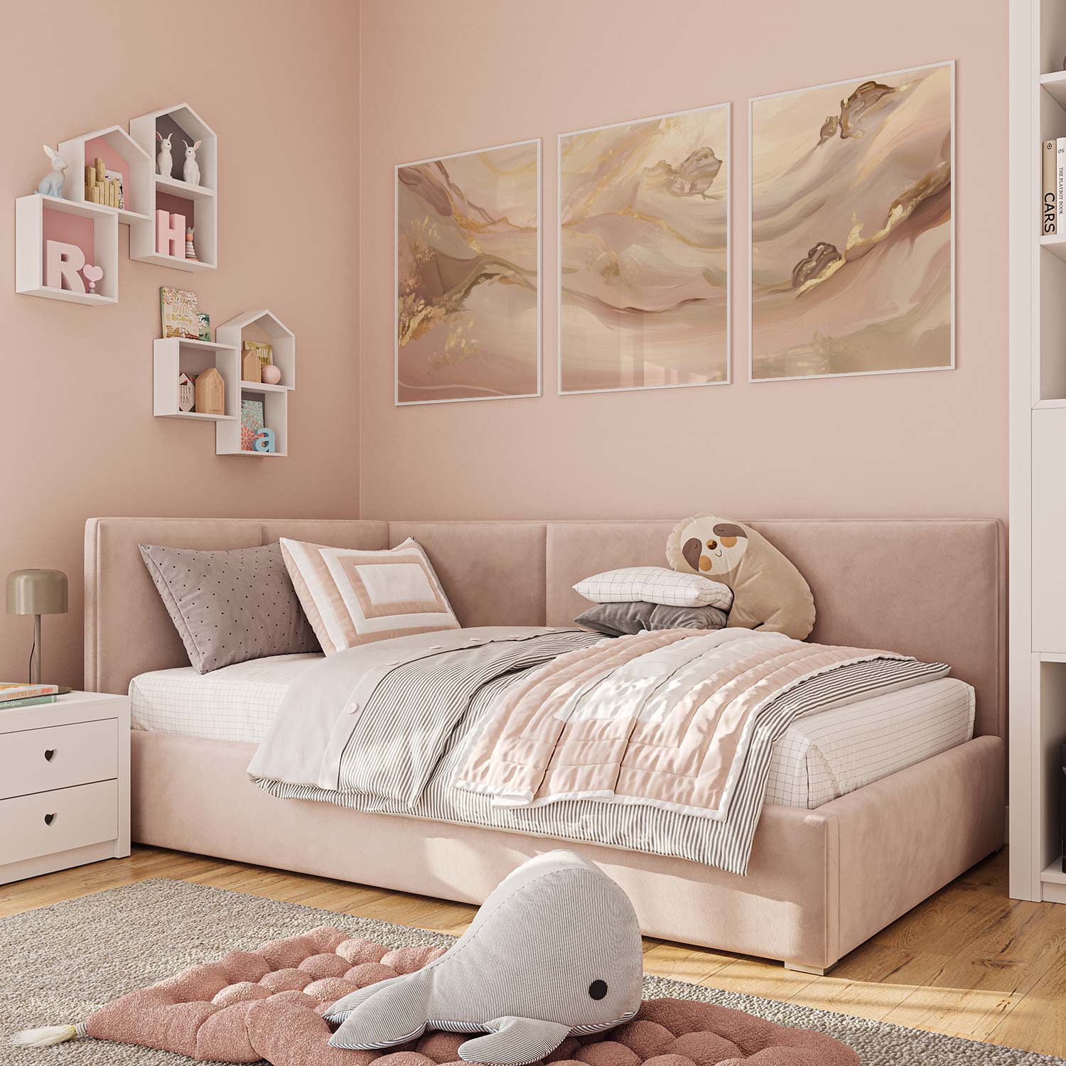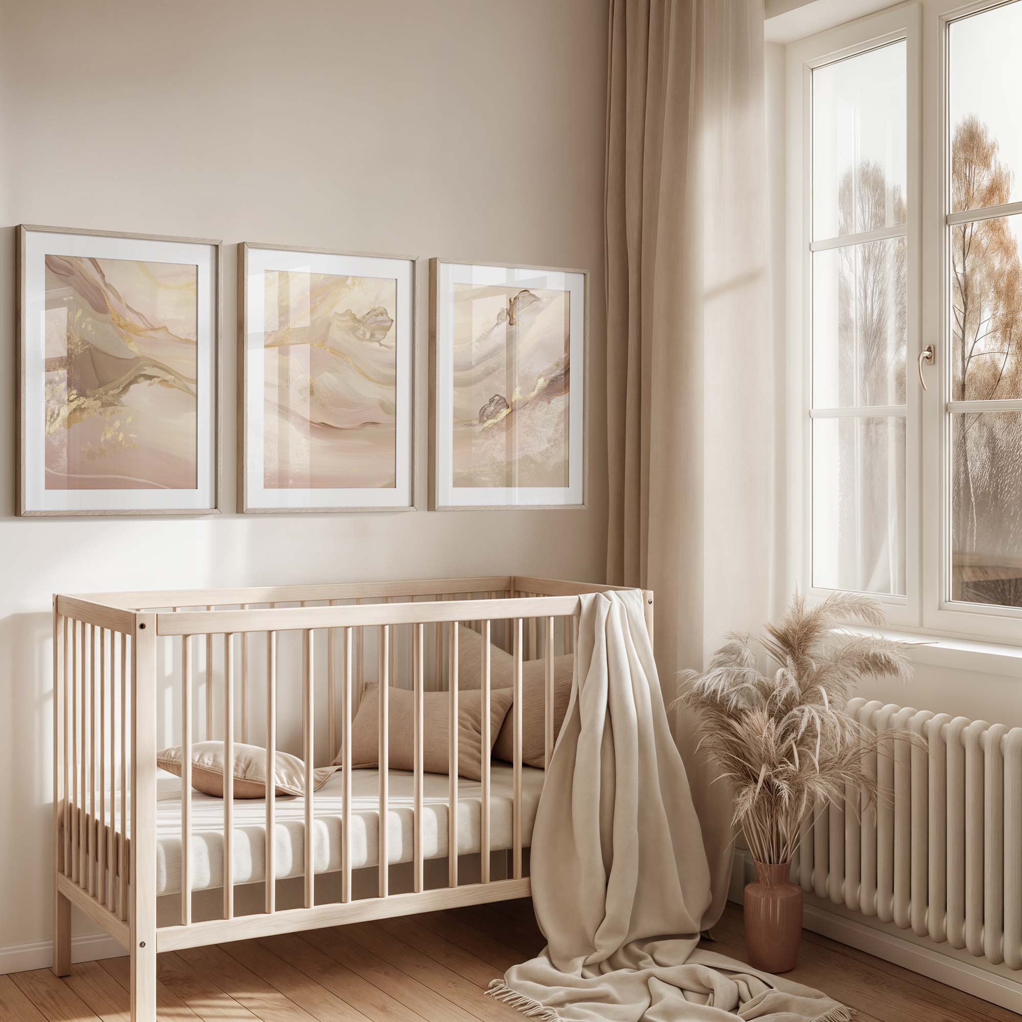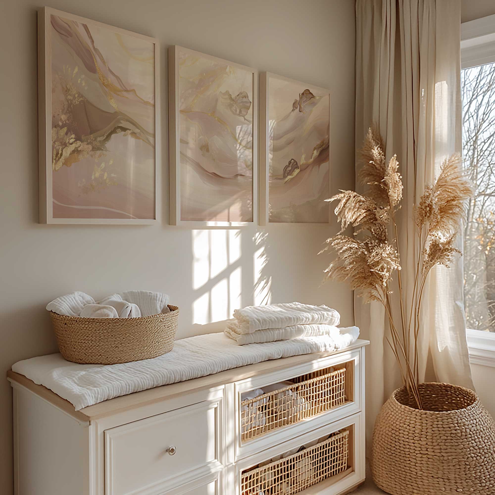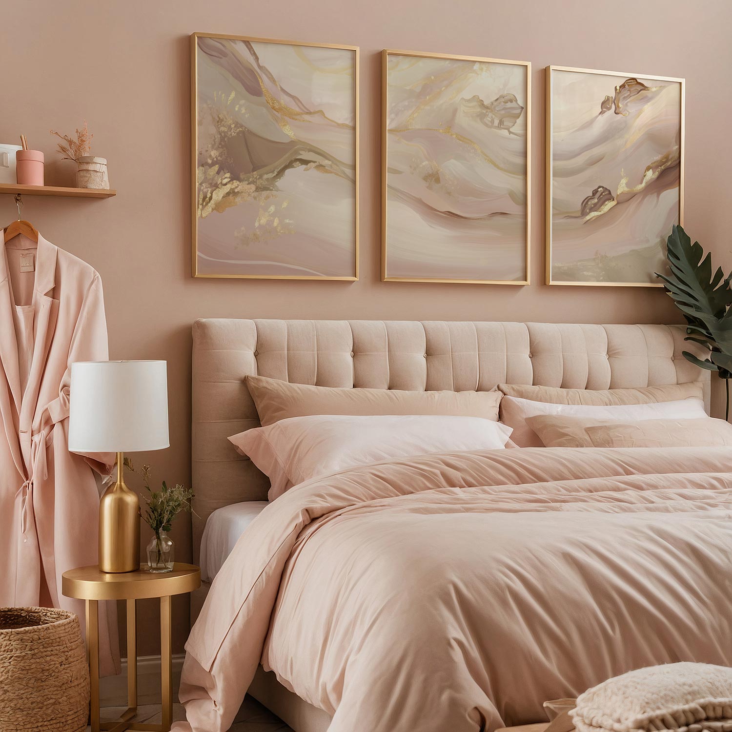 Pastel Roze Swirls met Gouden Accenten – Elegante Wanddecoratie
